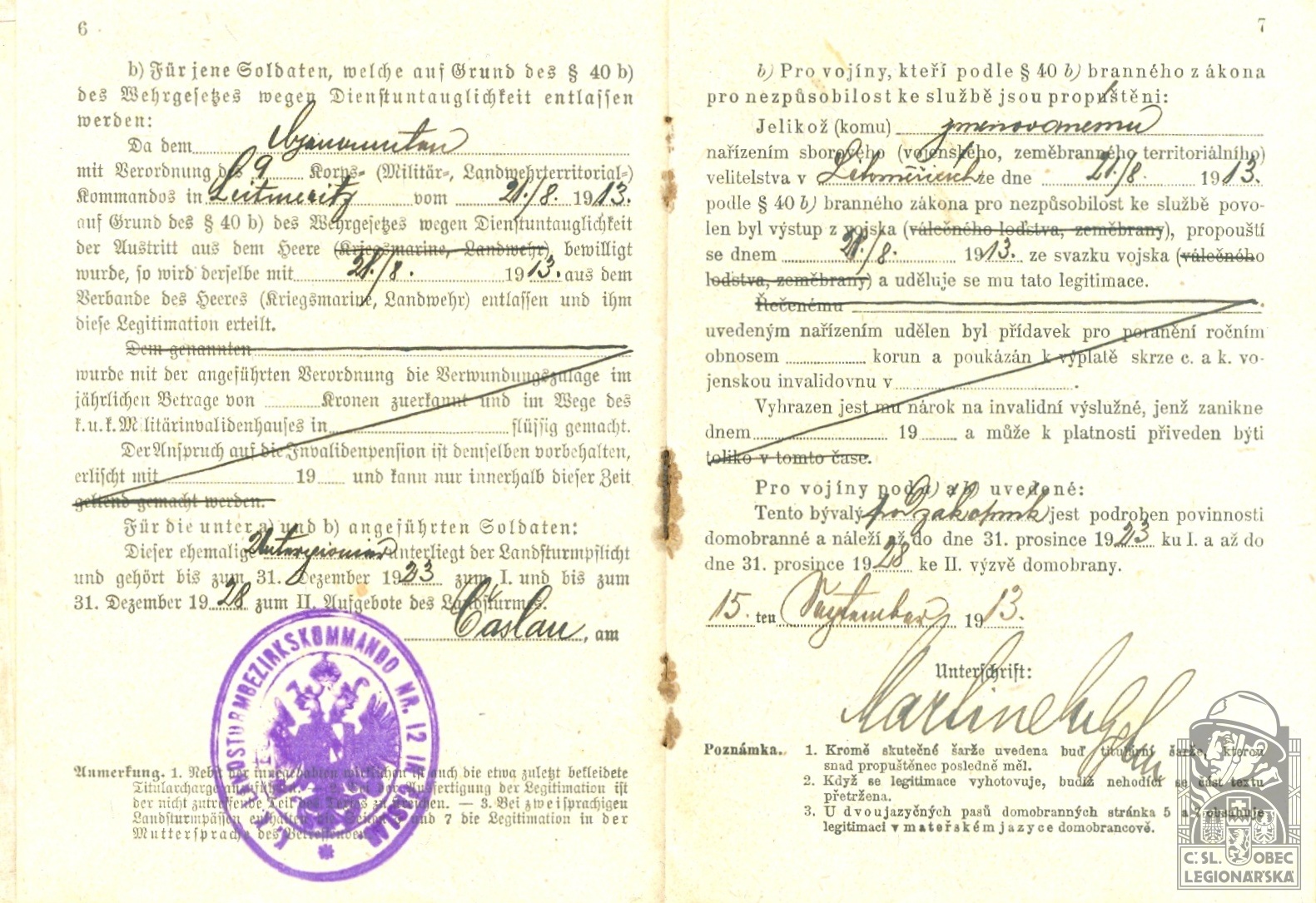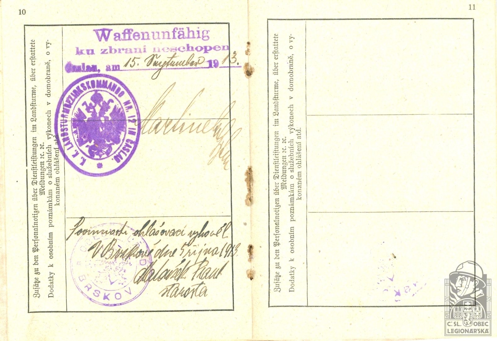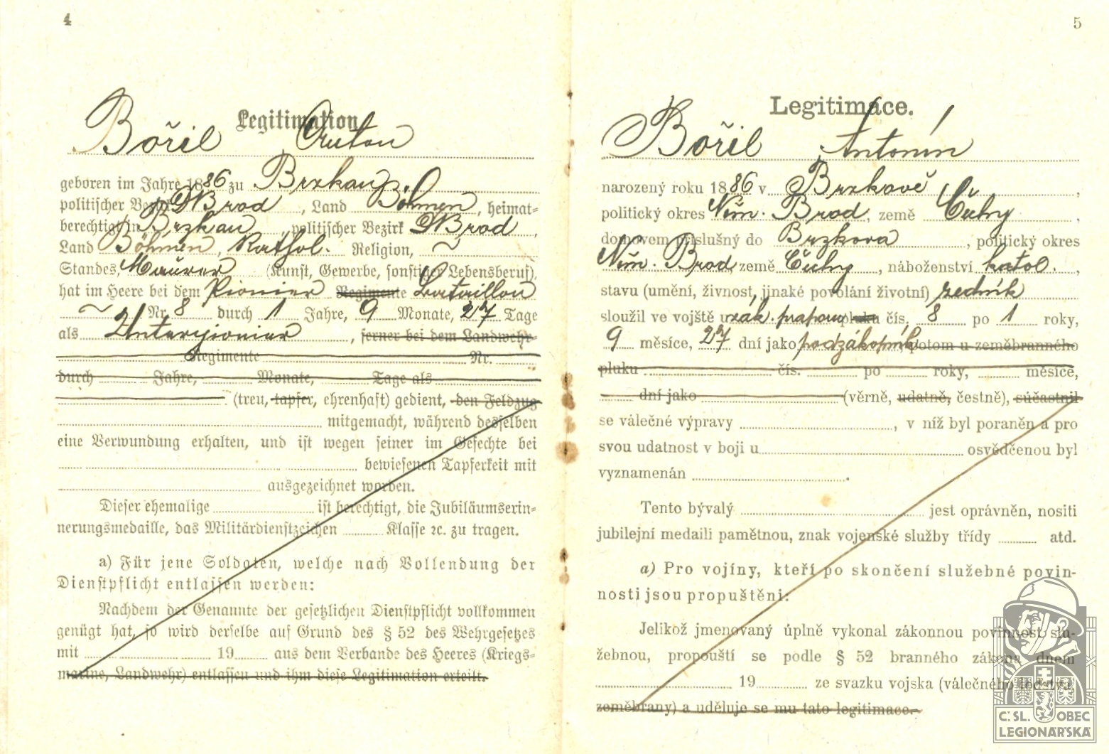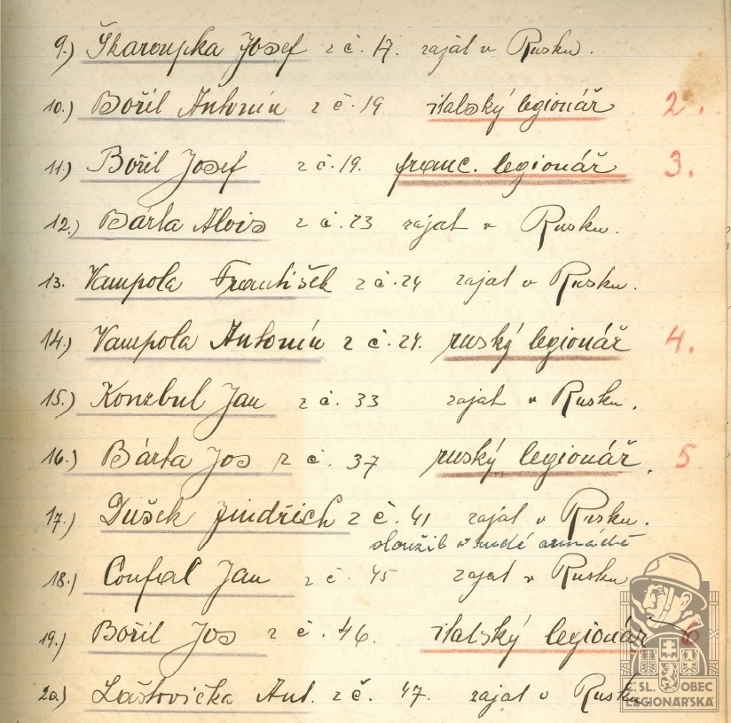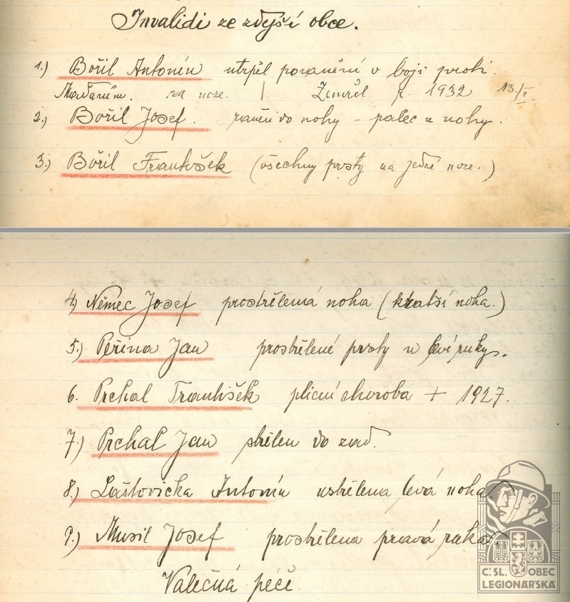 dokumenty spojené s osobou legionáře