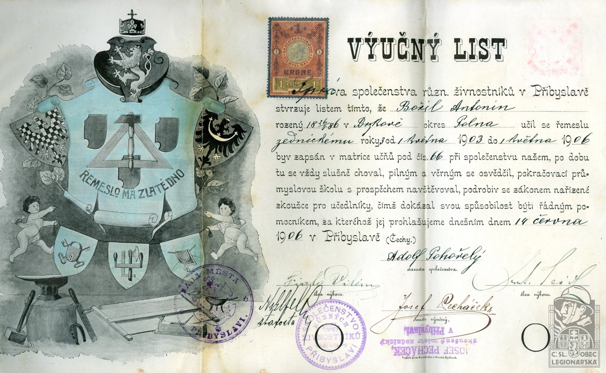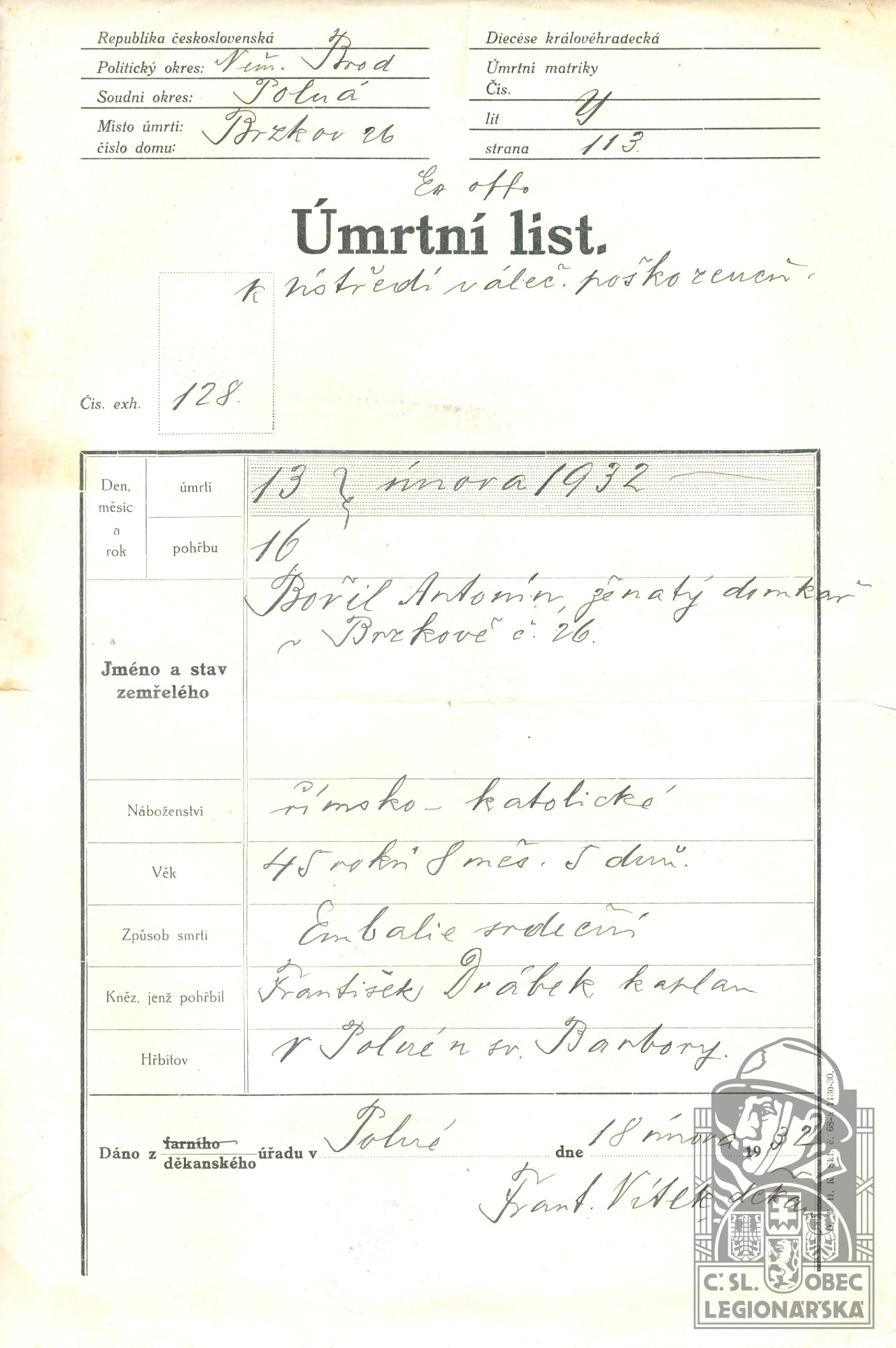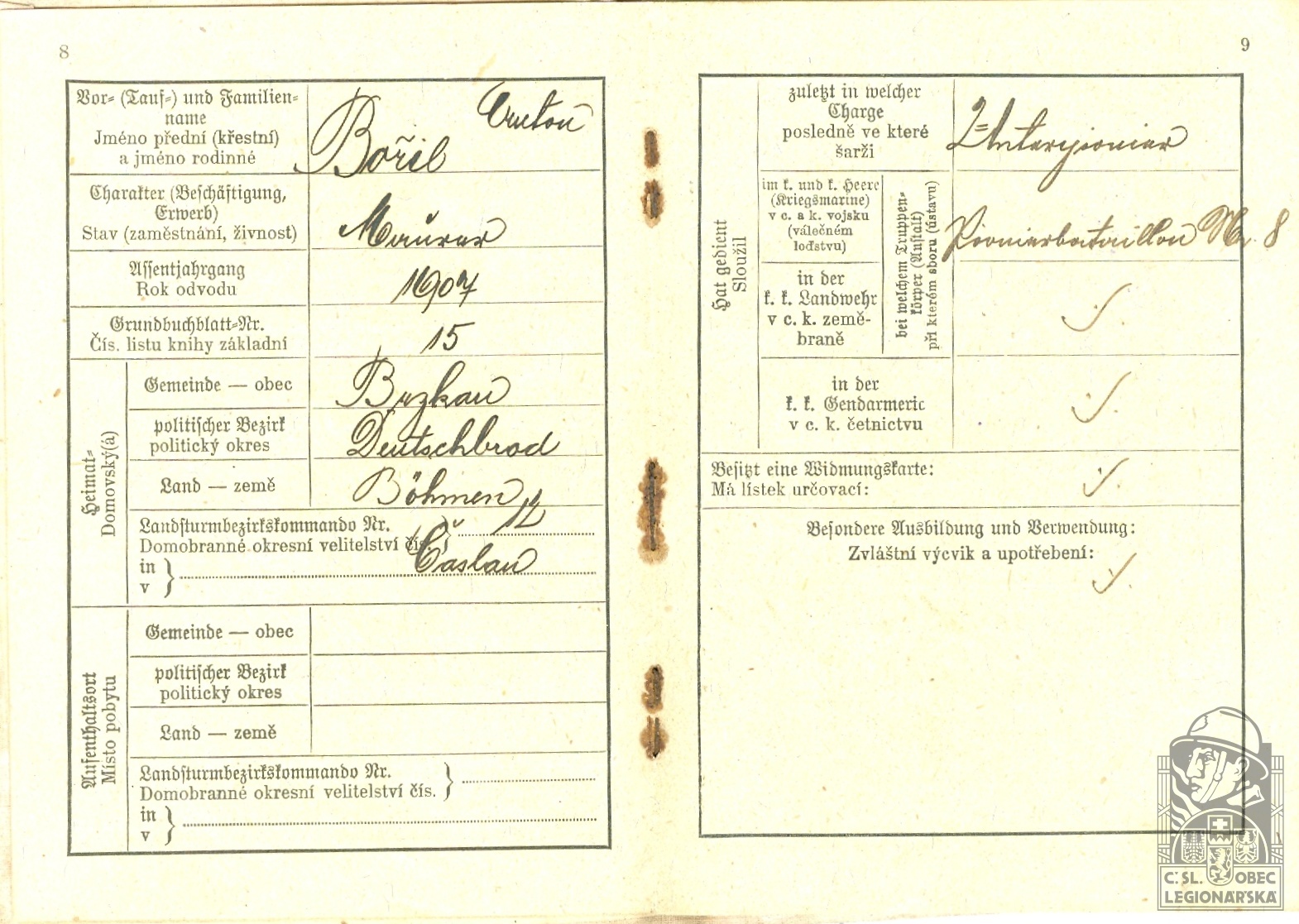 Zdroj informací: legionářský poslužný spis osobní karta legionáře