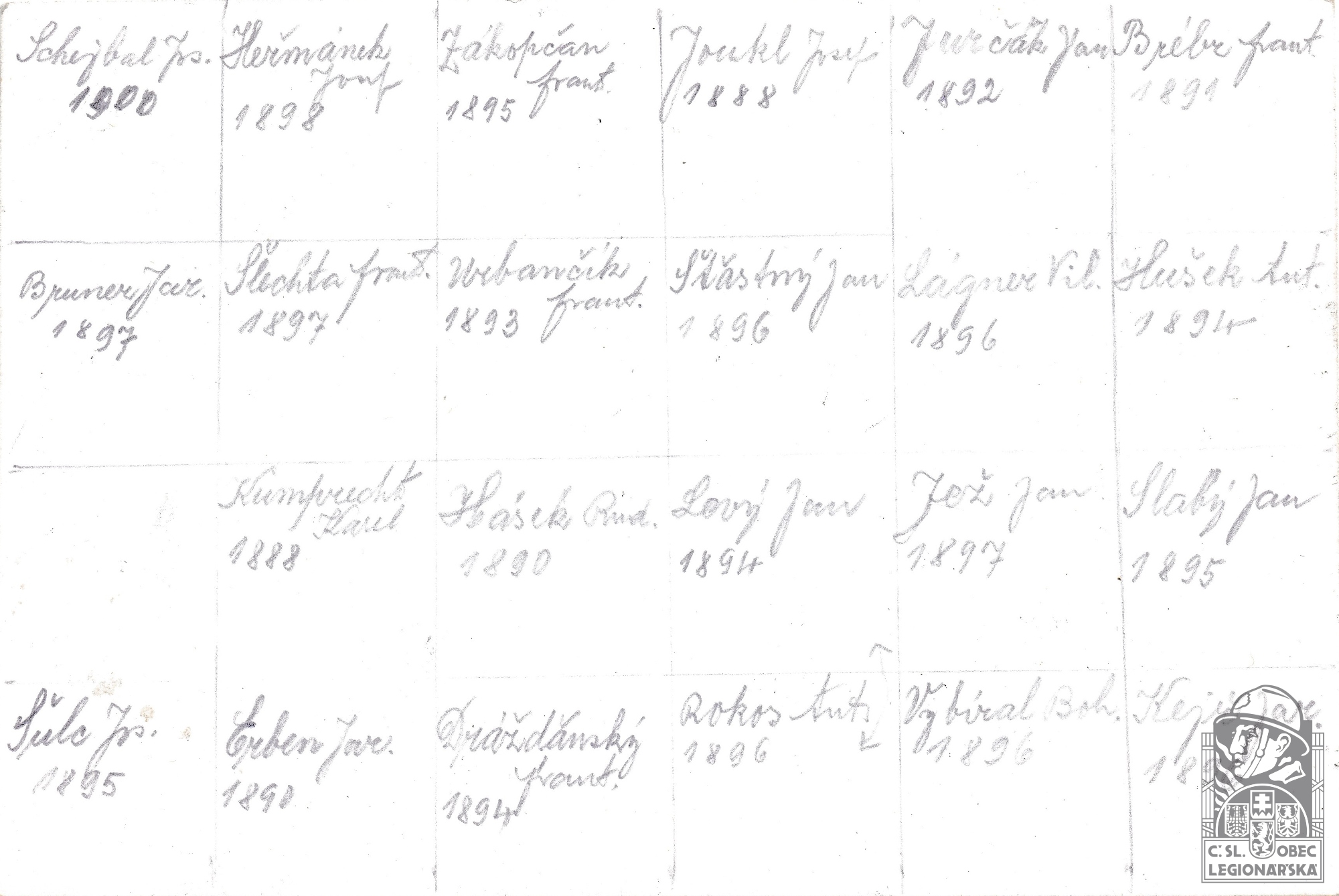 Zdroj informací: legionářský poslužný spis osobní karta legionáře
