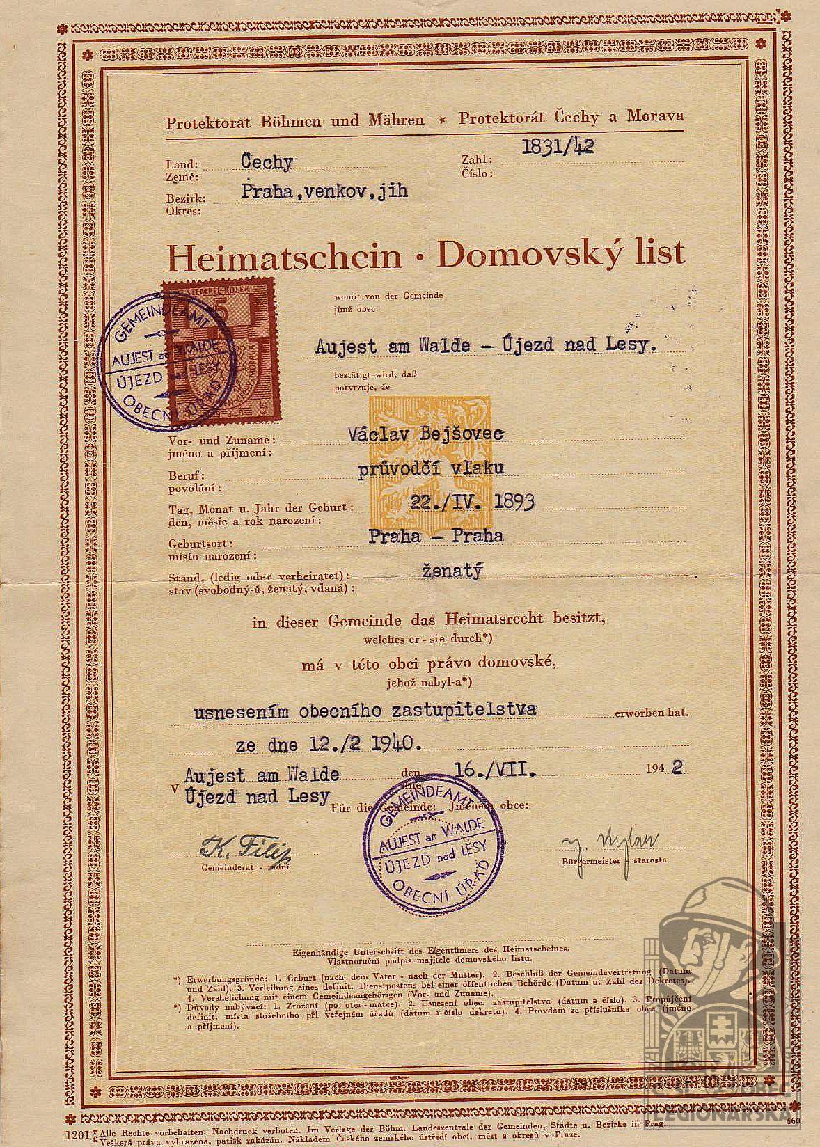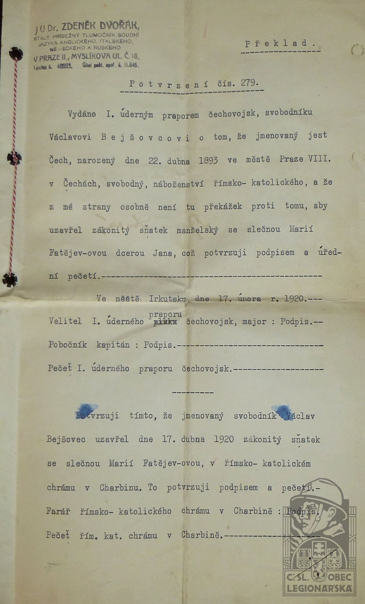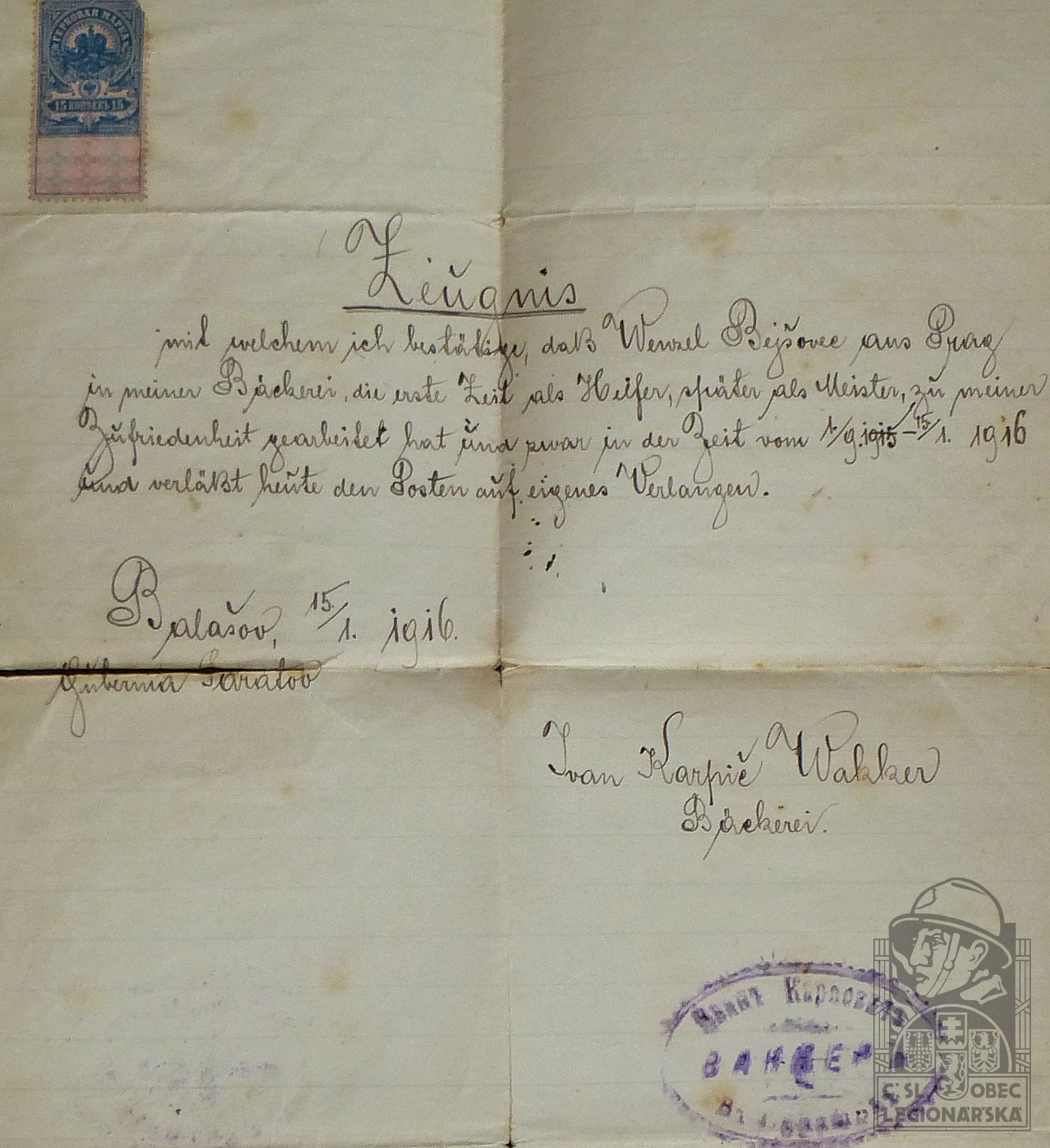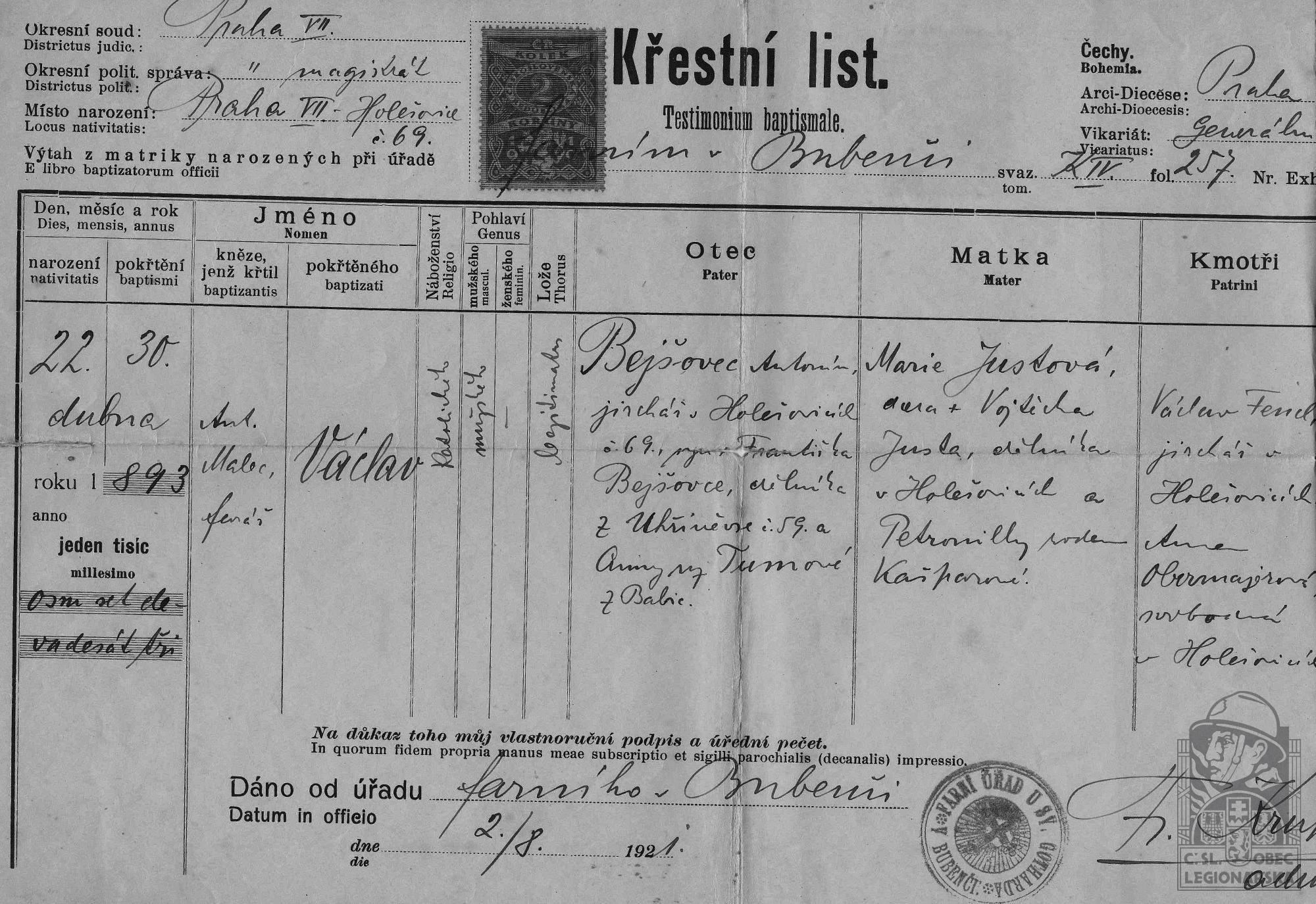 Zdroj informací: legionářský poslužný spis osobní karta legionáře