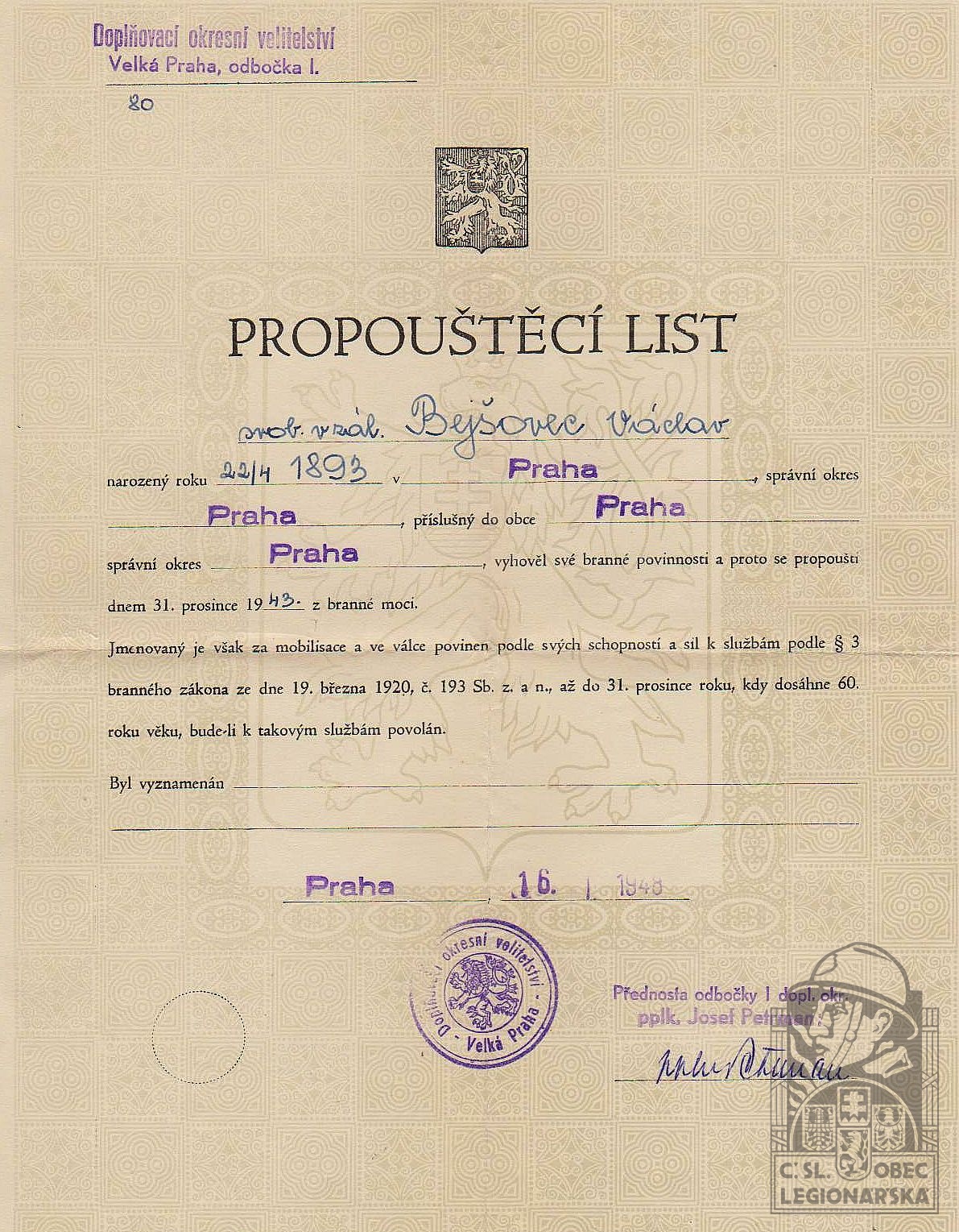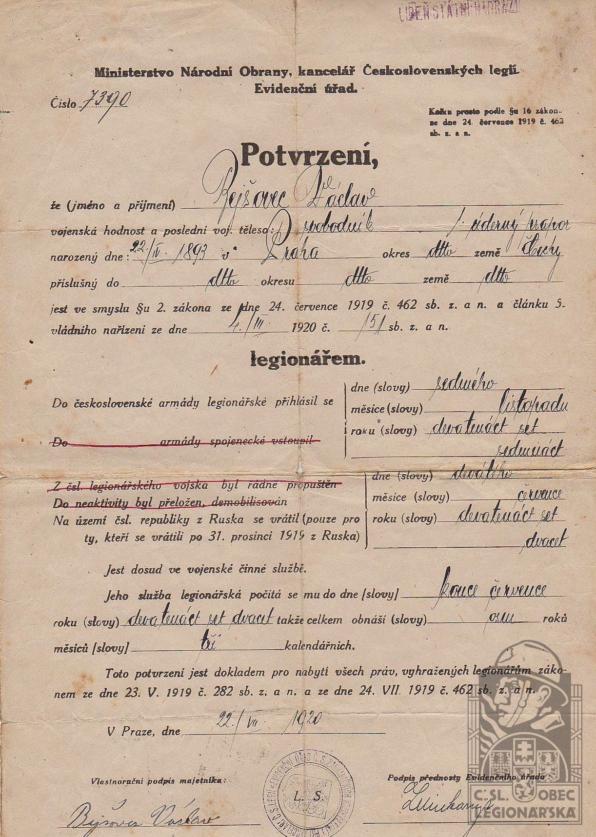 Konec v legiích:9.10.1920 ( Demobilizován )