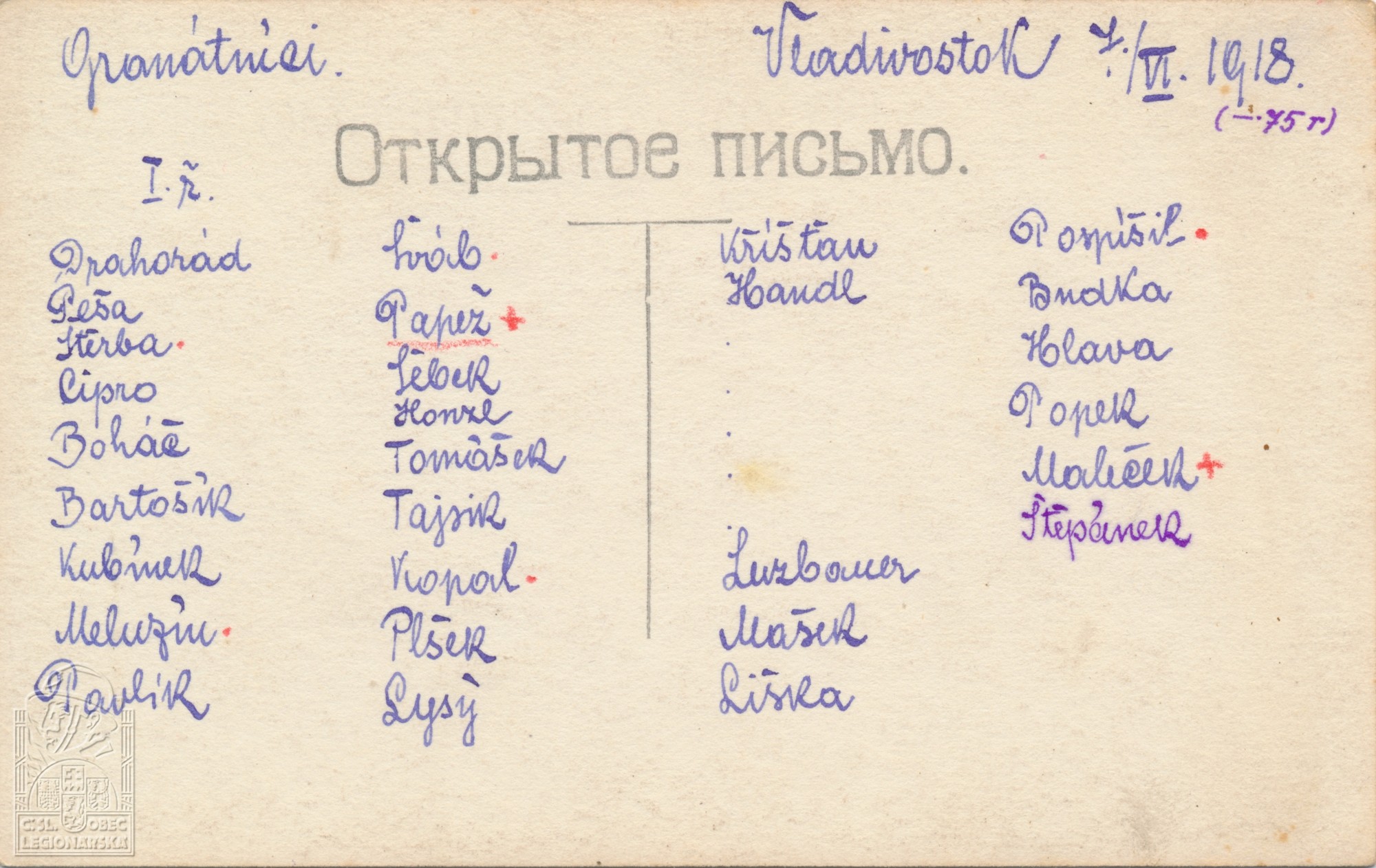 Jednotka v době zařazení:8.stř.pl. ( Čs. legie v Rusku )