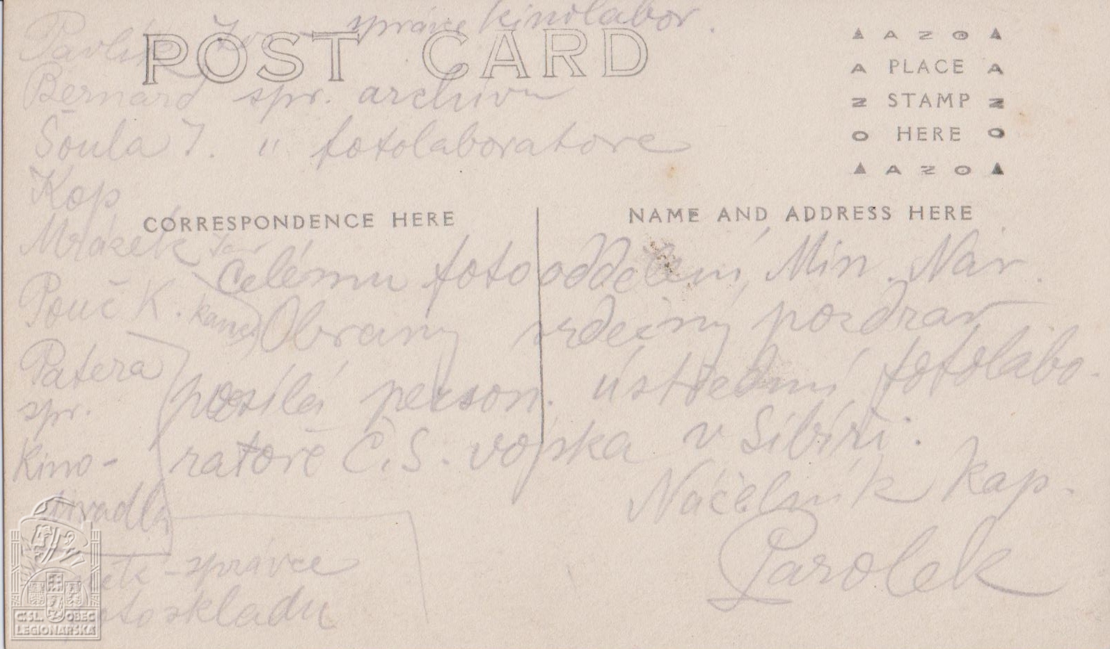 Zdroj informací: legionářský poslužný spis osobní karta legionáře