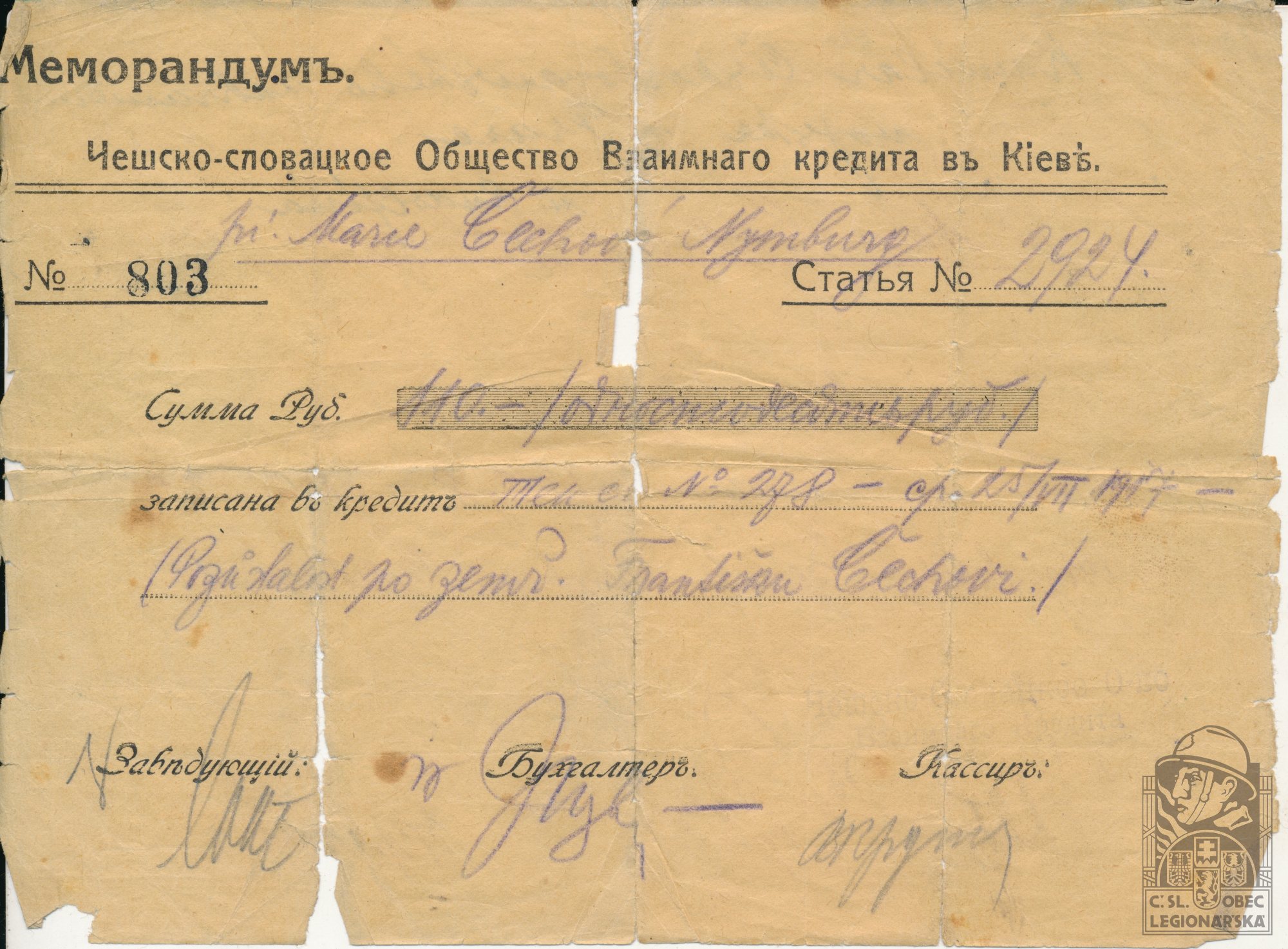 Jednotka v době zařazení:1.stř.pl. ( Čs. legie v Rusku )