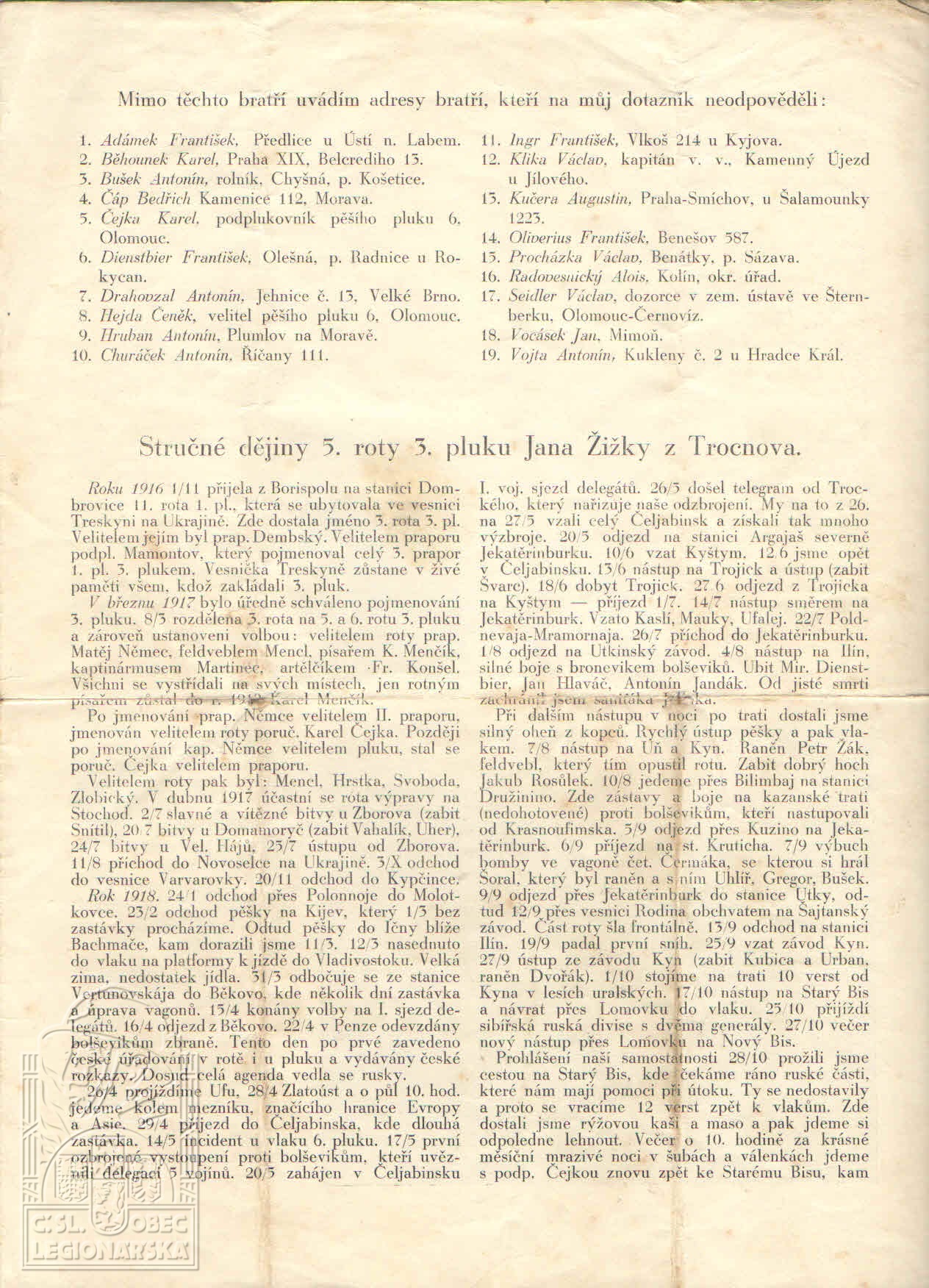 Zdroj informací: legionářský poslužný spis osobní karta legionáře