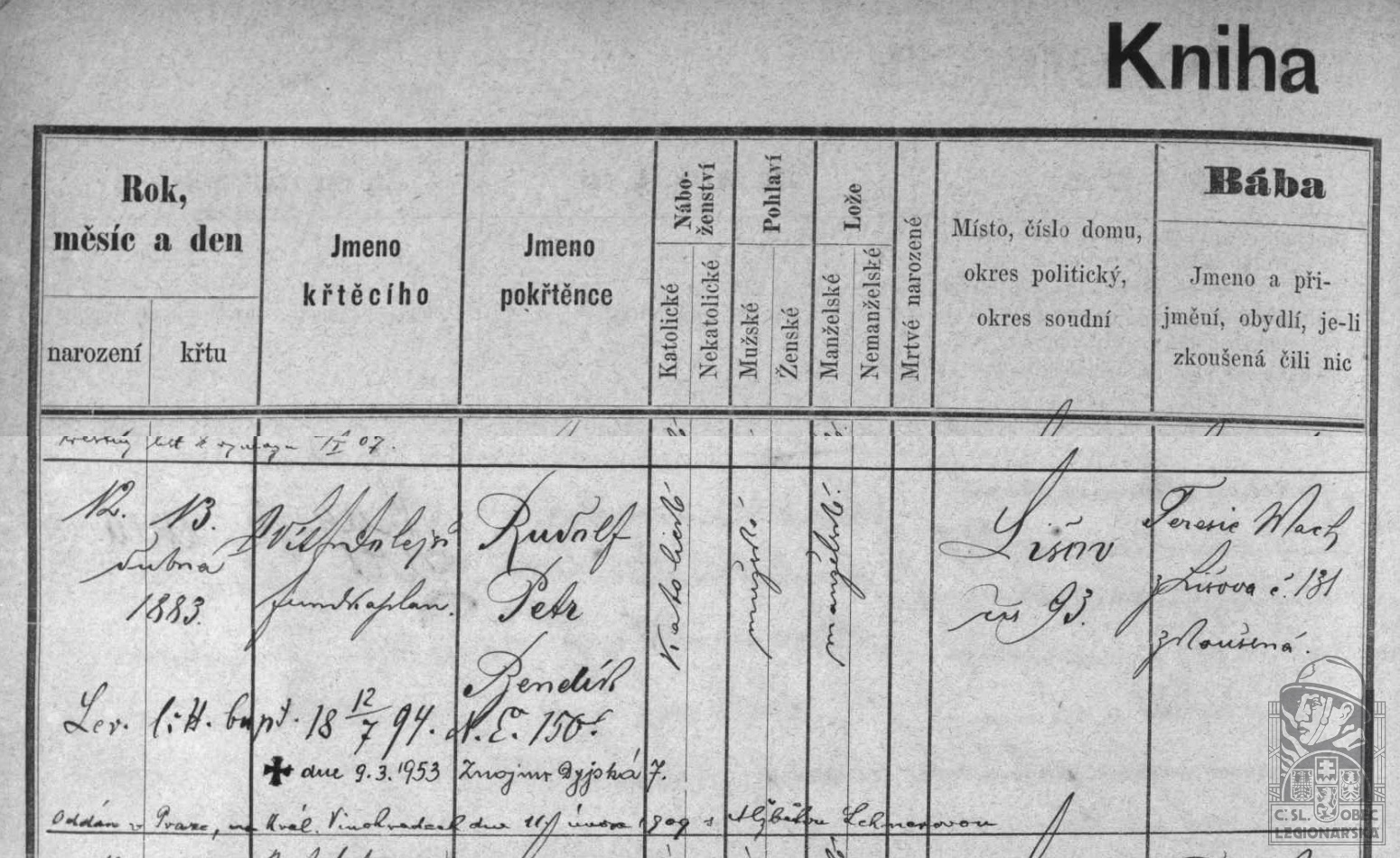 Zdroj informací: legionářský poslužný spis osobní karta legionáře