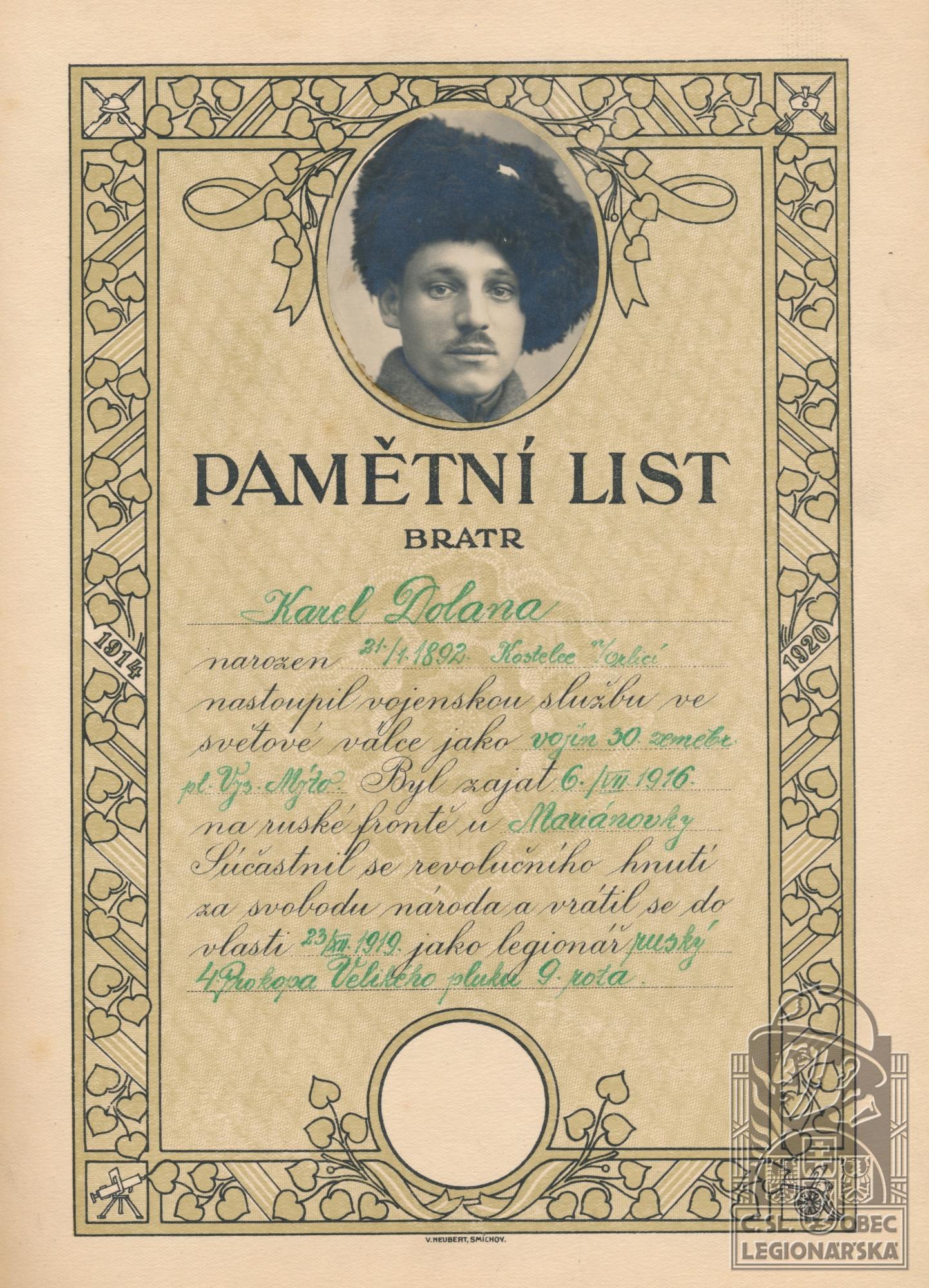 Zdroj informací: legionářský poslužný spis osobní karta legionáře