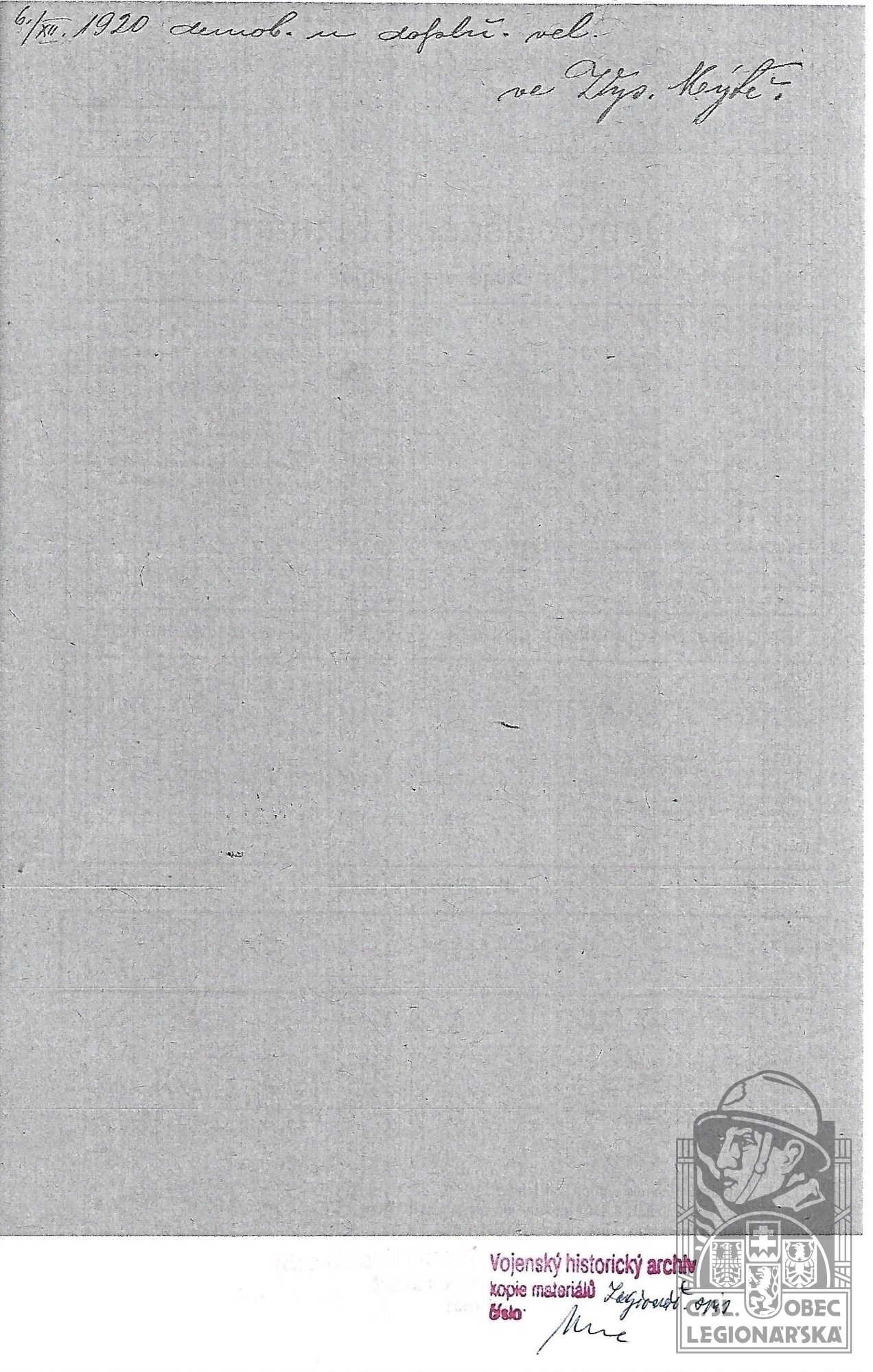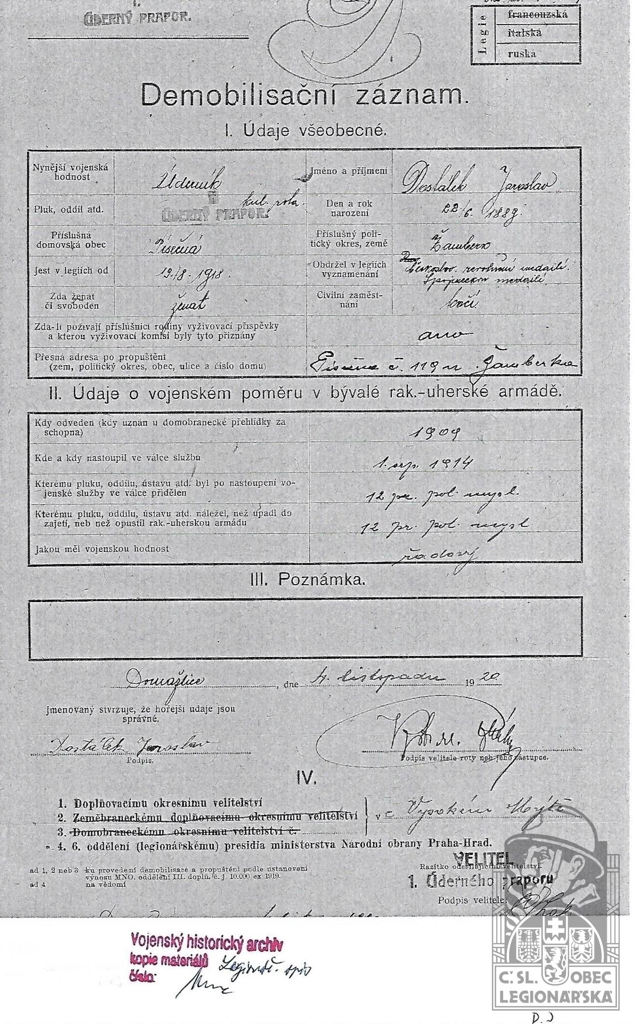 Konec v legiích:6.12.1920 ( Demobilizován )
