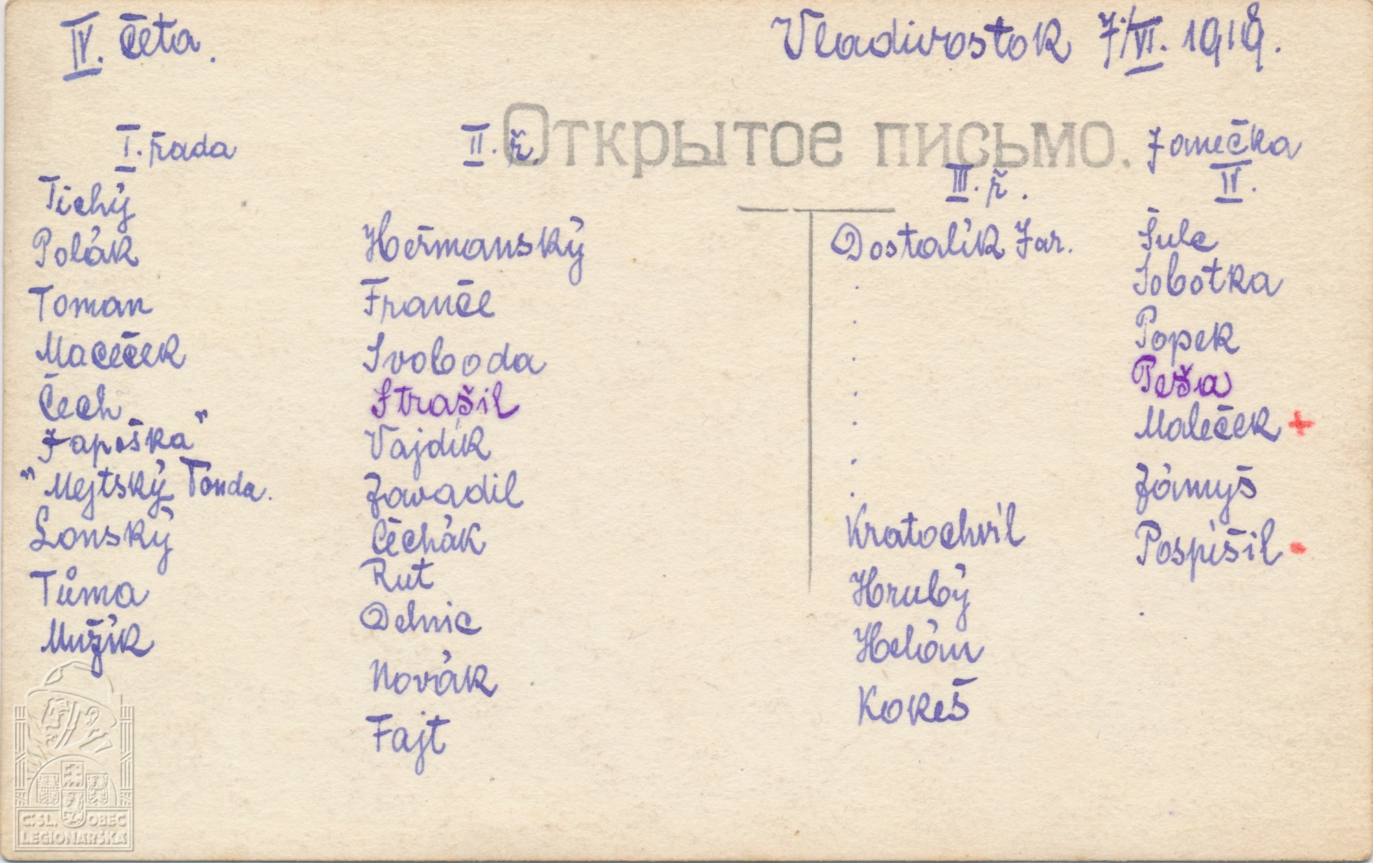 Jednotka v době zařazení:8.stř.pl. ( Čs. legie v Rusku )