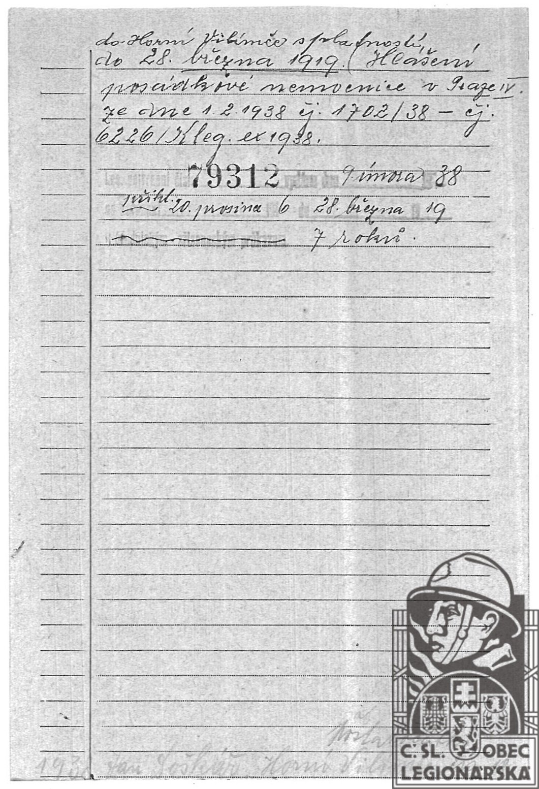 Konec v legiích:28.3.1919 ( Viz poznámku )