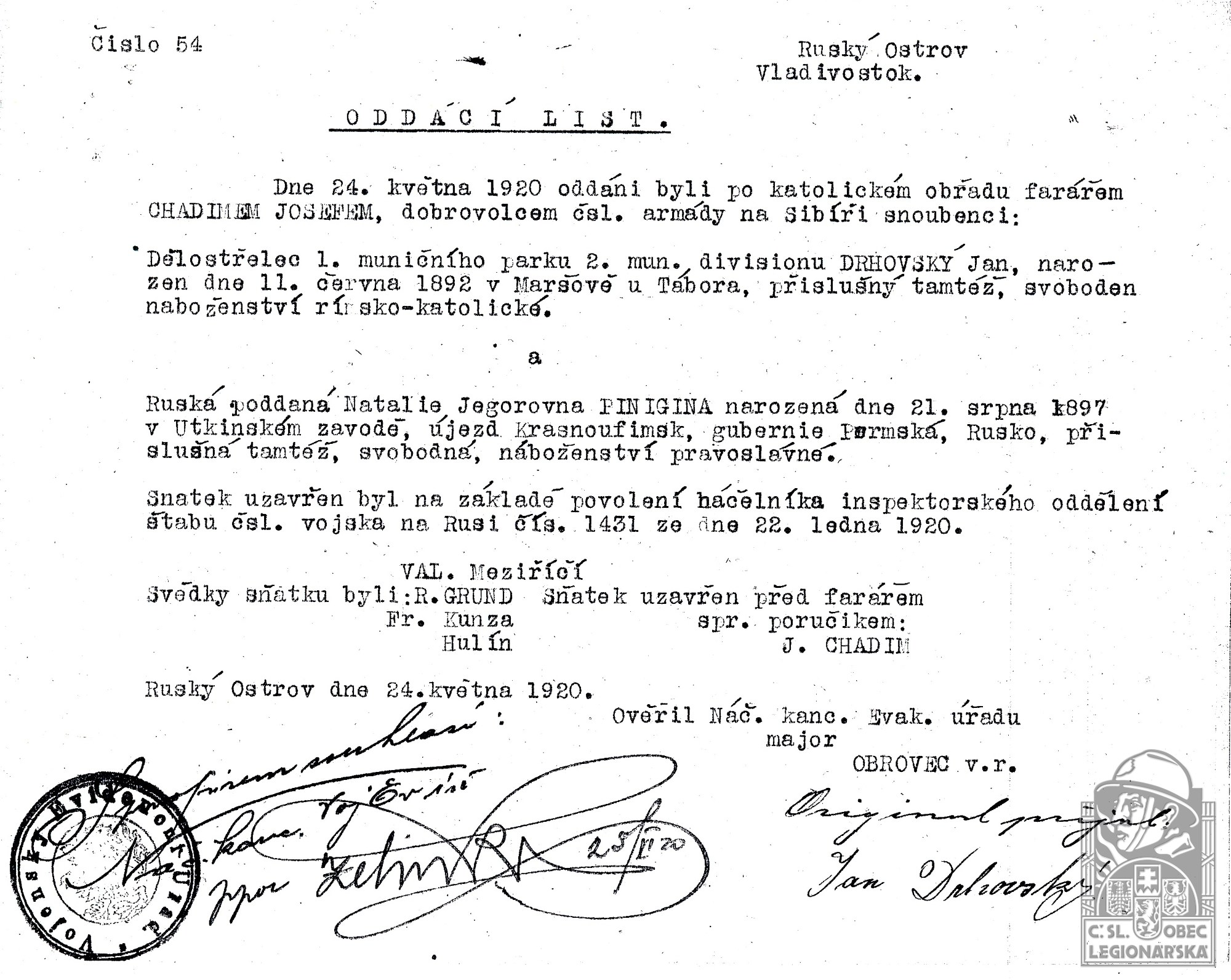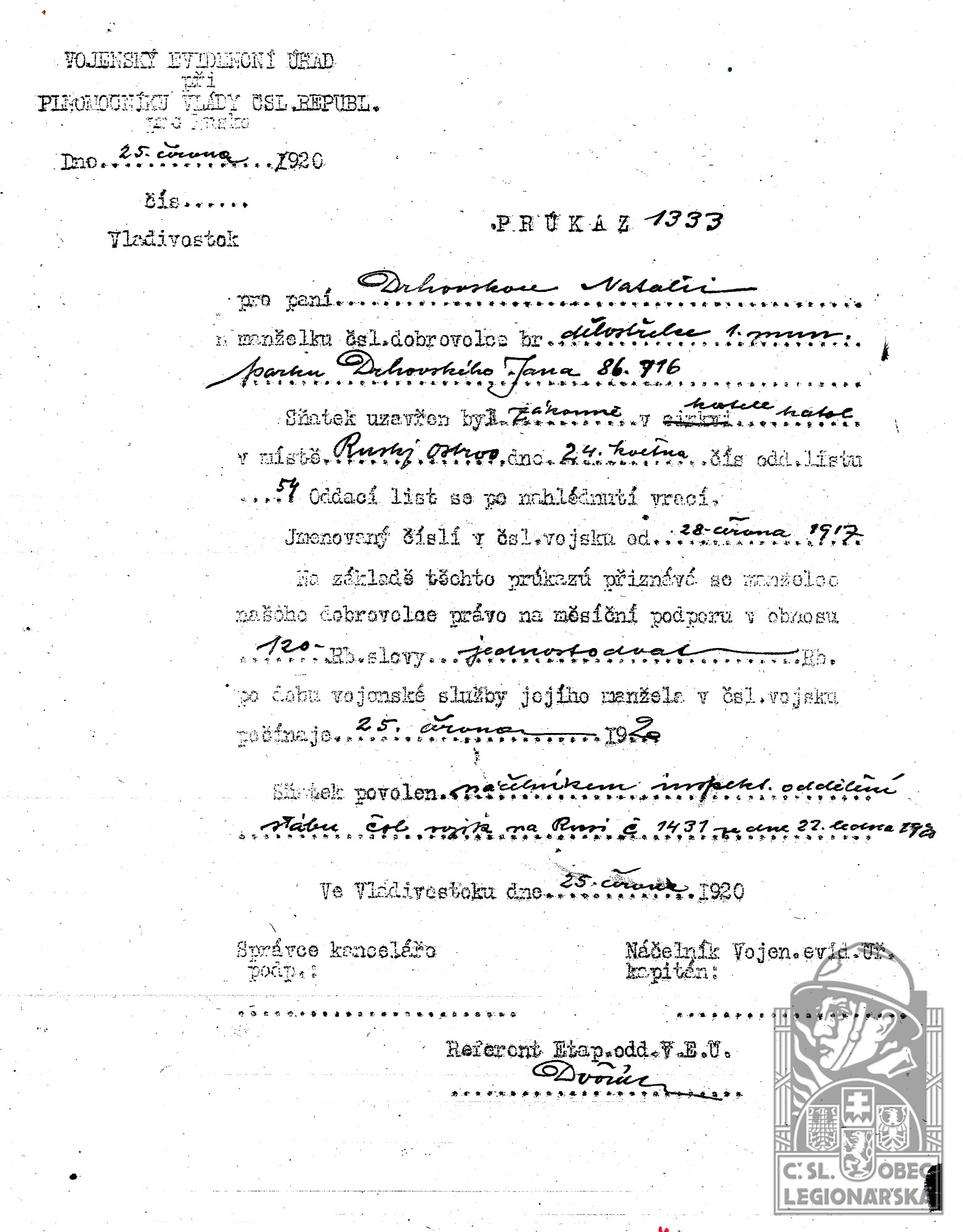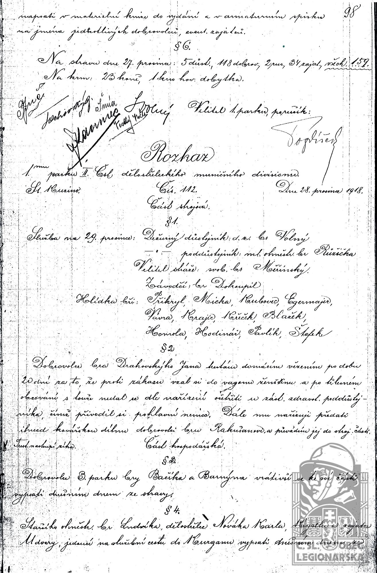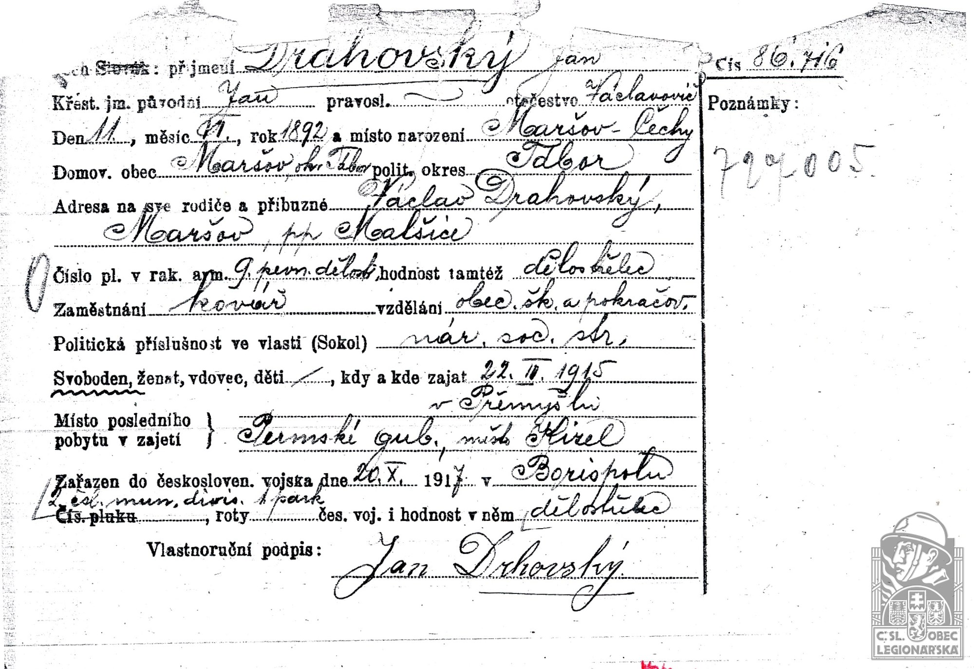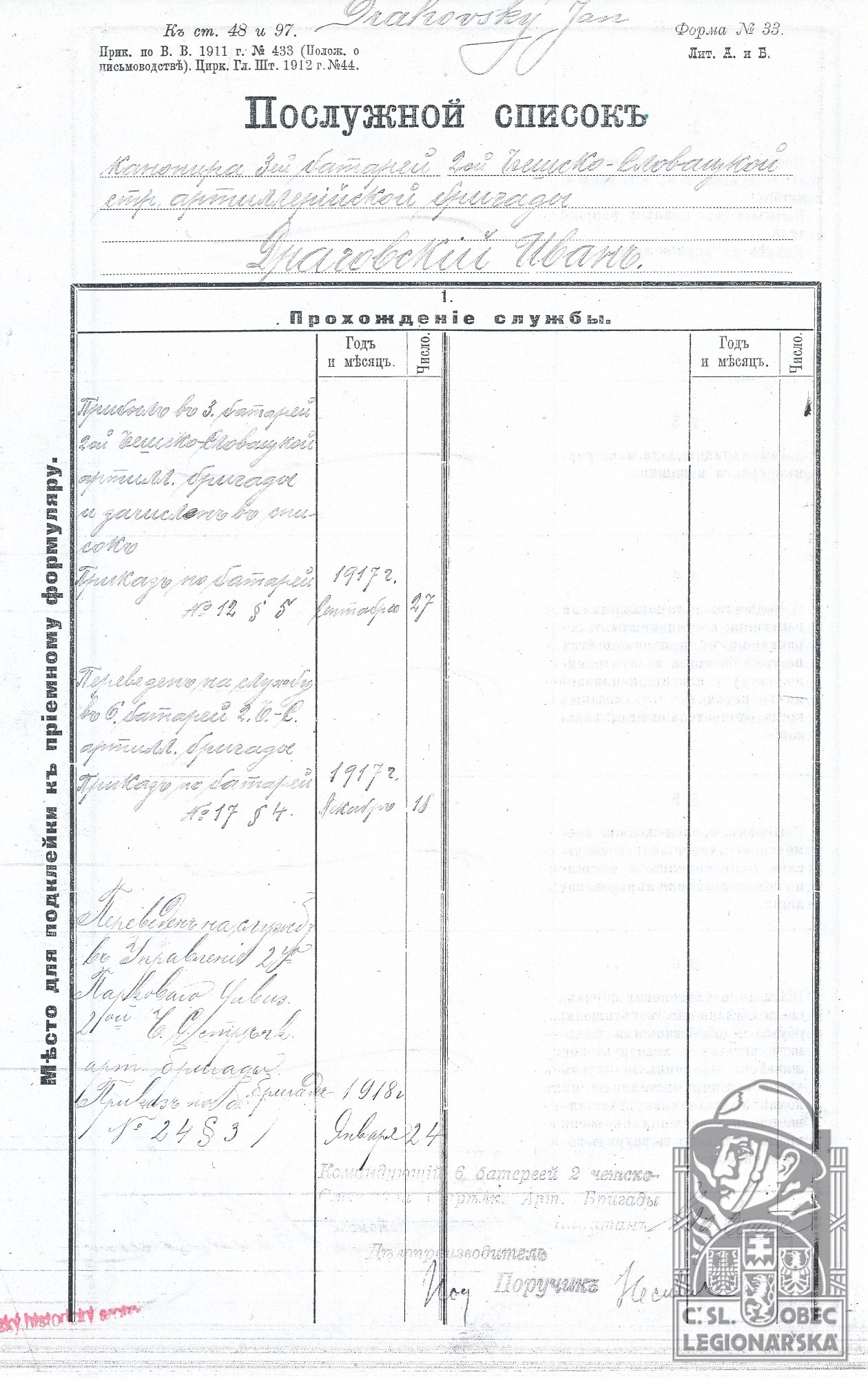 Jednotka v době zařazení:2.děl.brig. ( Čs. legie v Rusku )