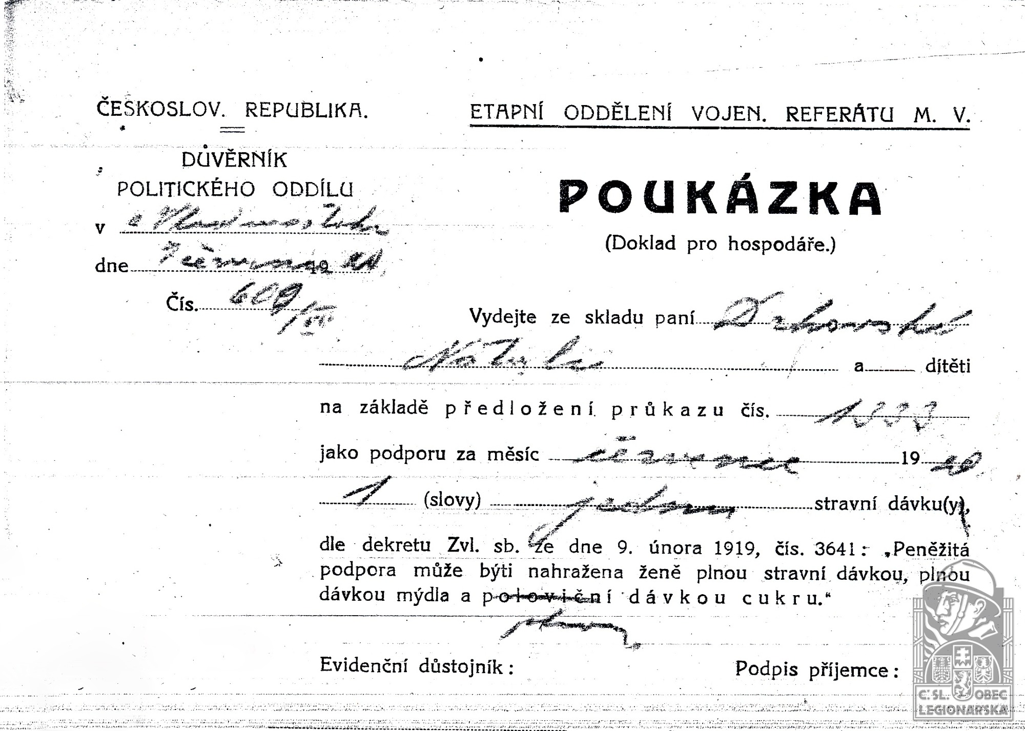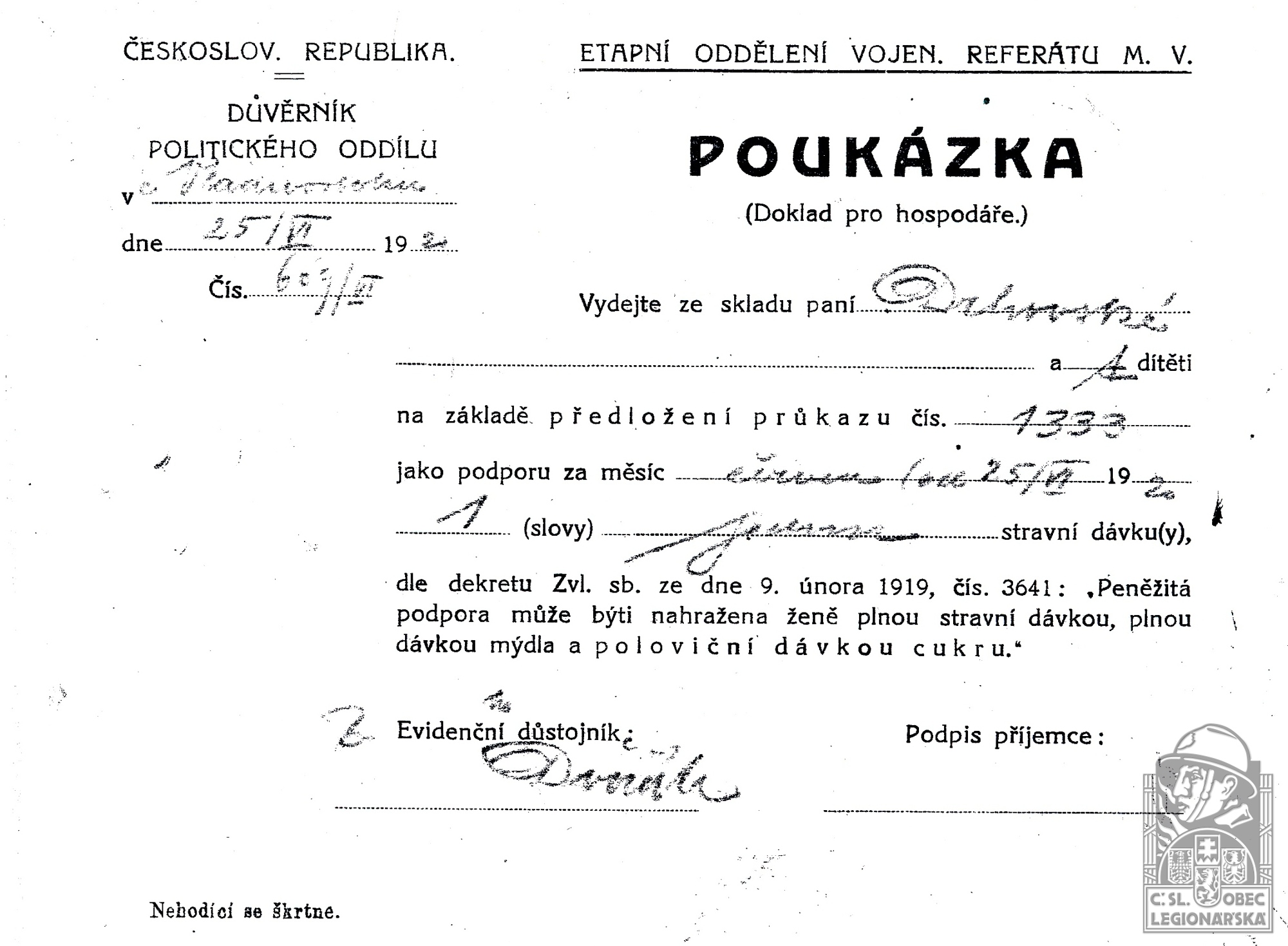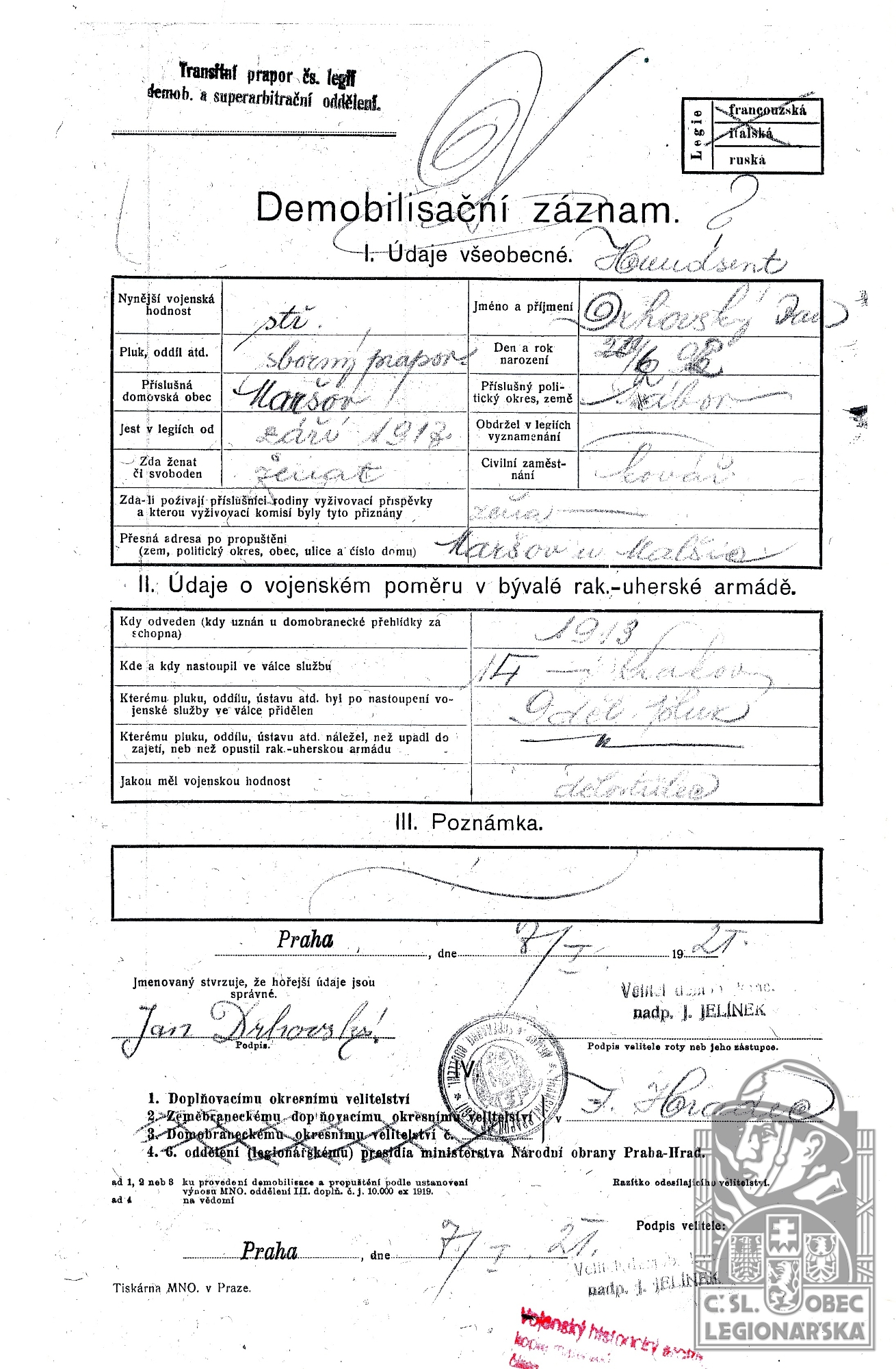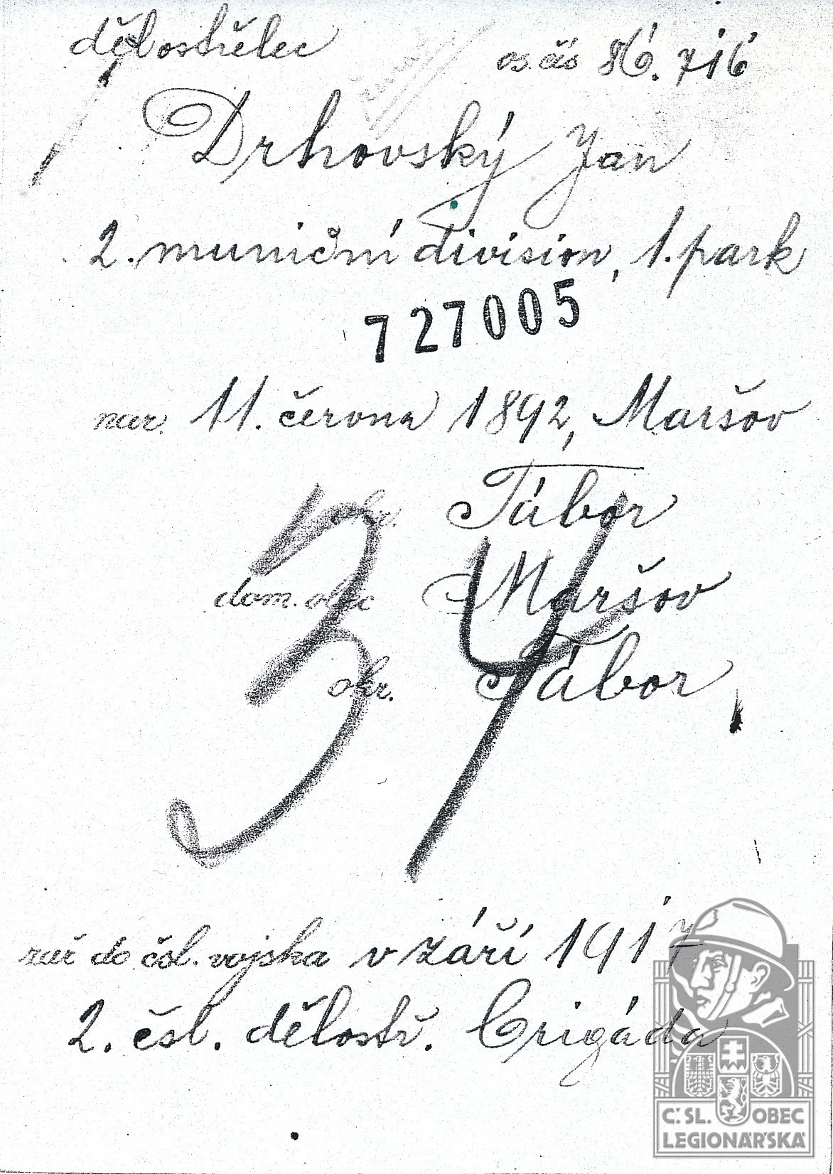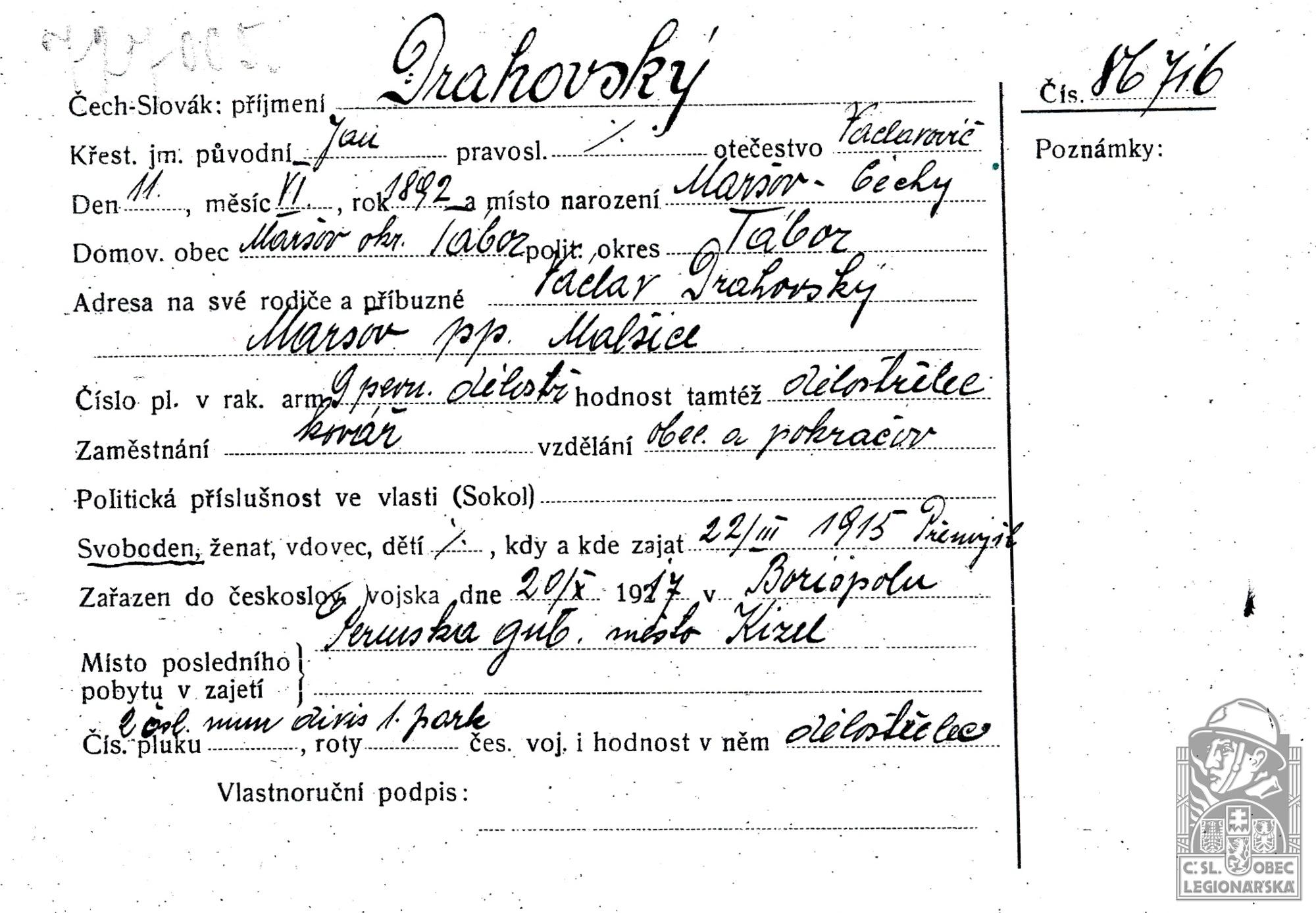Zdroj informací: legionářský poslužný spis osobní karta legionáře