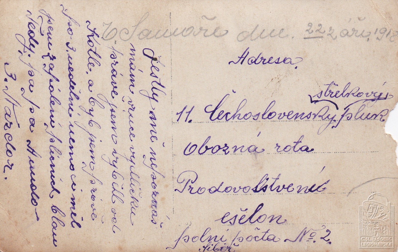 Jednotka v době zařazení:11.stř.pl. ( Čs. legie v Rusku )