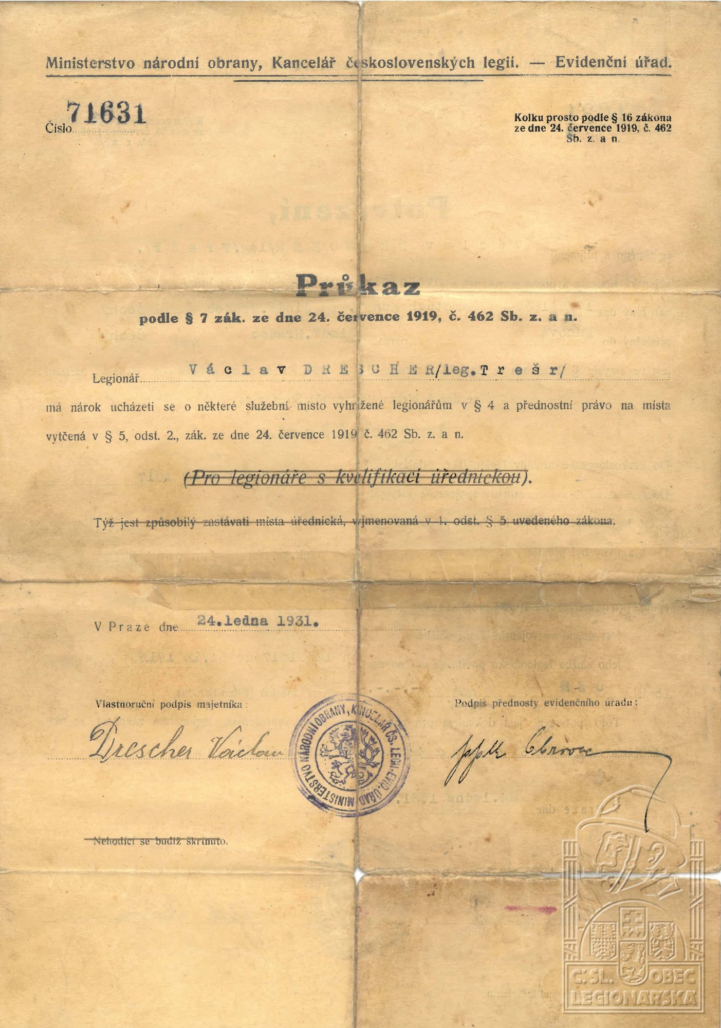 Konec v legiích:11.5.1920 ( Demobilizován )