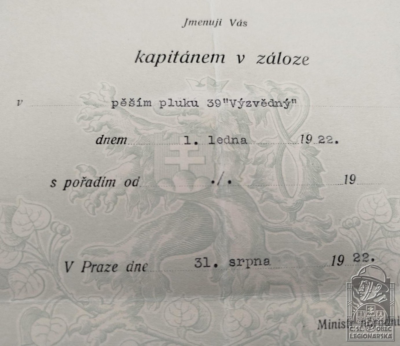 Poslední útvar v legiích:39.p.pl.