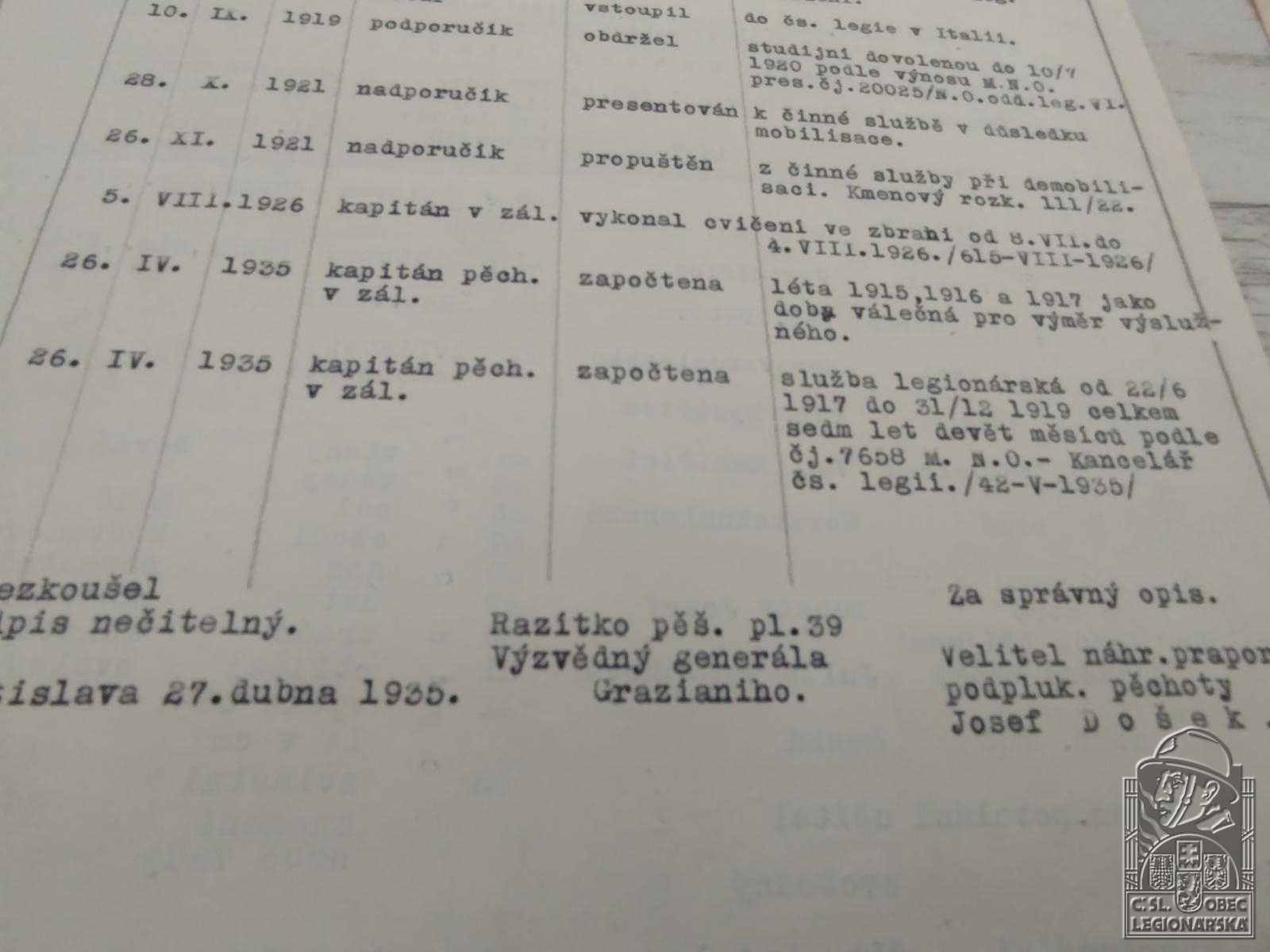 dokumenty spojené s osobou legionáře