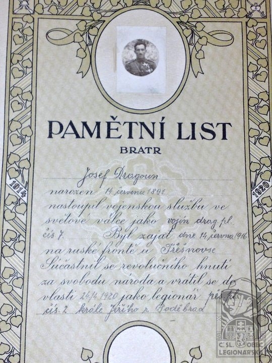 Zdroj informací: legionářský poslužný spis osobní karta legionáře