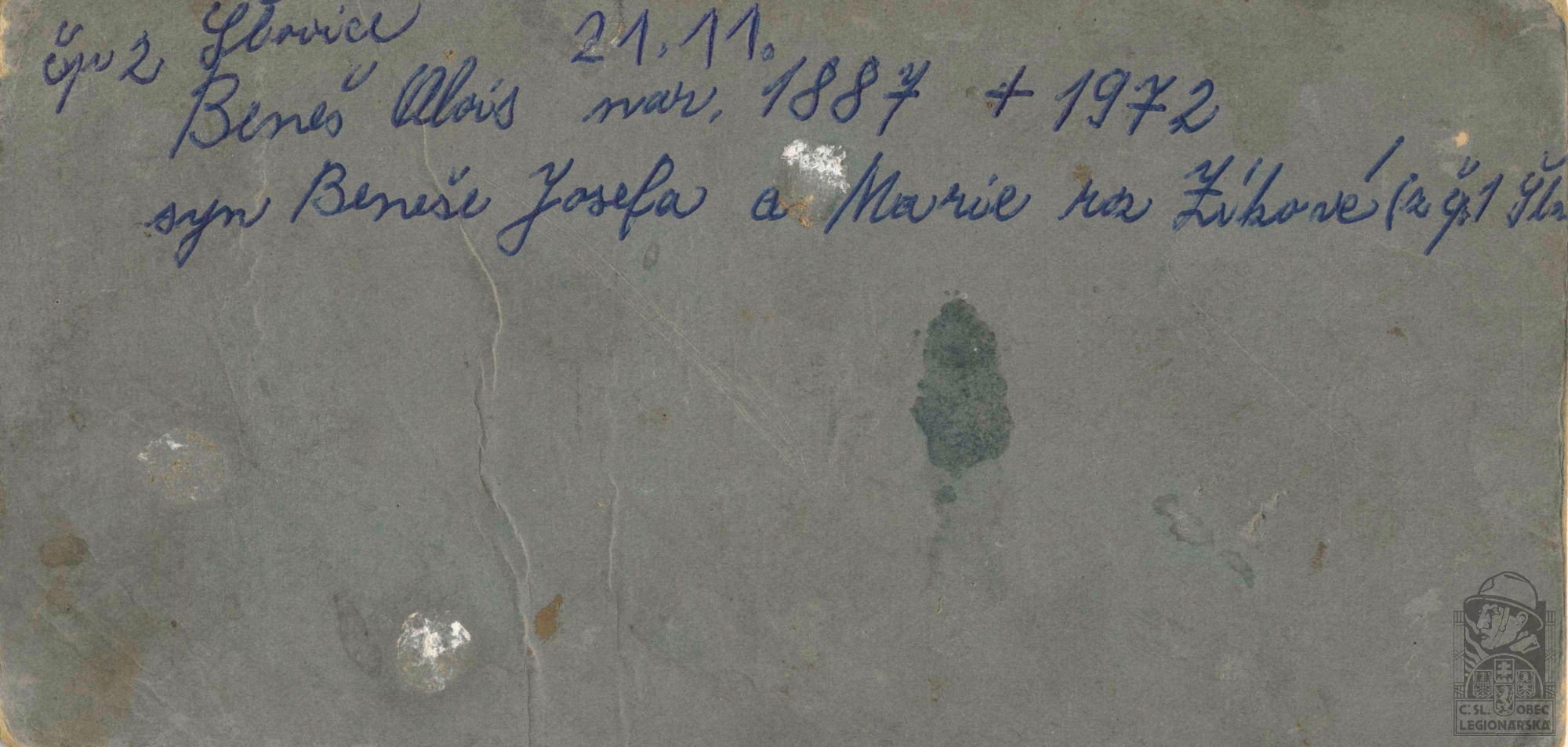 Zdroj informací: legionářský poslužný spis osobní karta legionáře