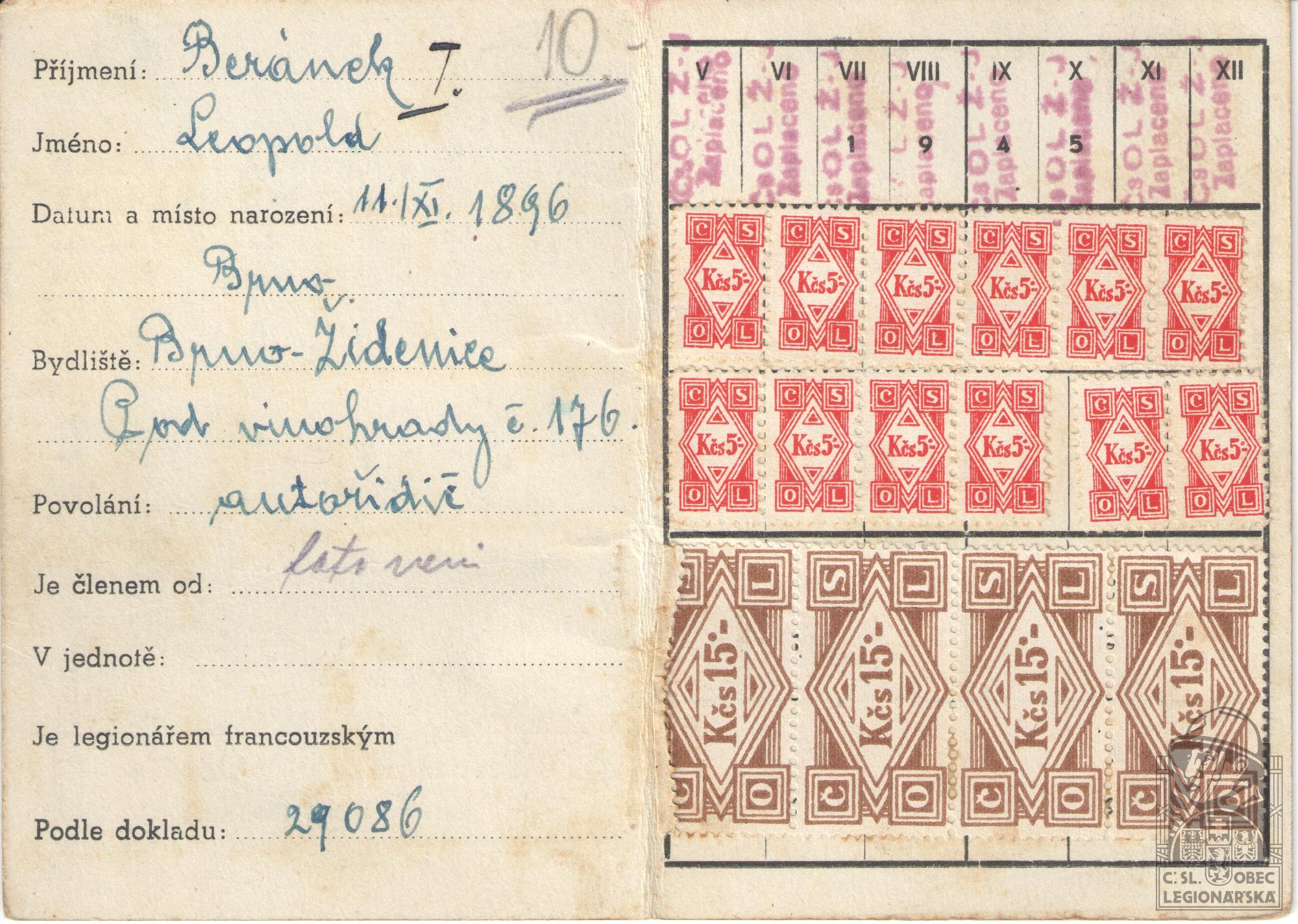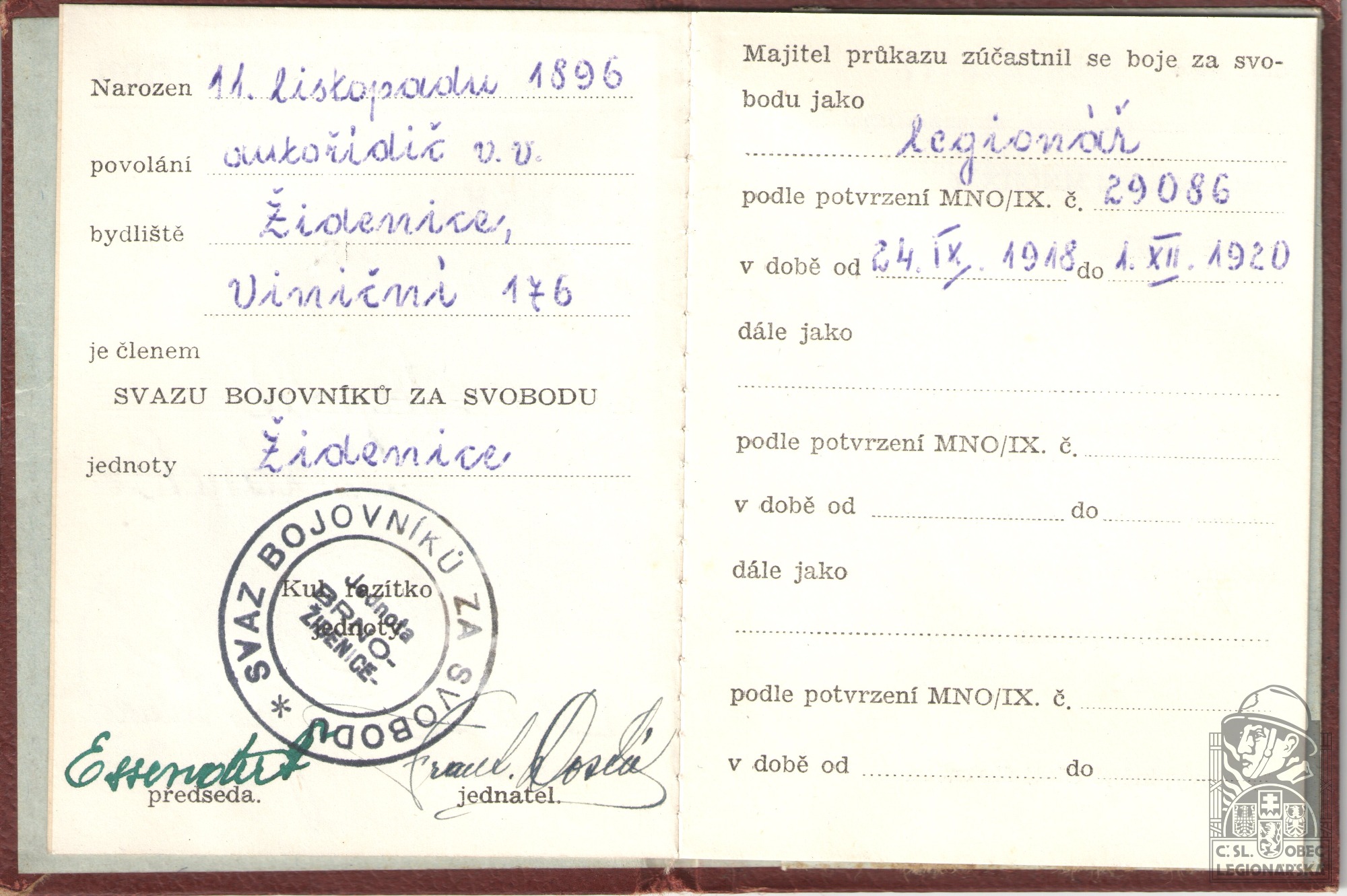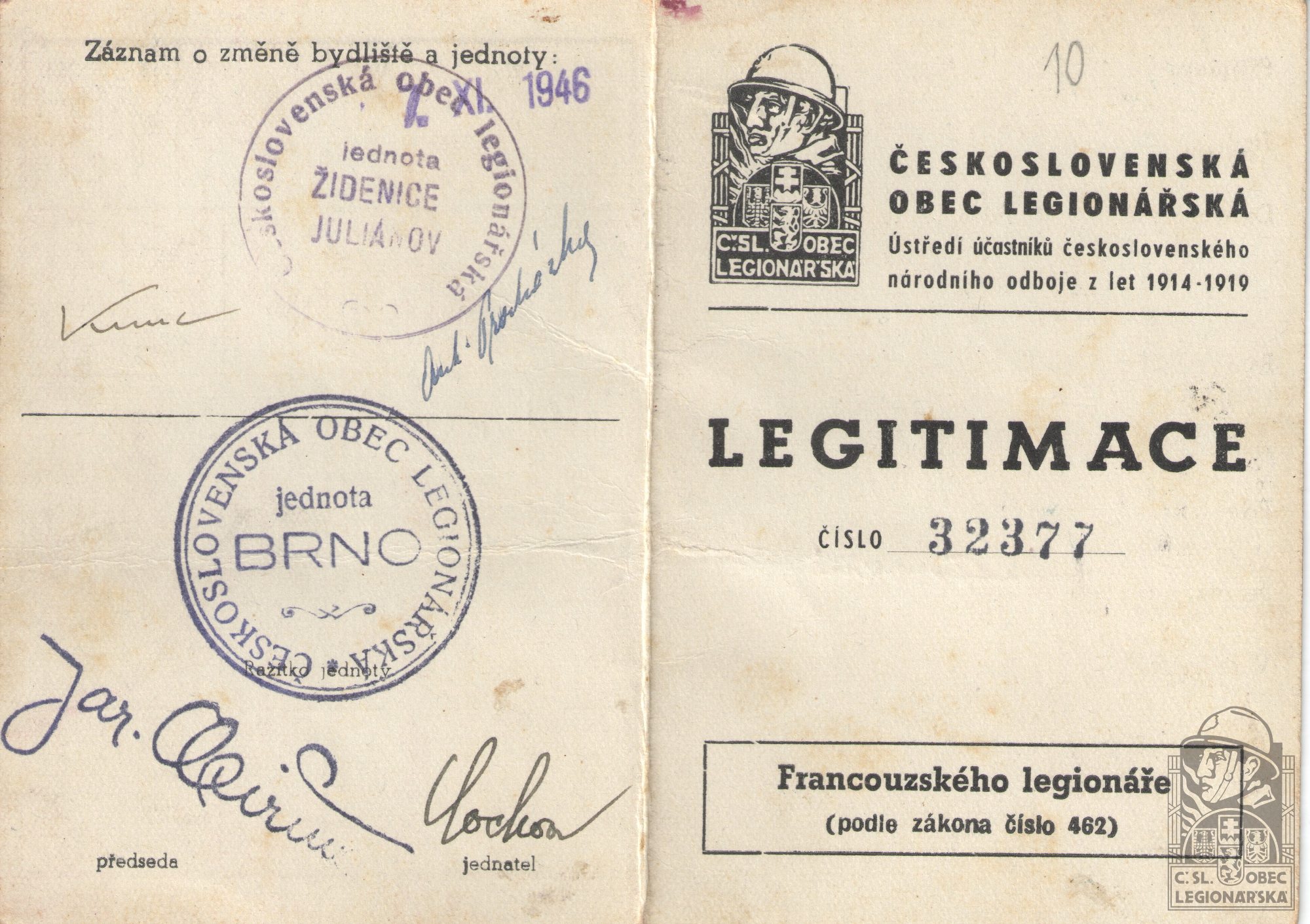 Zdroj informací: legionářský poslužný spis osobní karta legionáře