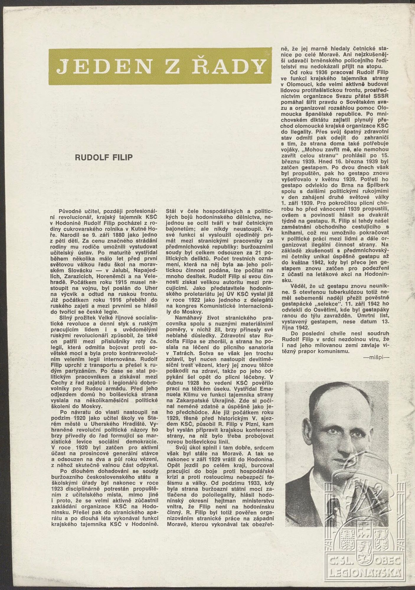 Zdroj informací: legionářský poslužný spis osobní karta legionáře