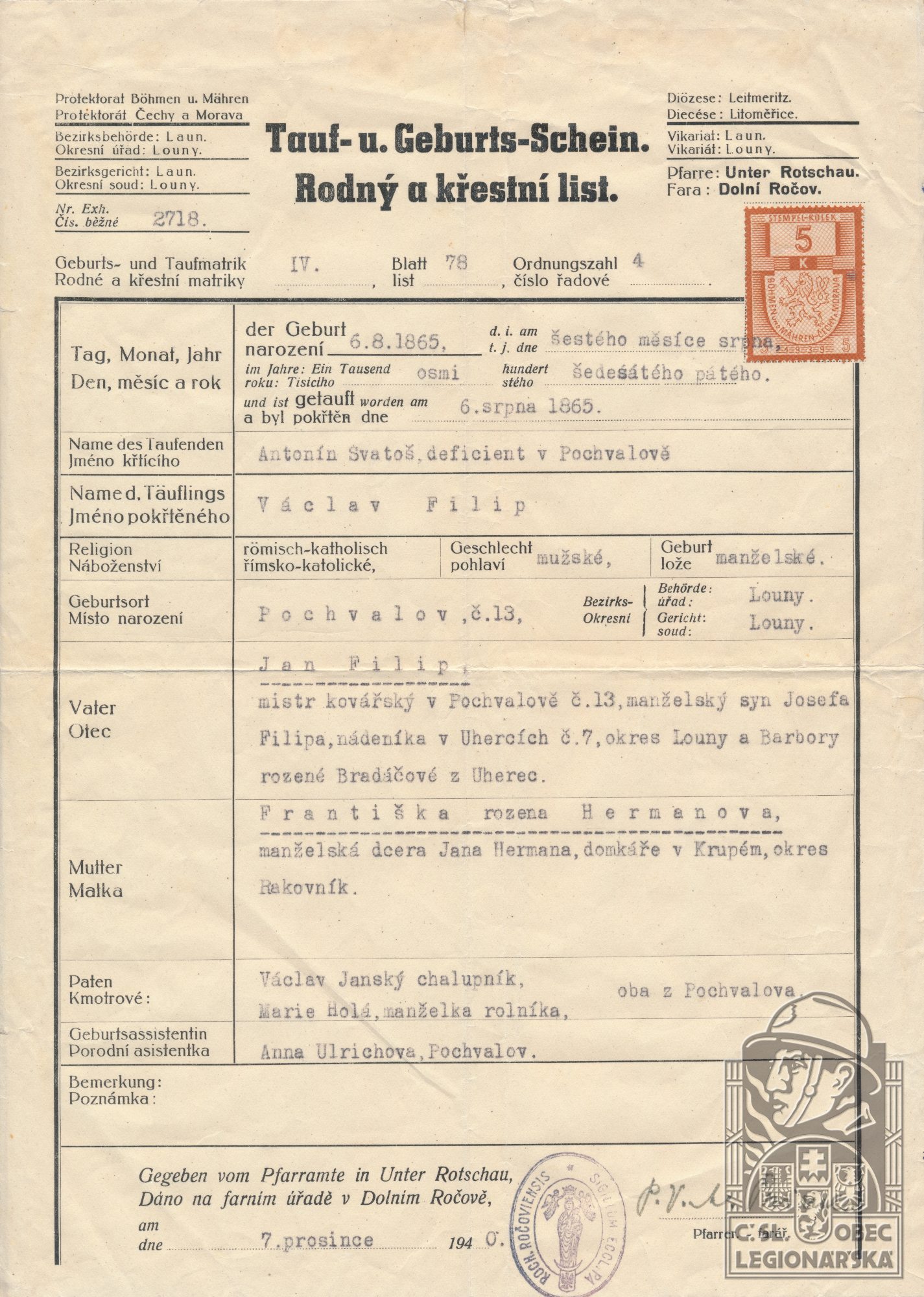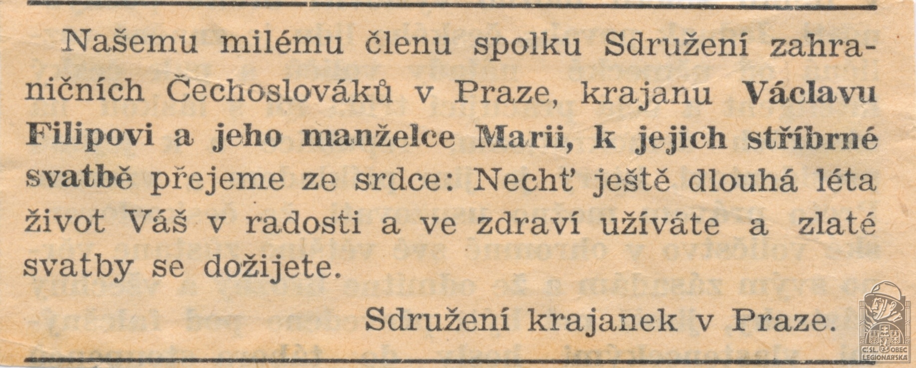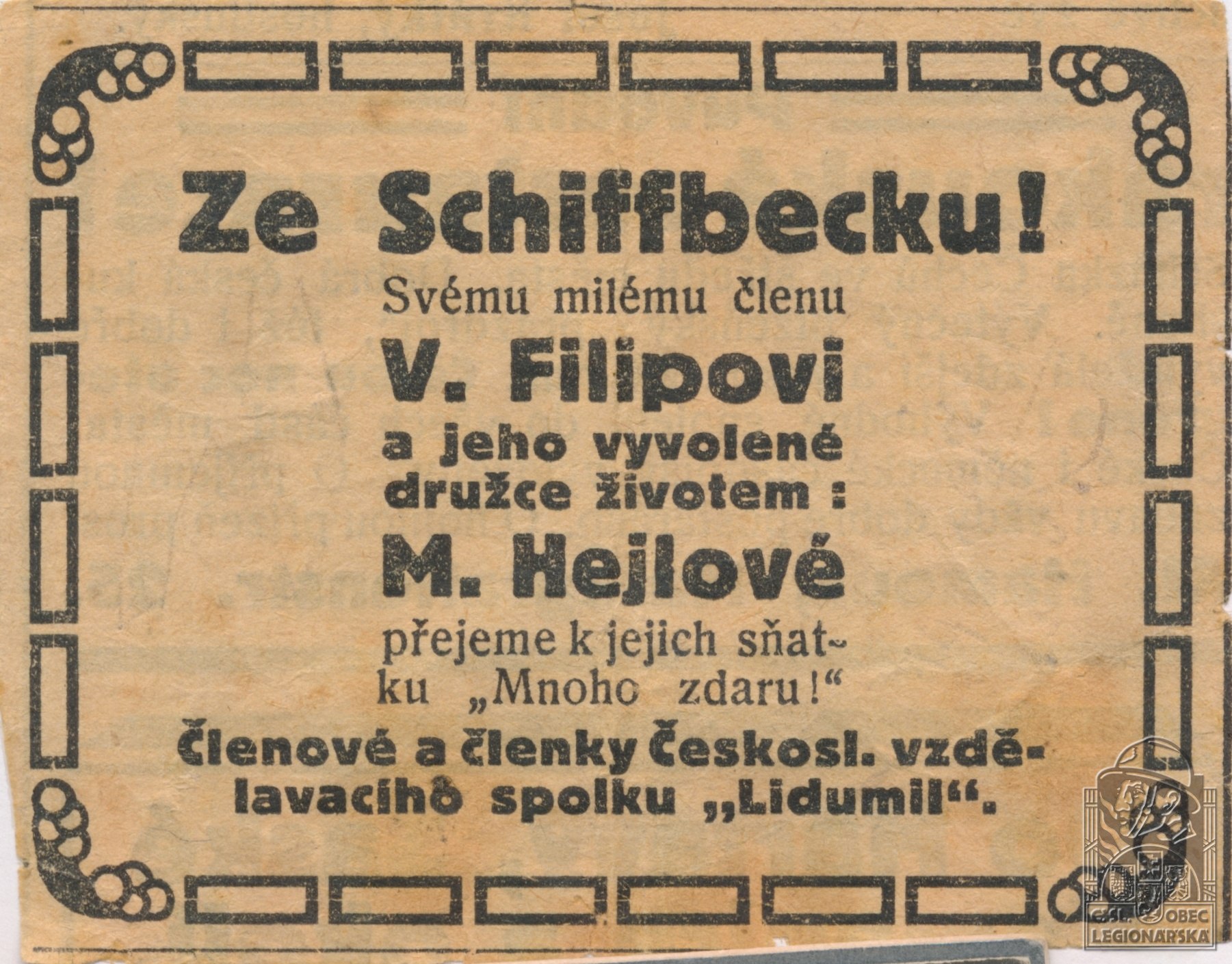 Poznámka:V legiích od 26.6.1917 do 1.1.1920. Členem spolku a časopisu Vystěhovalec a spolku Lidomil z Hamburku
