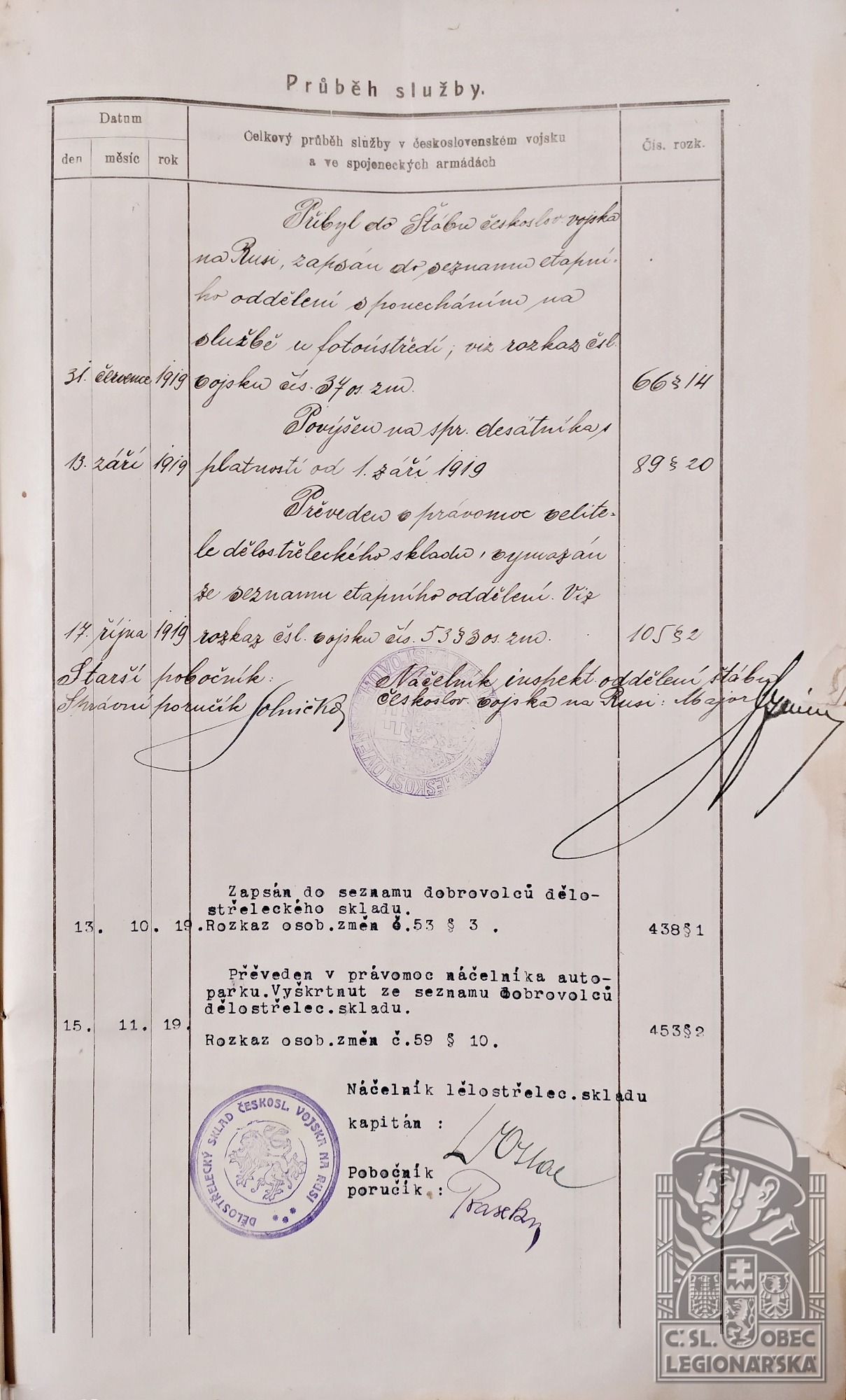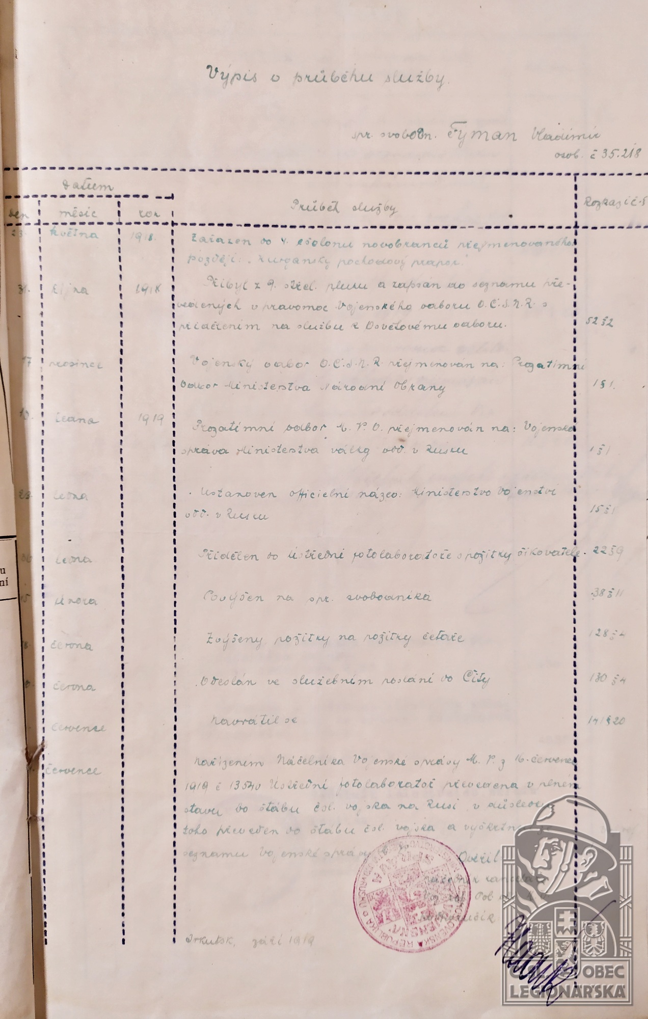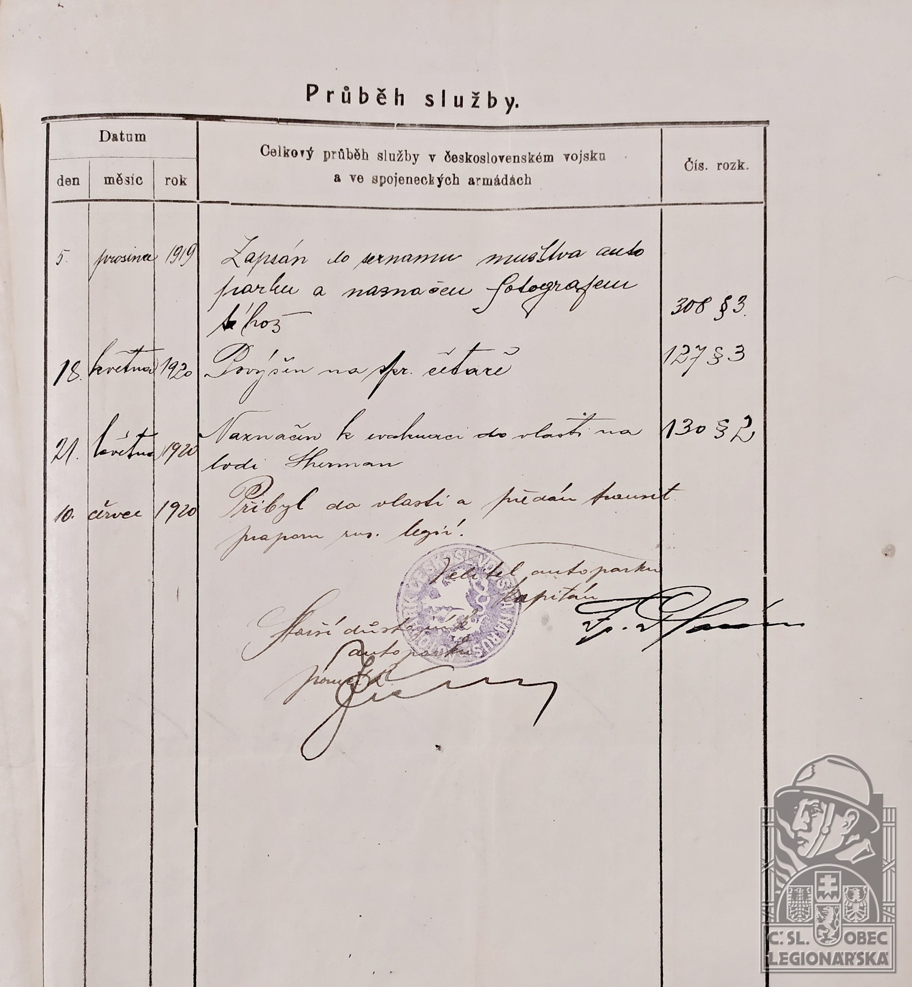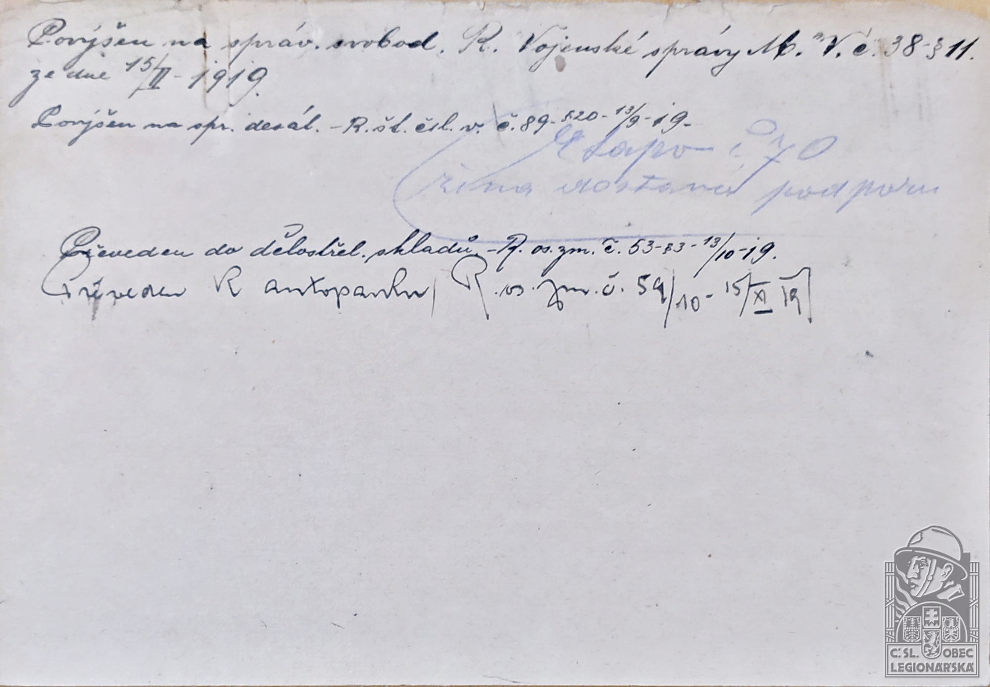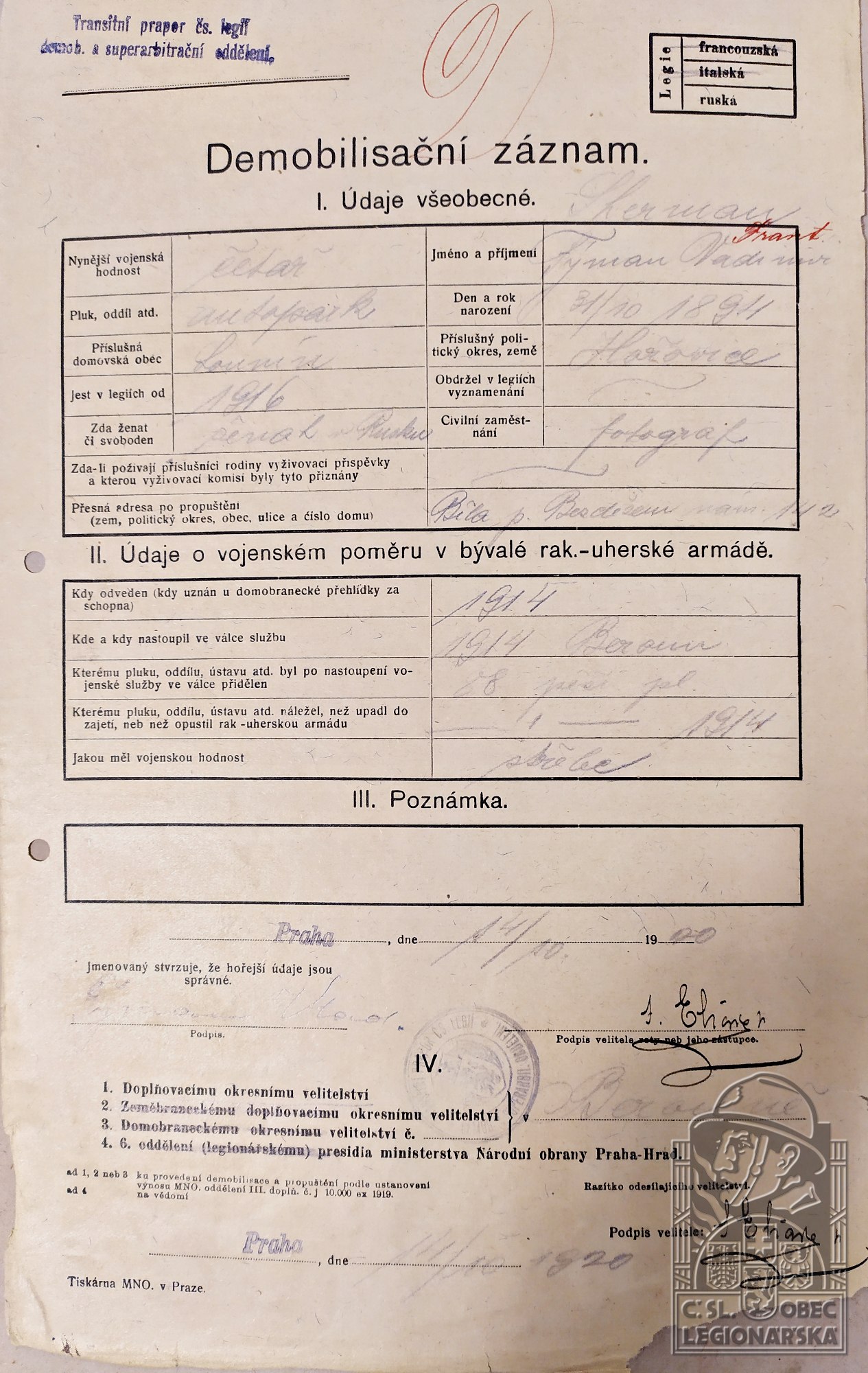 Konec v legiích:18.10.1920 ( Demobilizován )