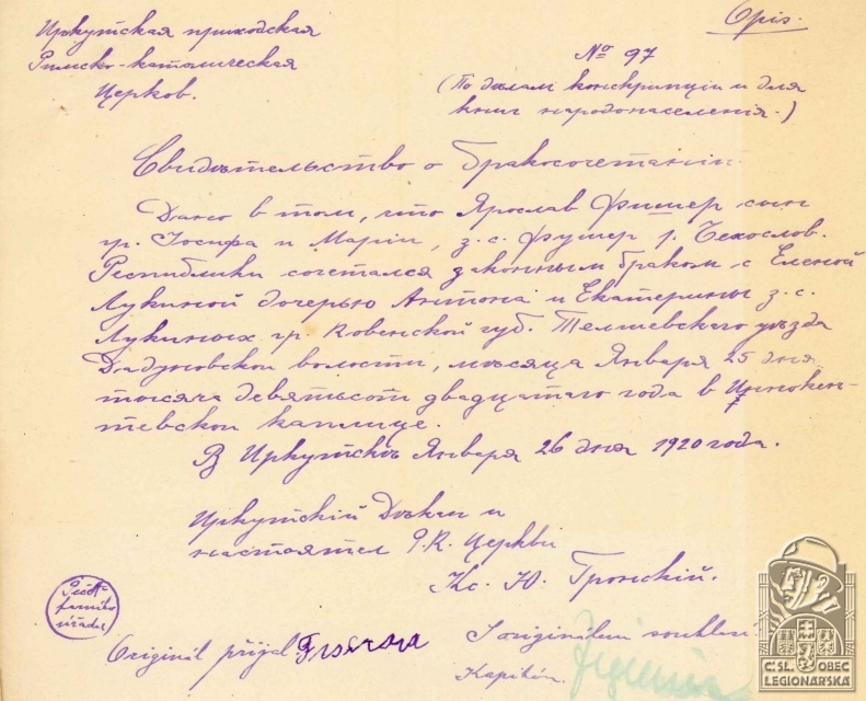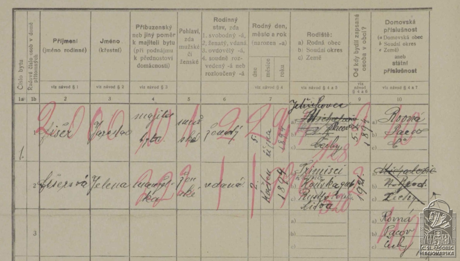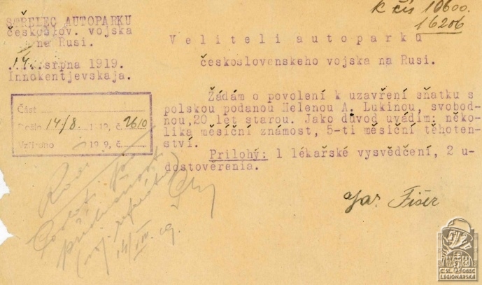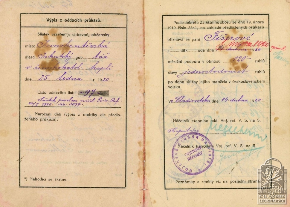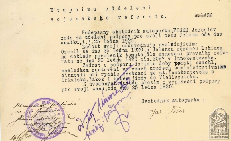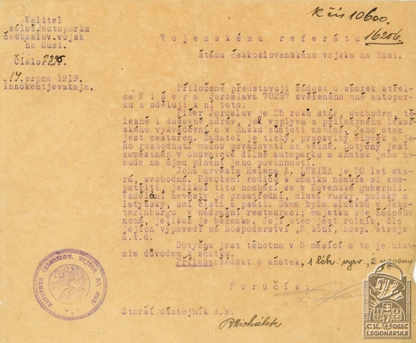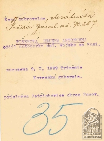 Poznámka:žena Fišerová Helena Antonovna nar. 9.10.1899 Tříměsíc Kovenski, má charakter
