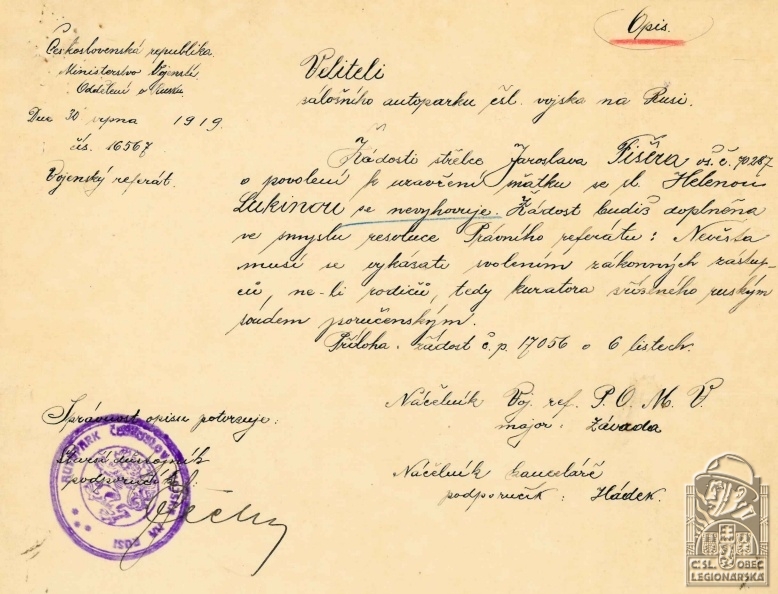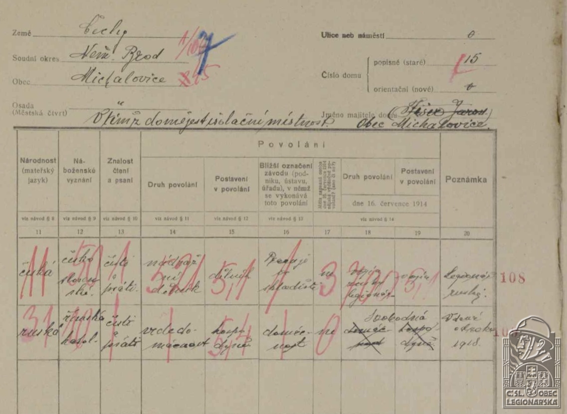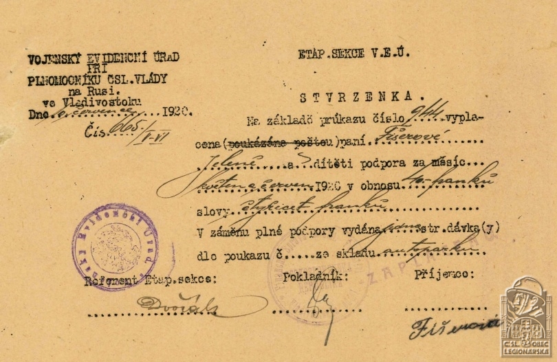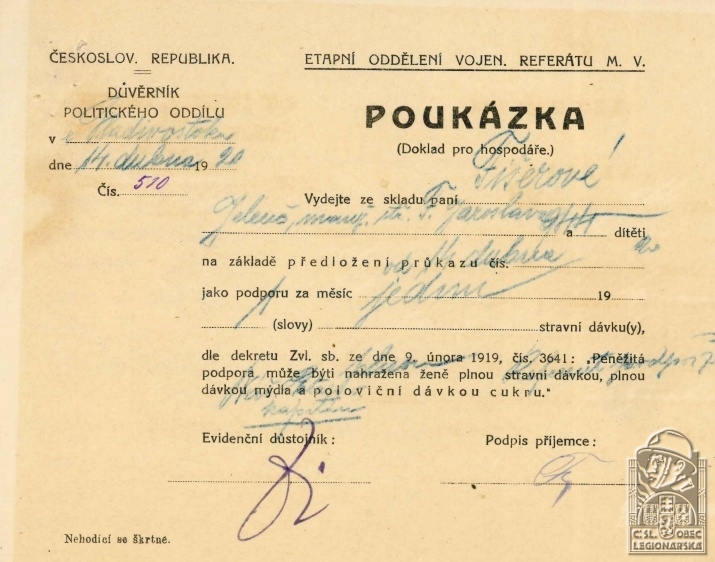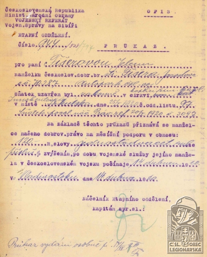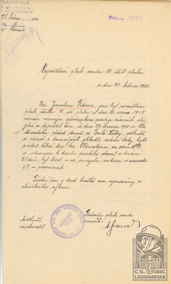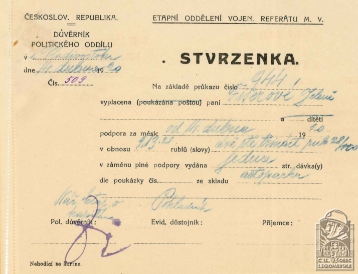 Zdroj informací: legionářský poslužný spis osobní karta legionáře osvědčení o vykonané legionářské službě