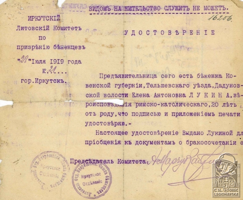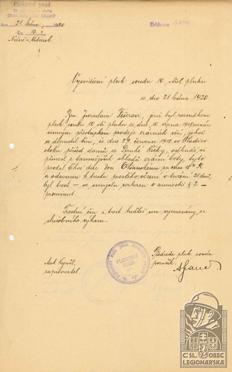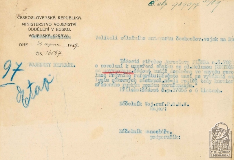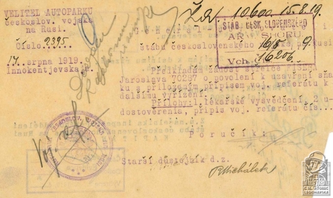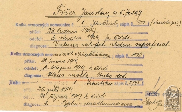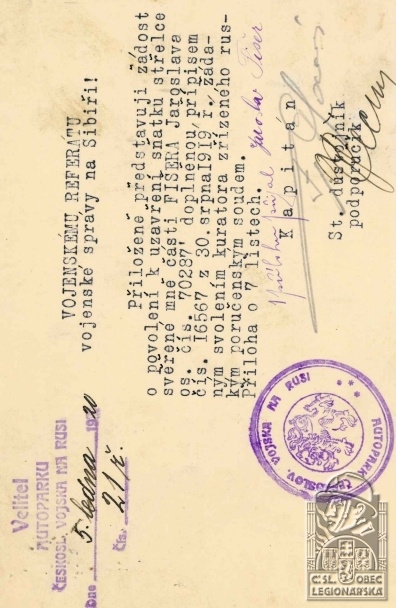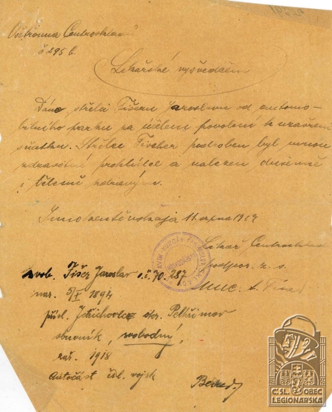 Jednotka v době zařazení:1.stř.pl. ( Čs. legie v Rusku )