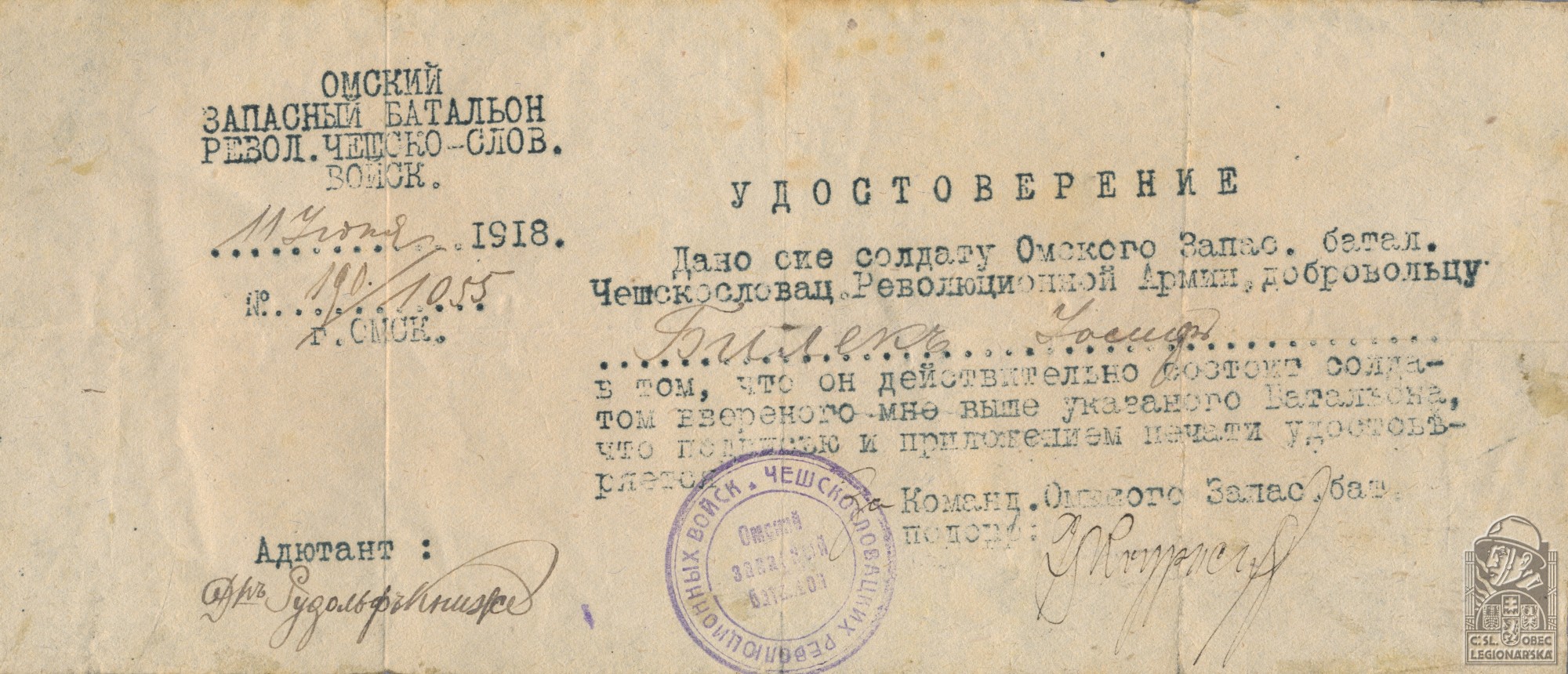Jednotka v době zařazení:1.úderný pr. ( Čs. legie v Rusku )