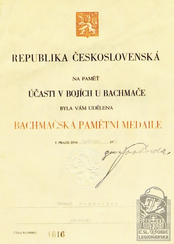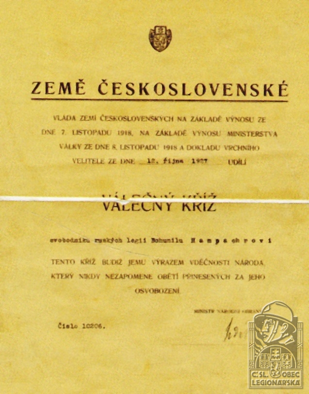 Jednotka v době zařazení:6.stř.pl. ( Čs. legie v Rusku )