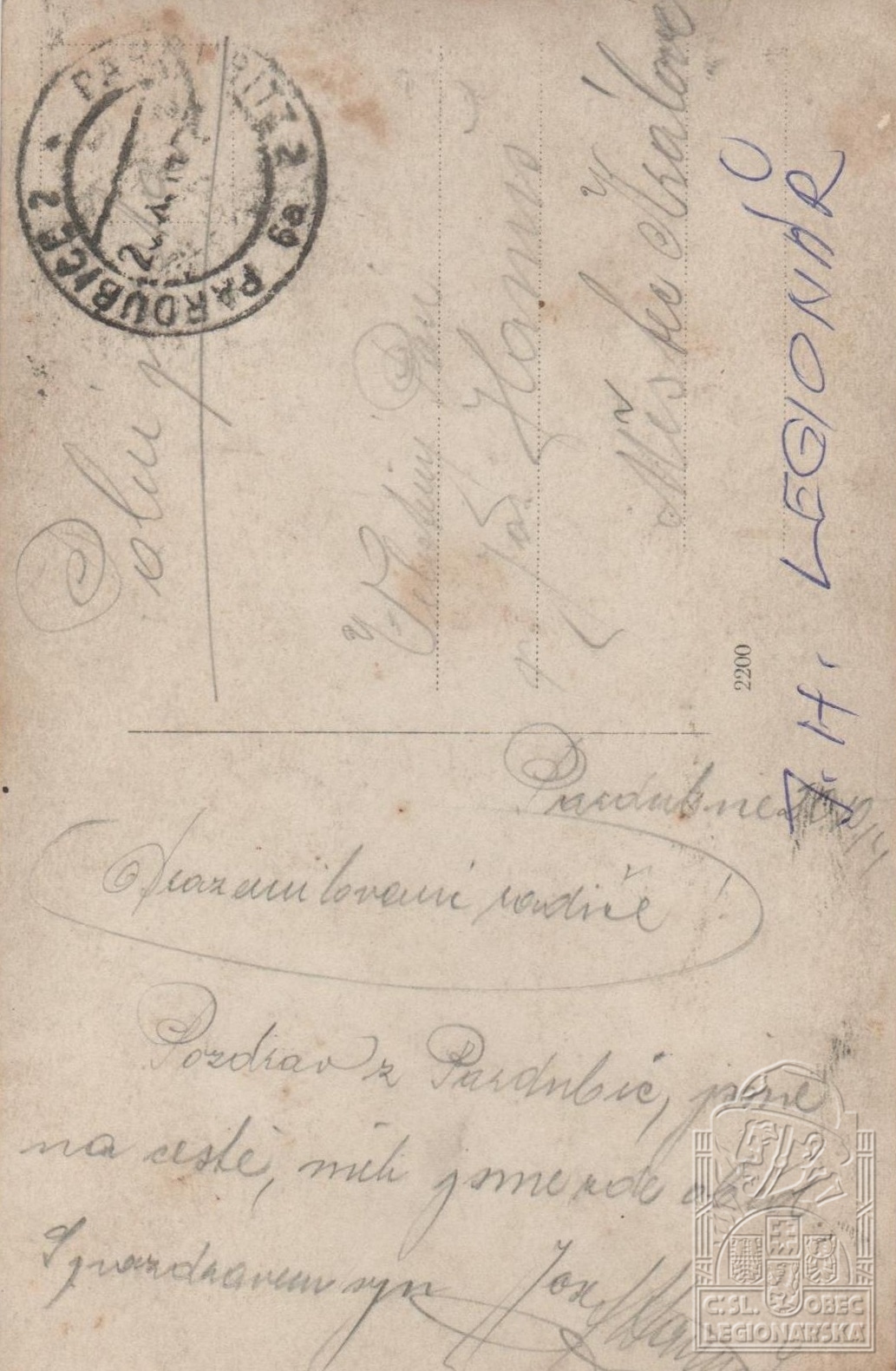 Jednotka v době zařazení:2.oms.poch.pr. ( Čs. legie v Rusku )