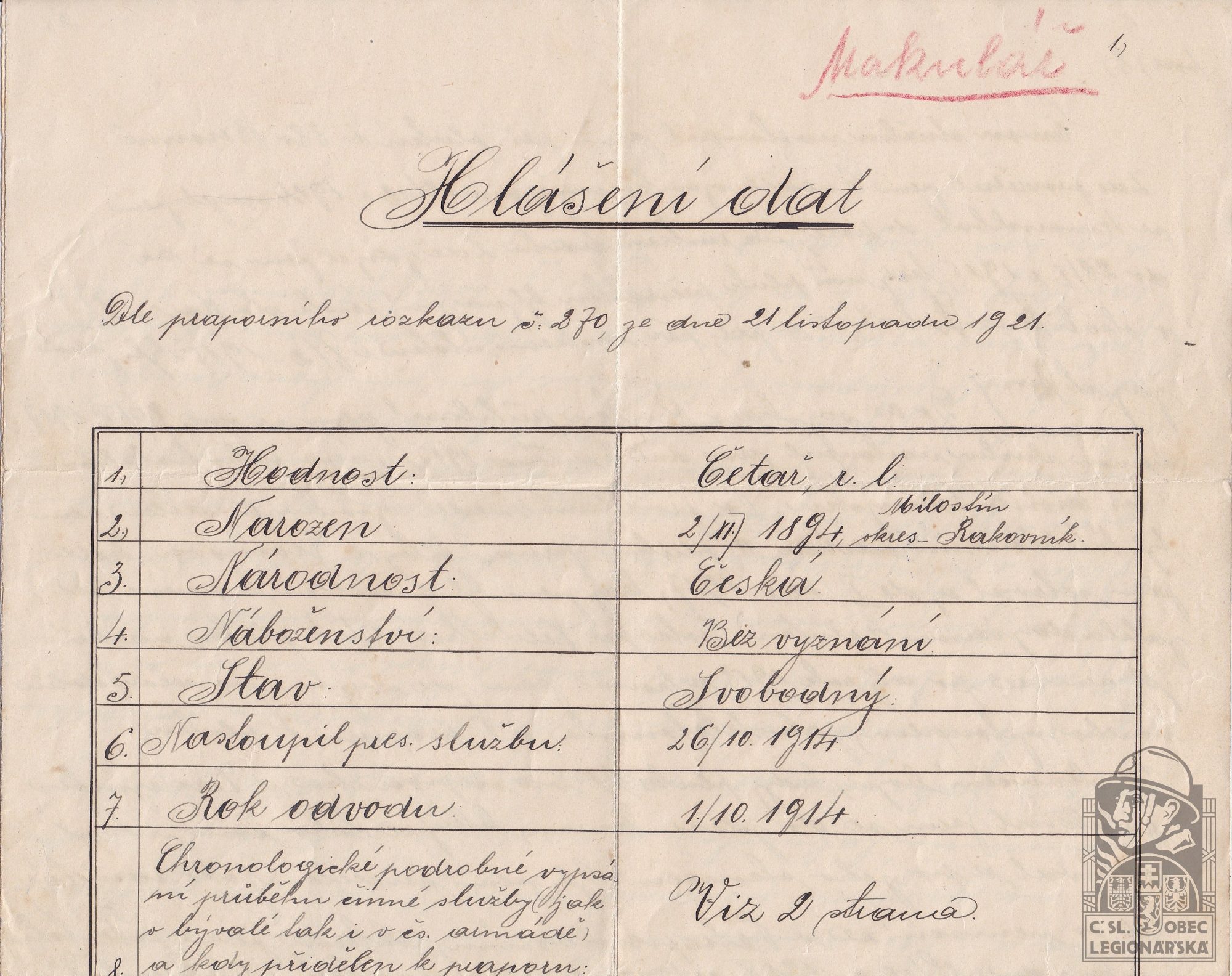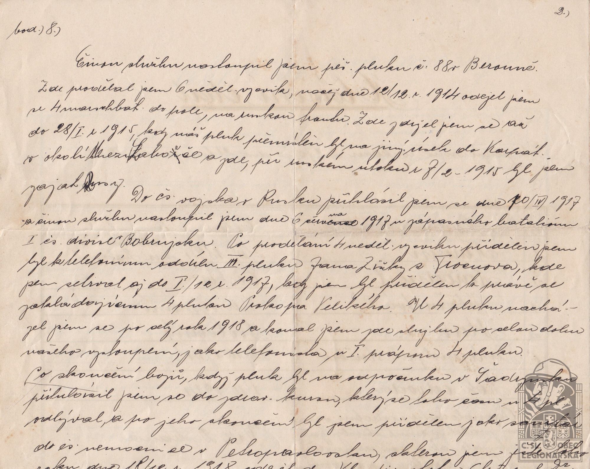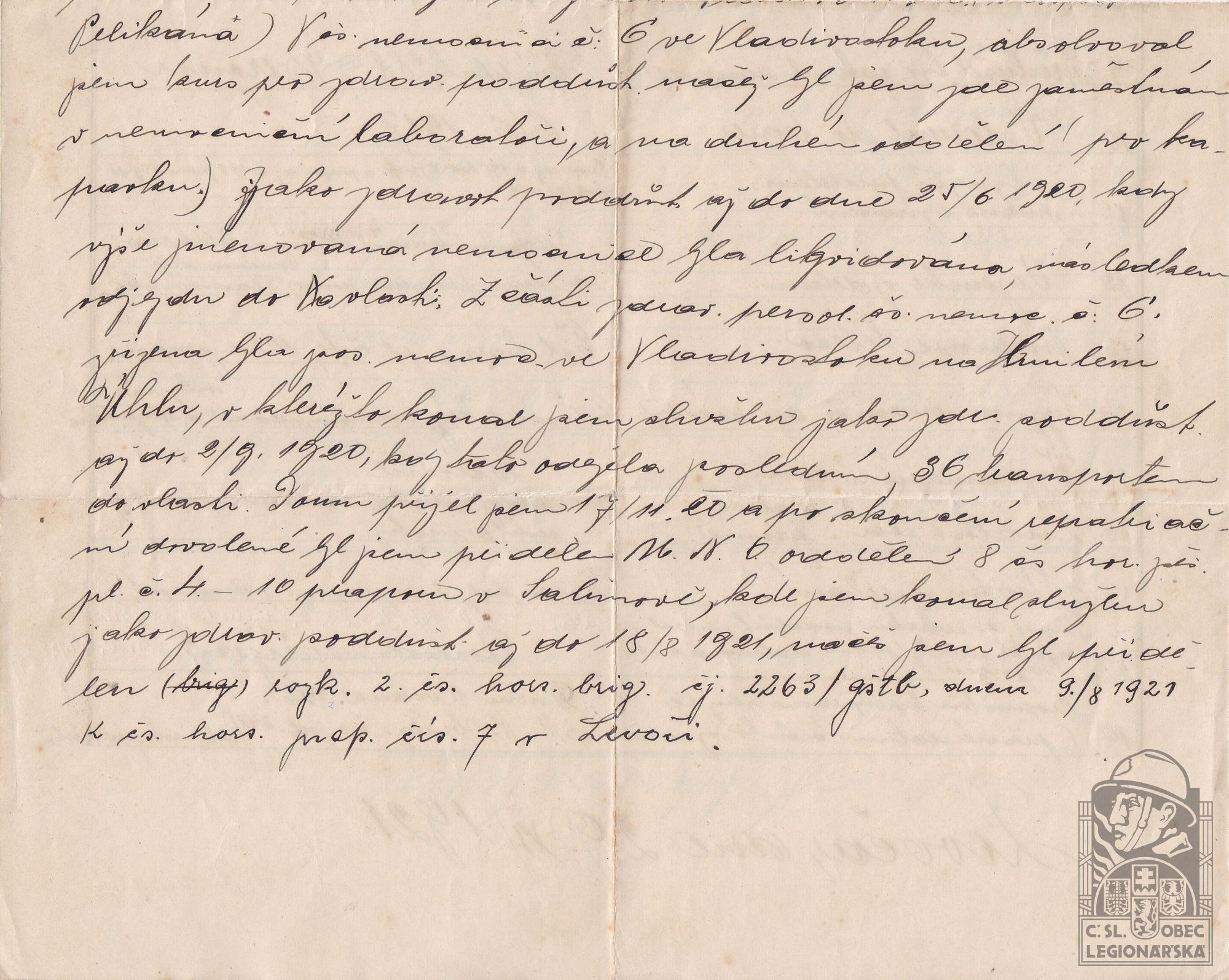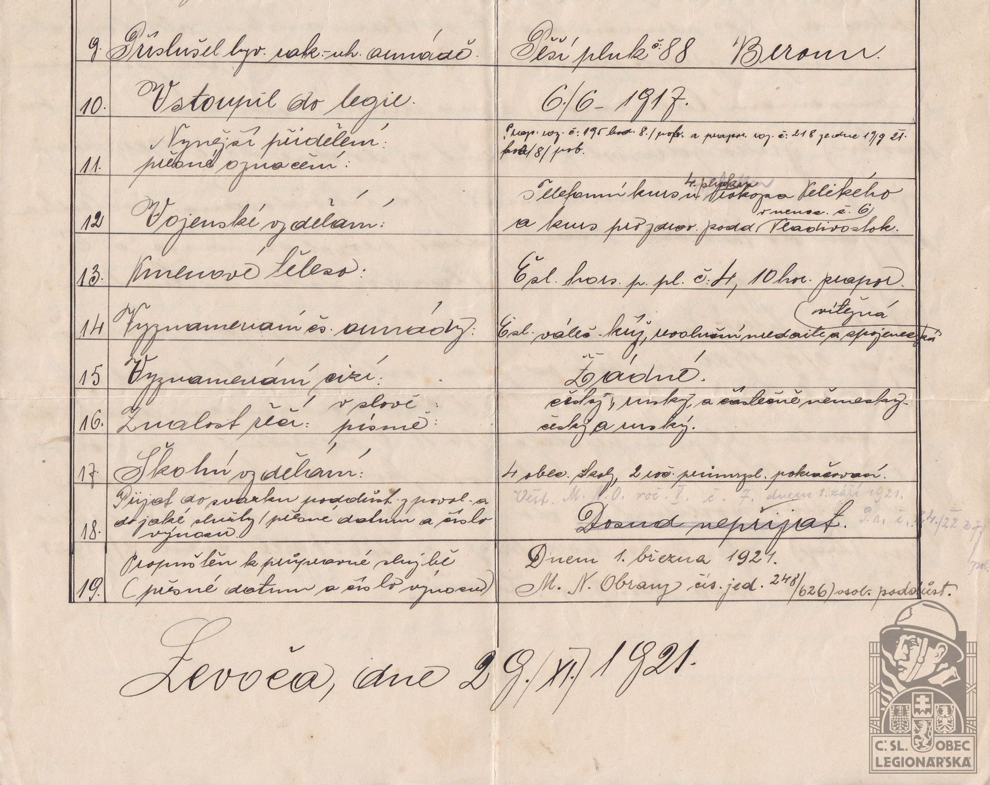 Jednotka v době zařazení:zál.pr. ( Čs. legie v Rusku )