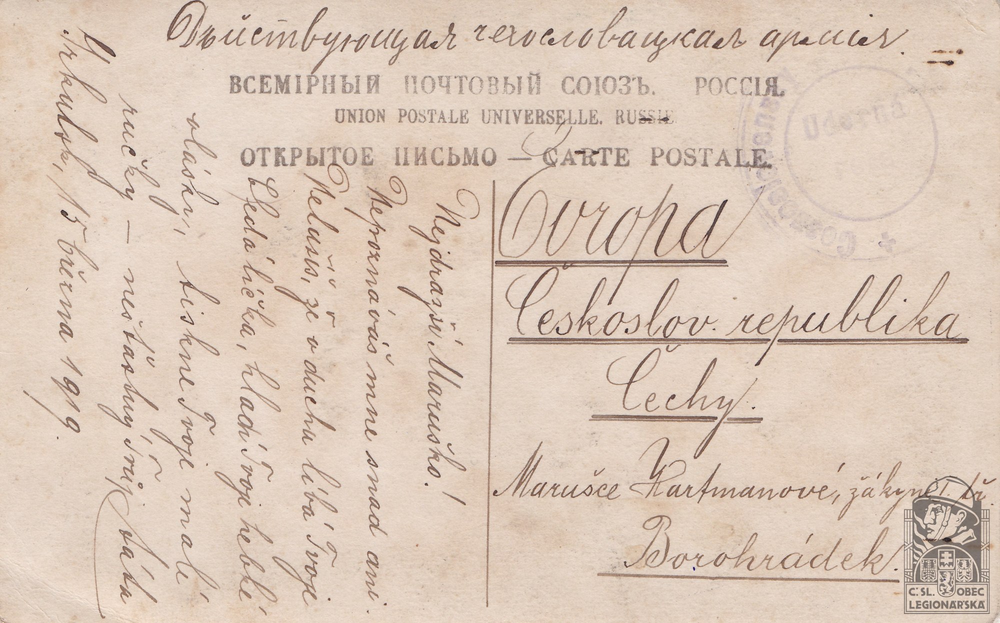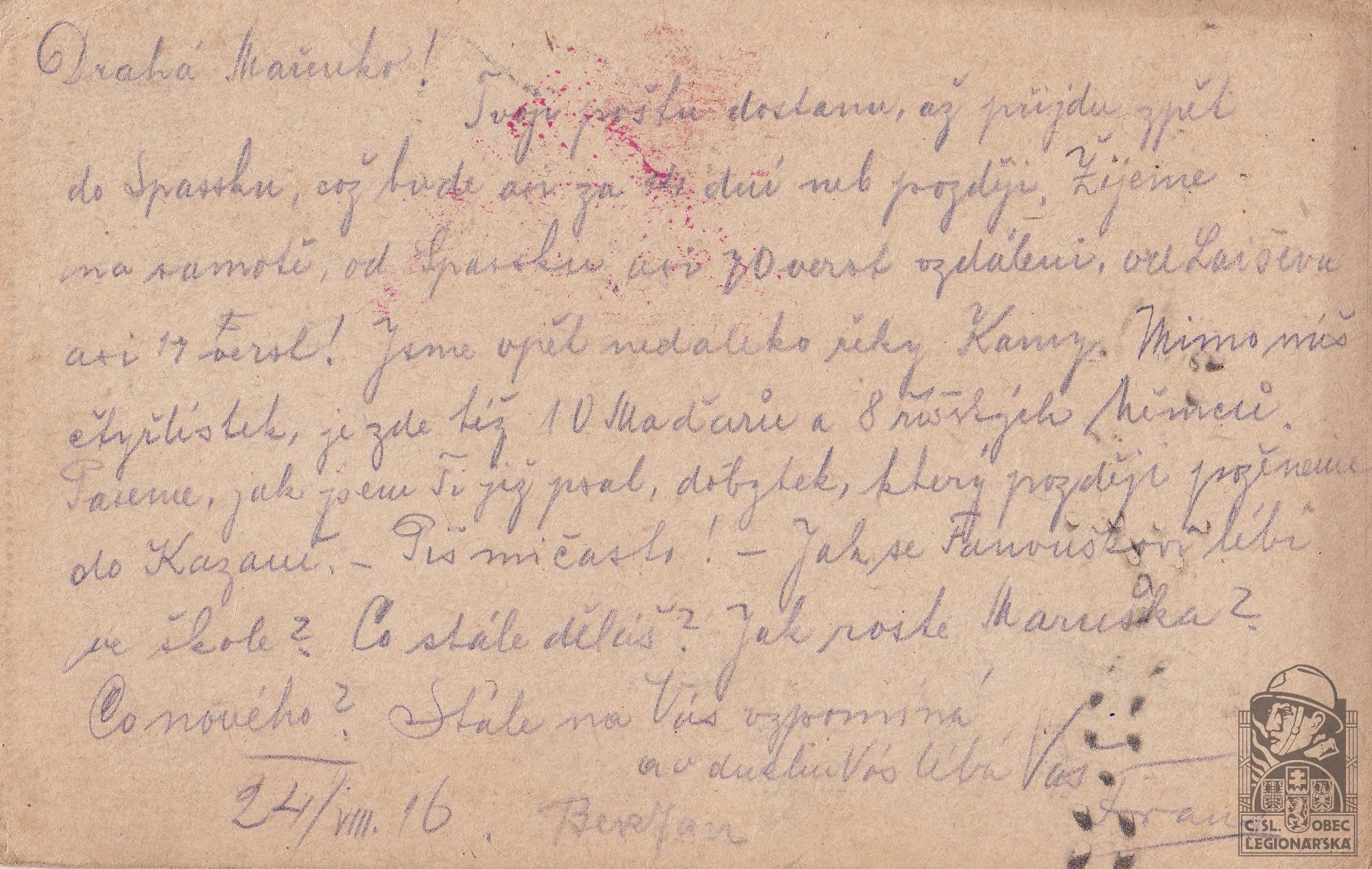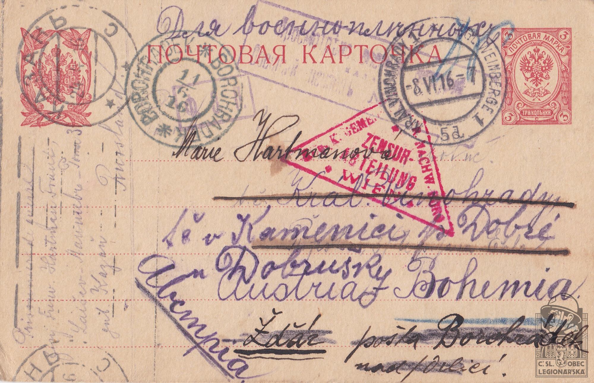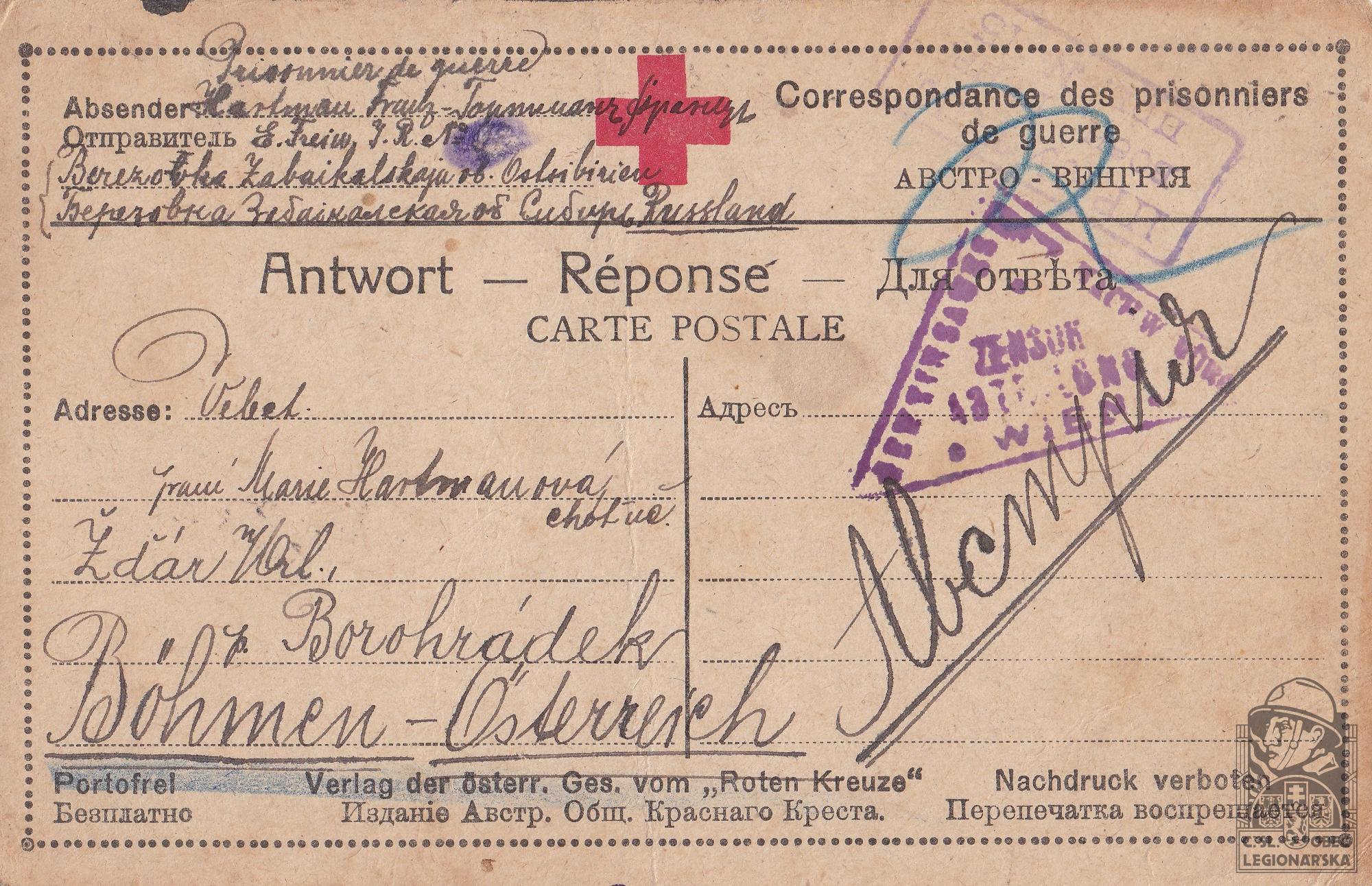 Jednotka v době zařazení:12.stř.pl. ( Čs. legie v Rusku )