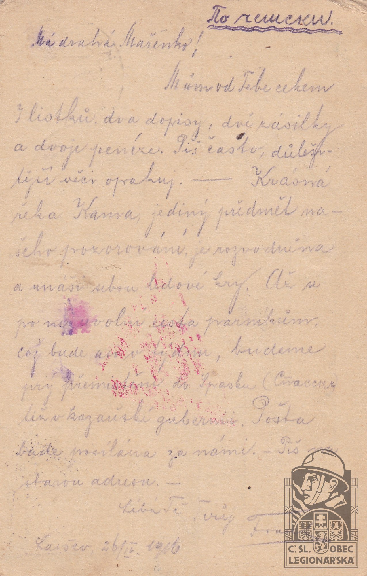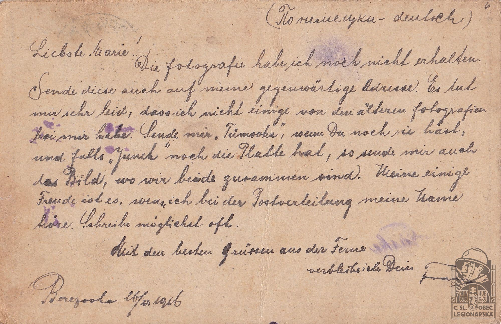 dokumenty spojené s osobou legionáře