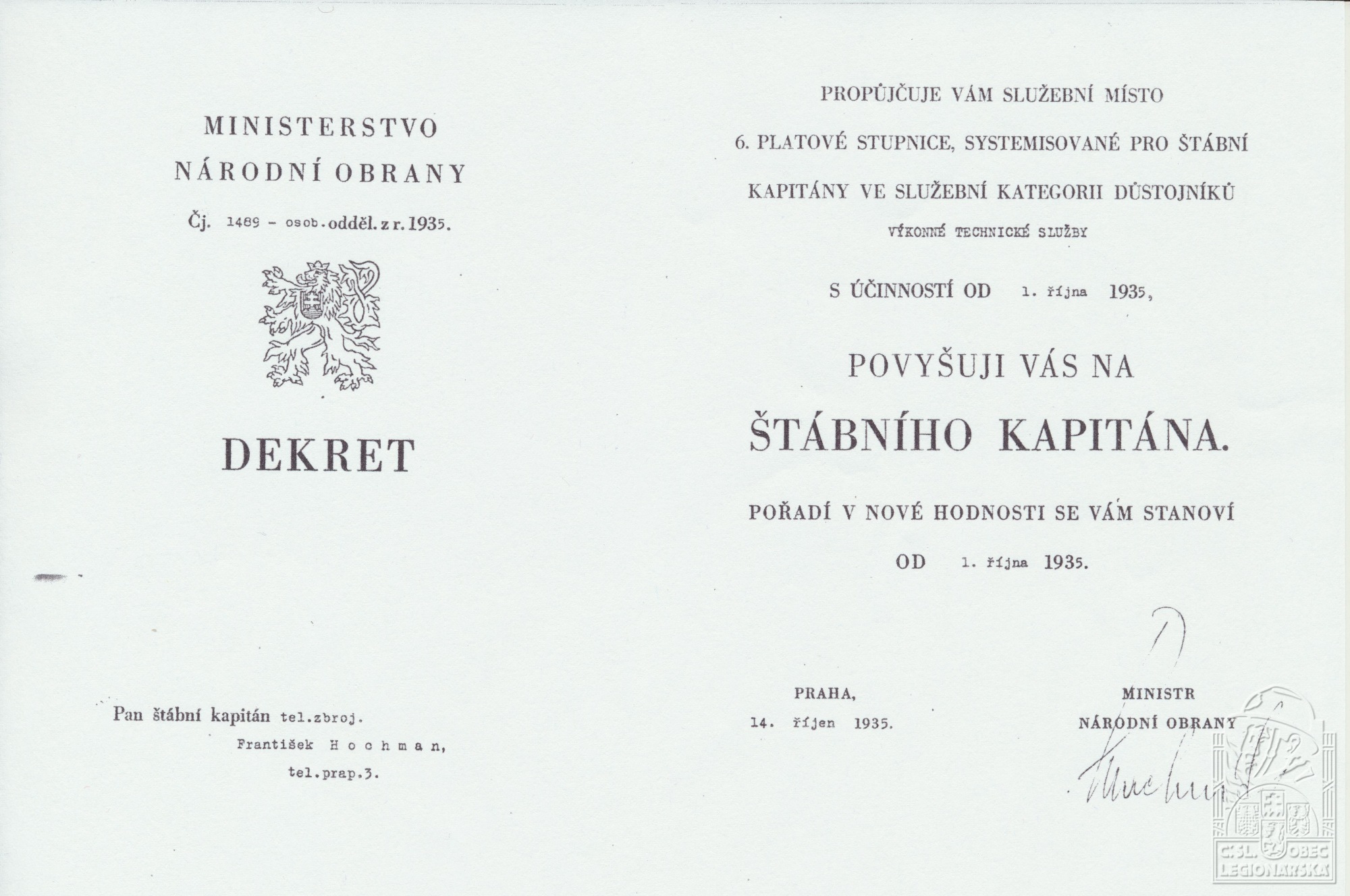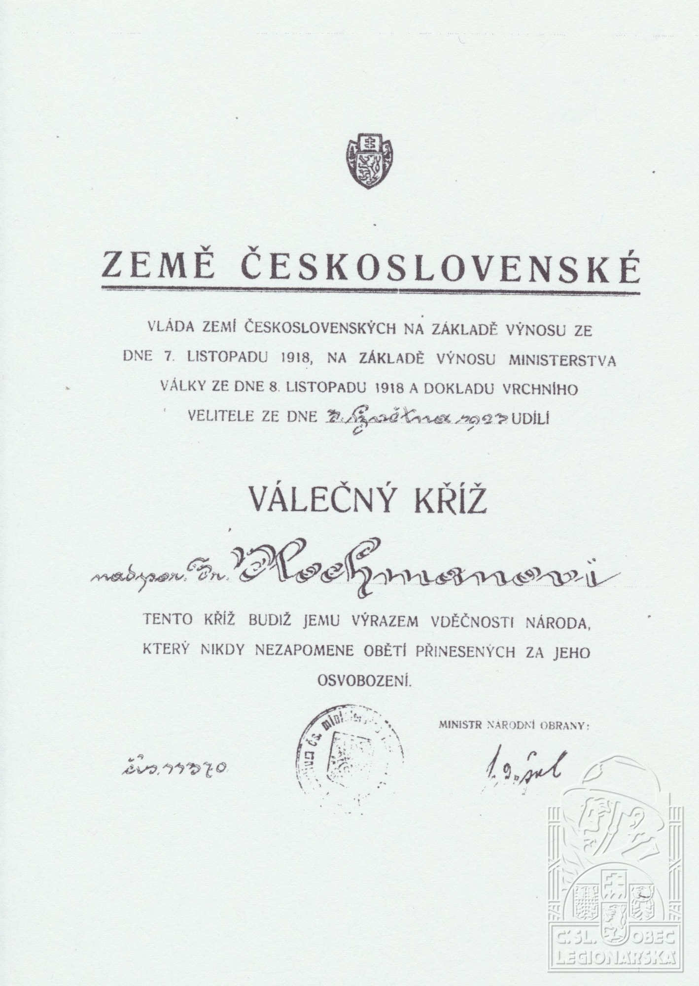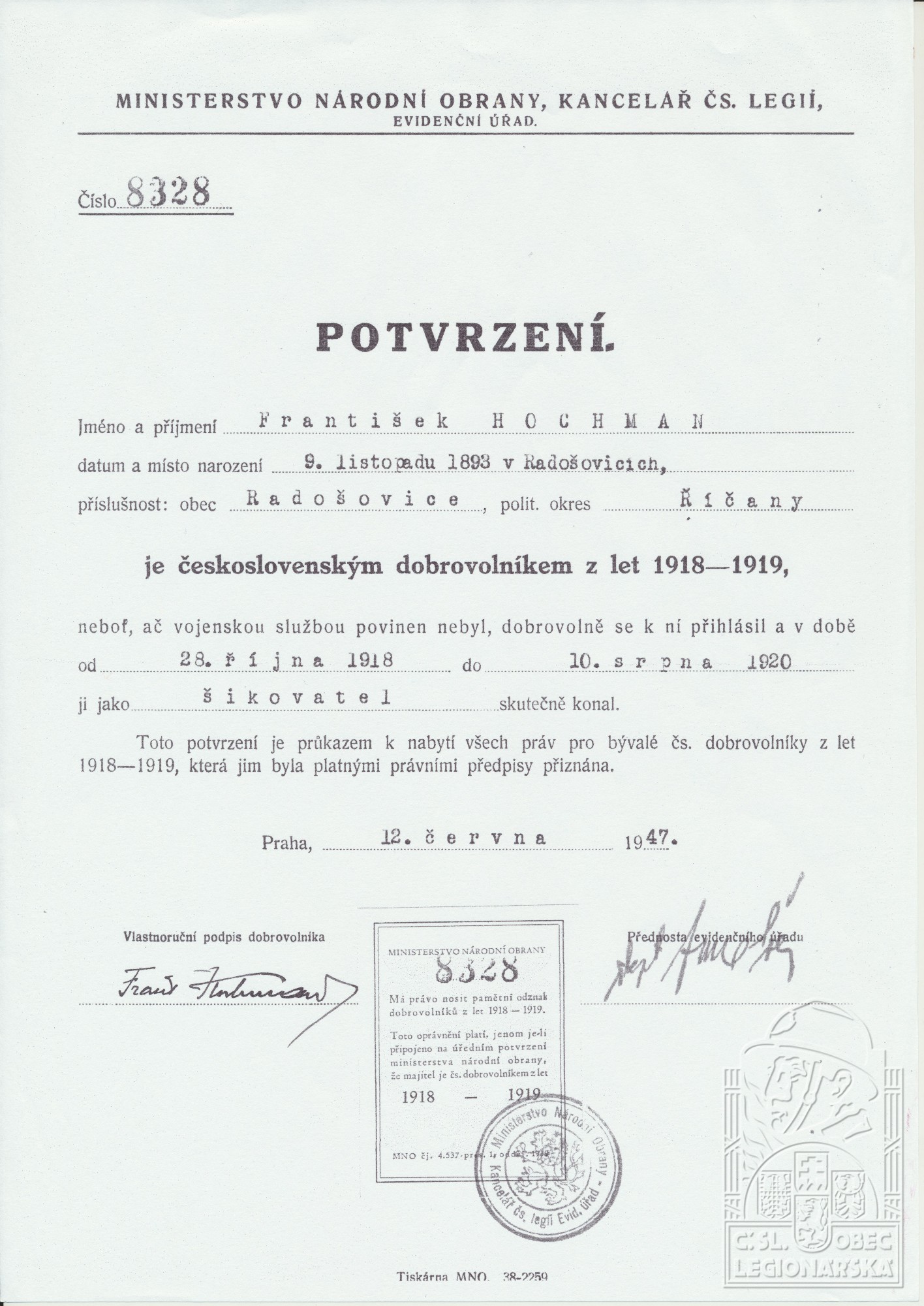 Konec v legiích:10.8.1920 ( Sloužil v čs. armádě po r. 1918 )