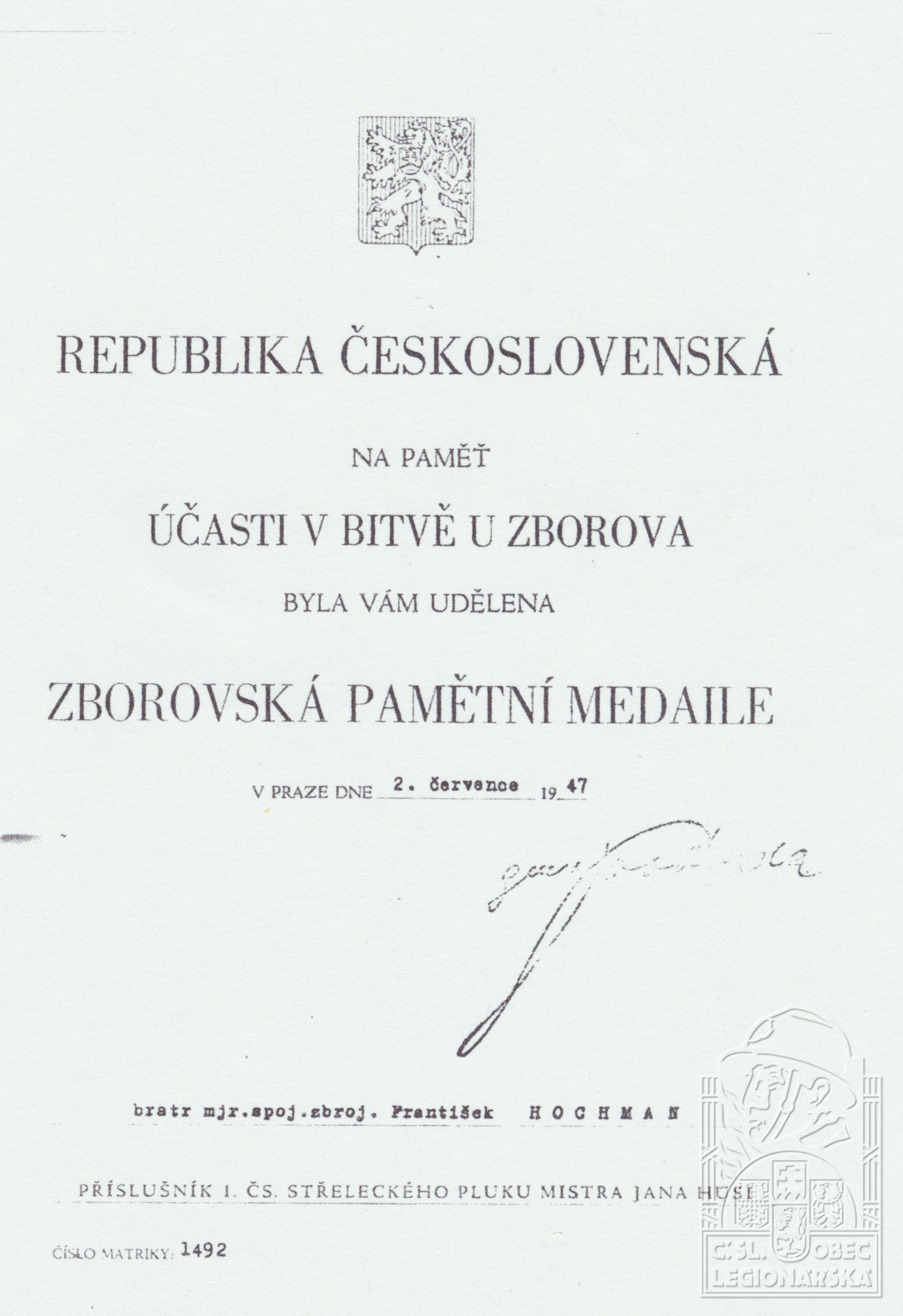 Zdroj informací: legionářský poslužný spis osobní karta legionáře