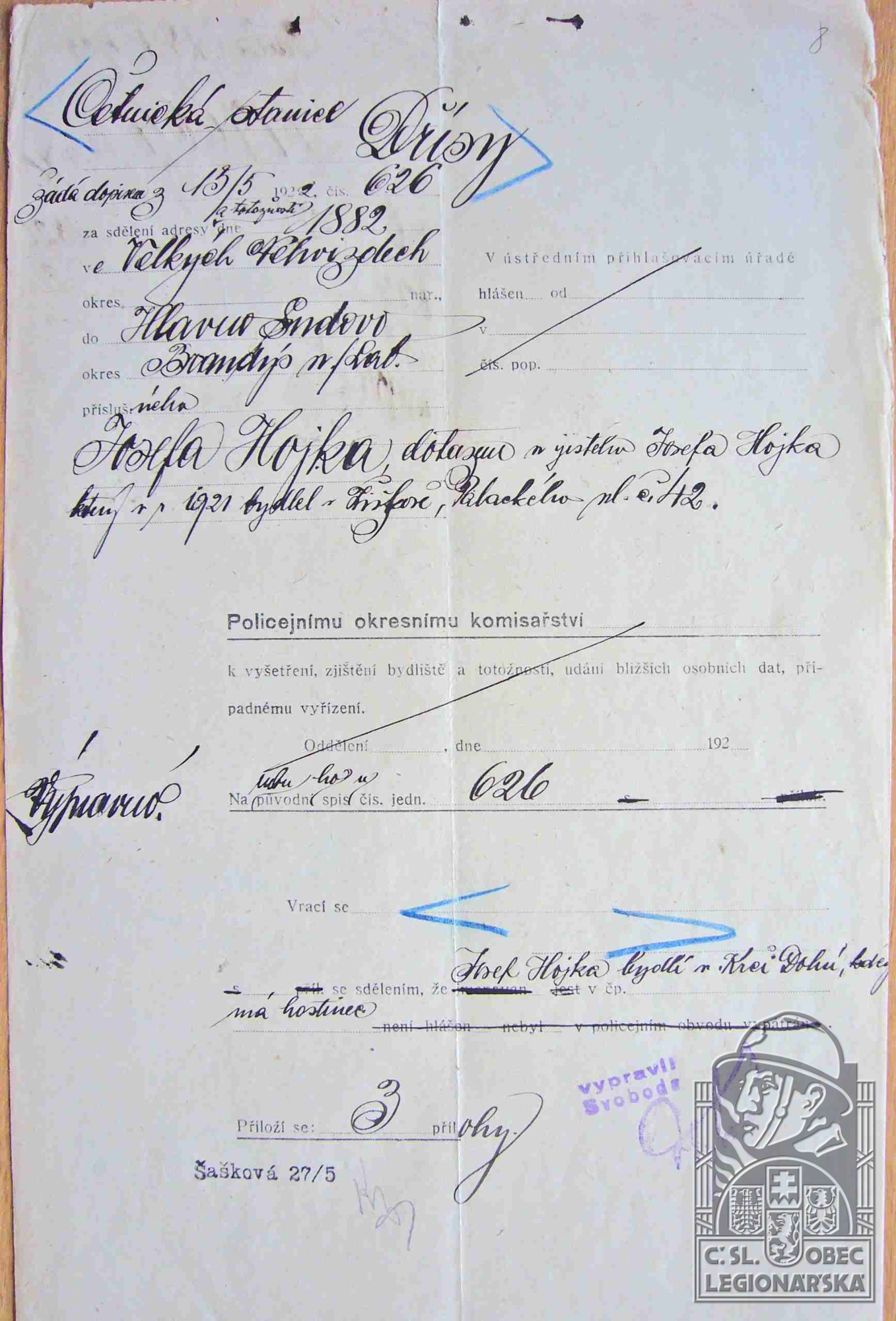 Zdroj informací: legionářský poslužný spis