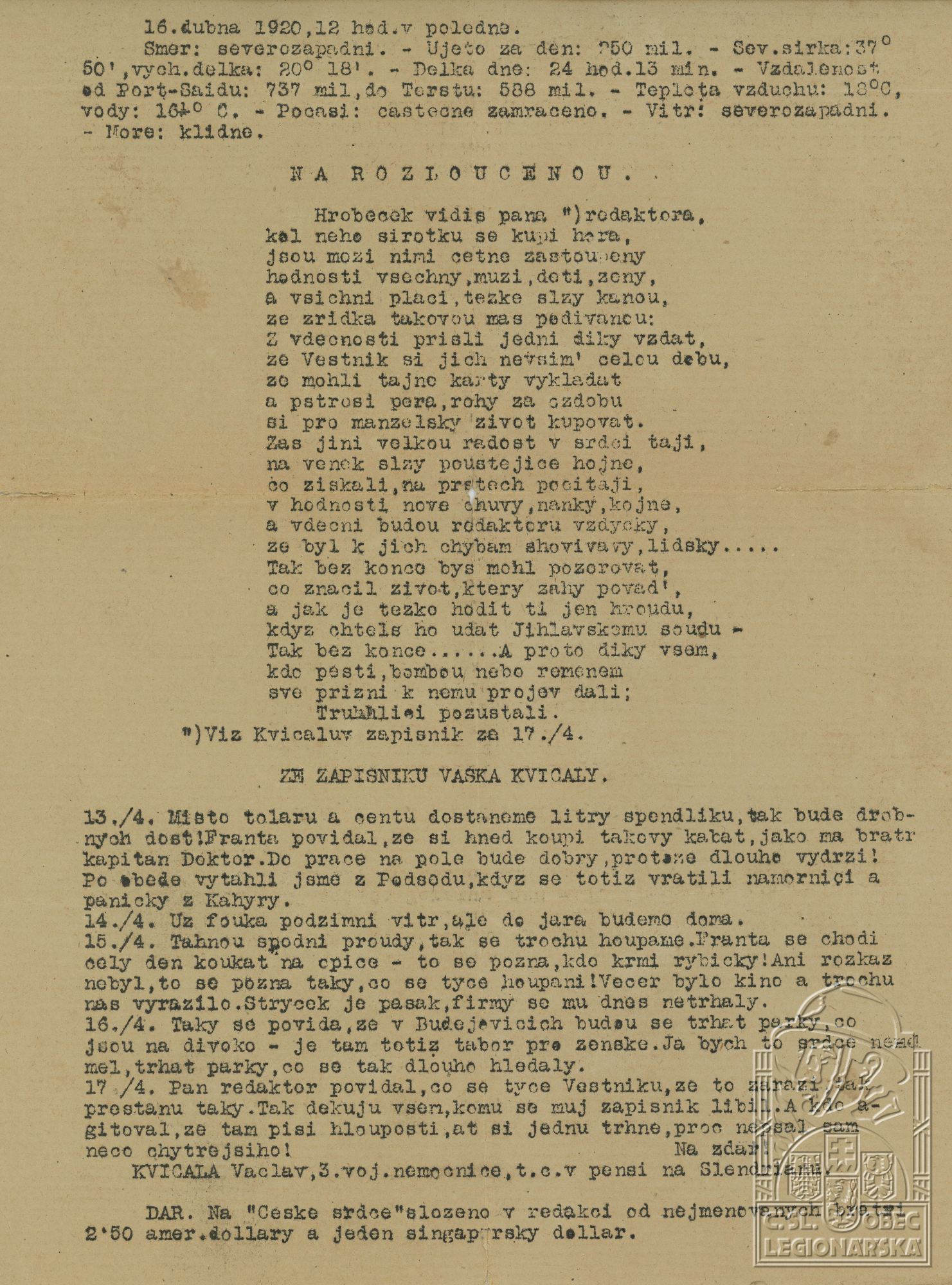 Datum podání přihlášky do legií:10.6.1917