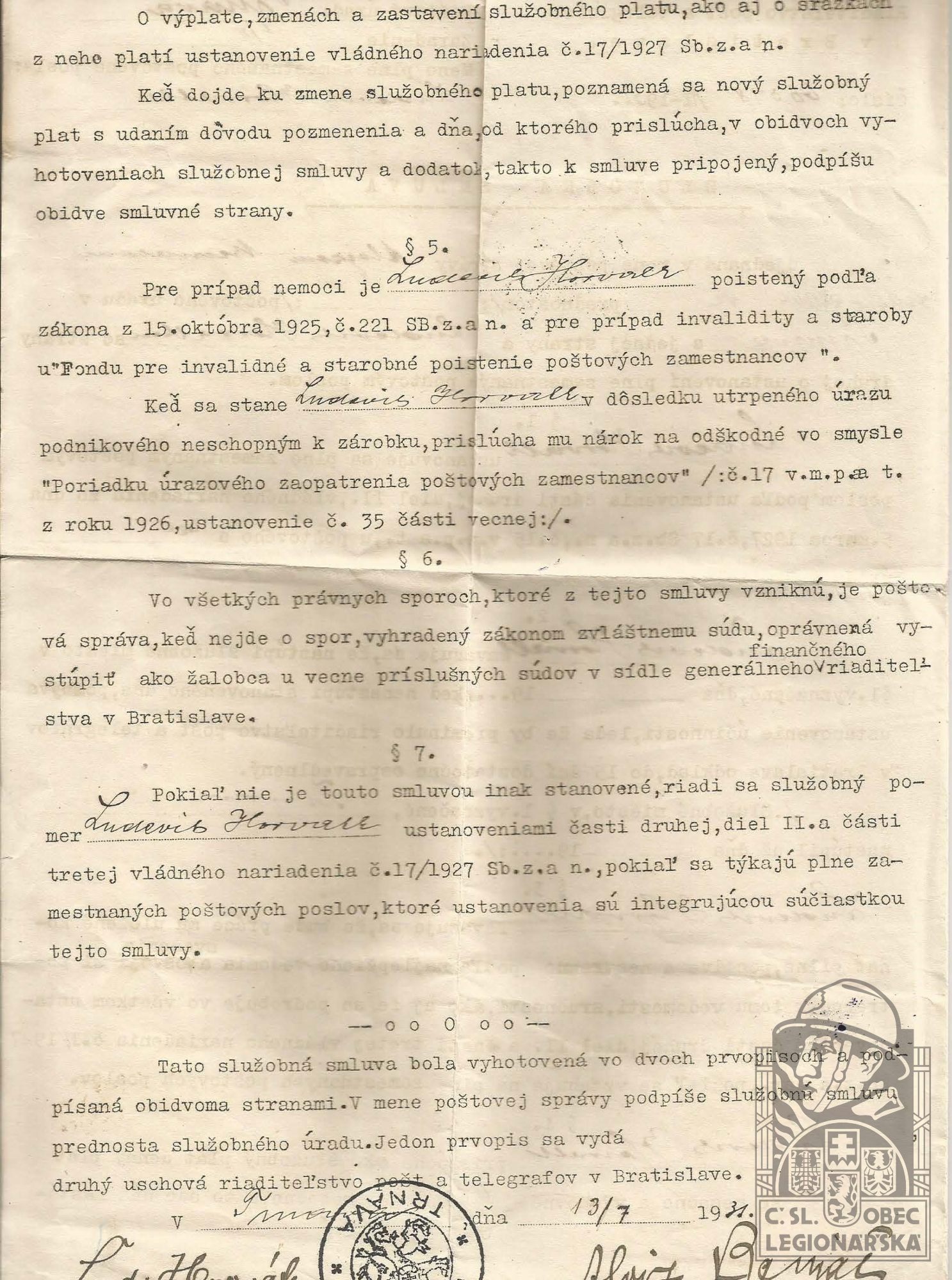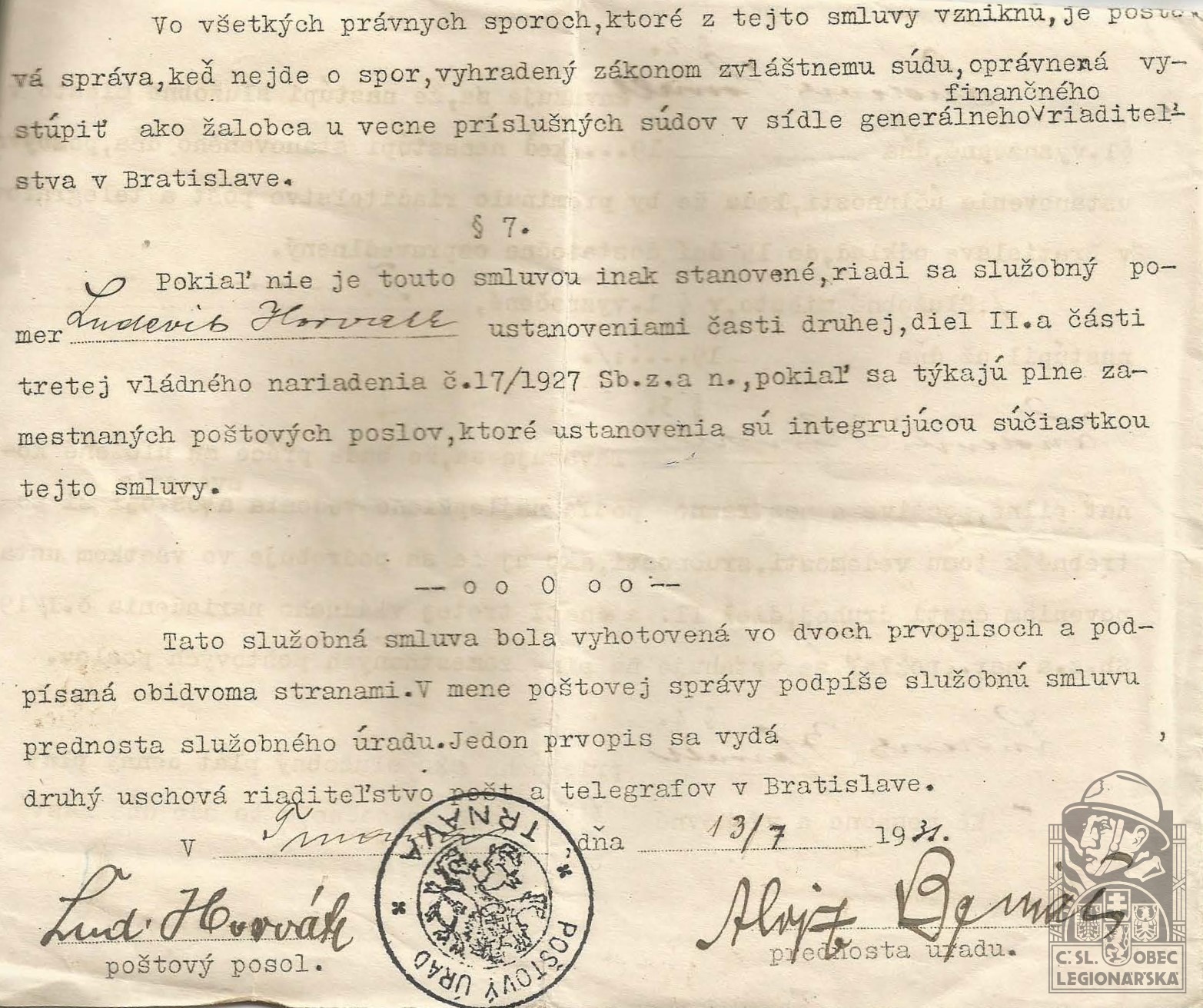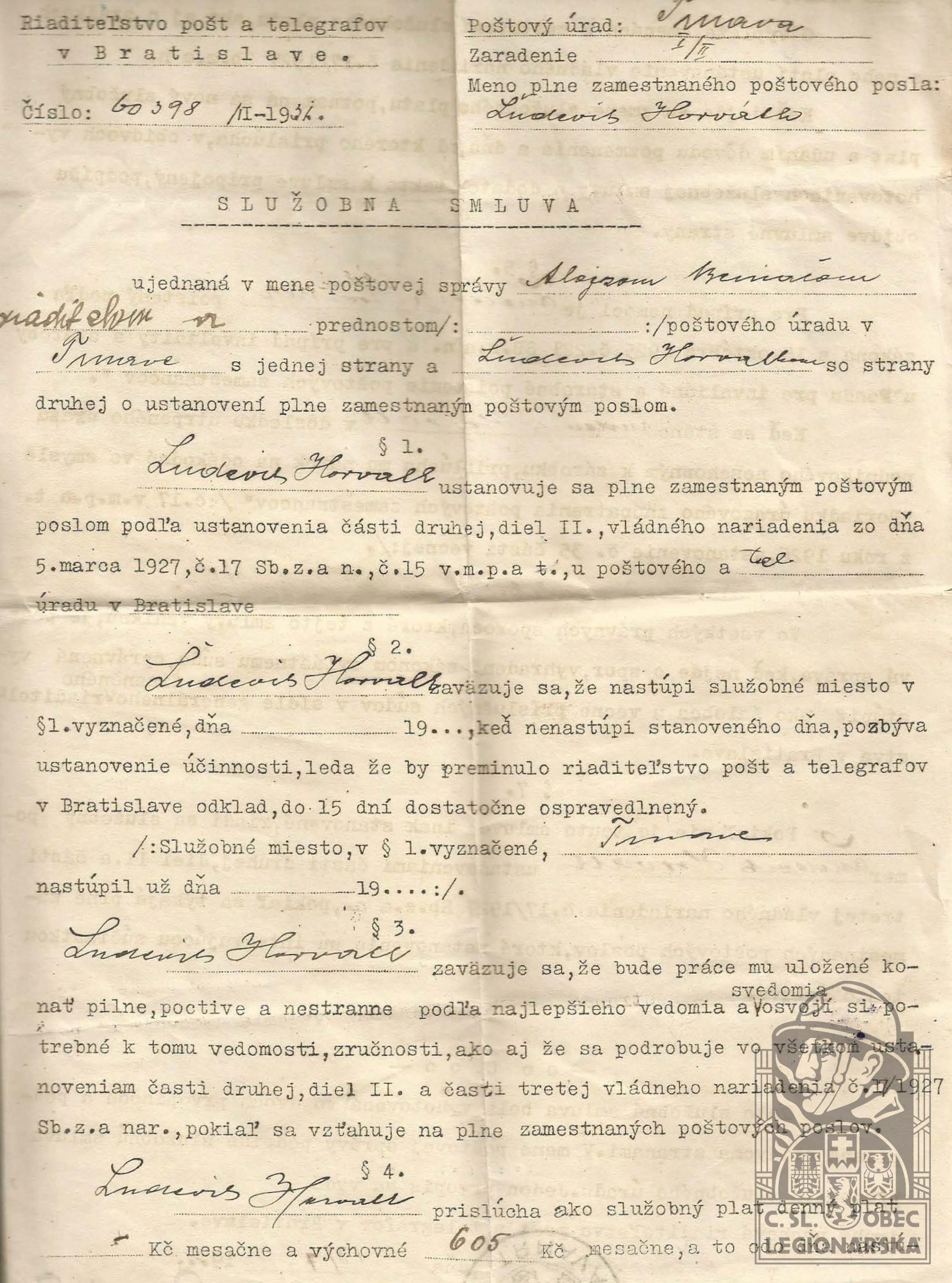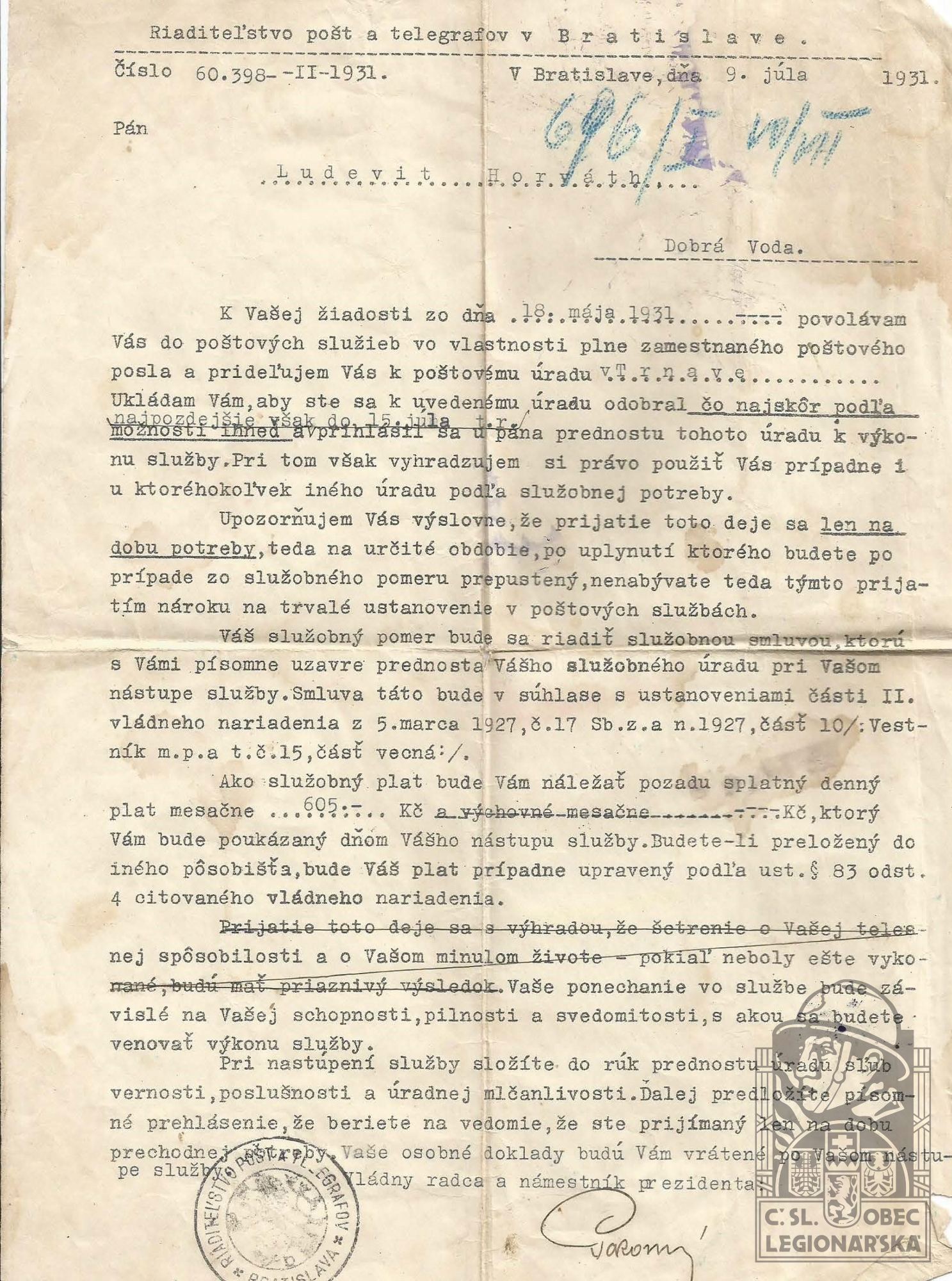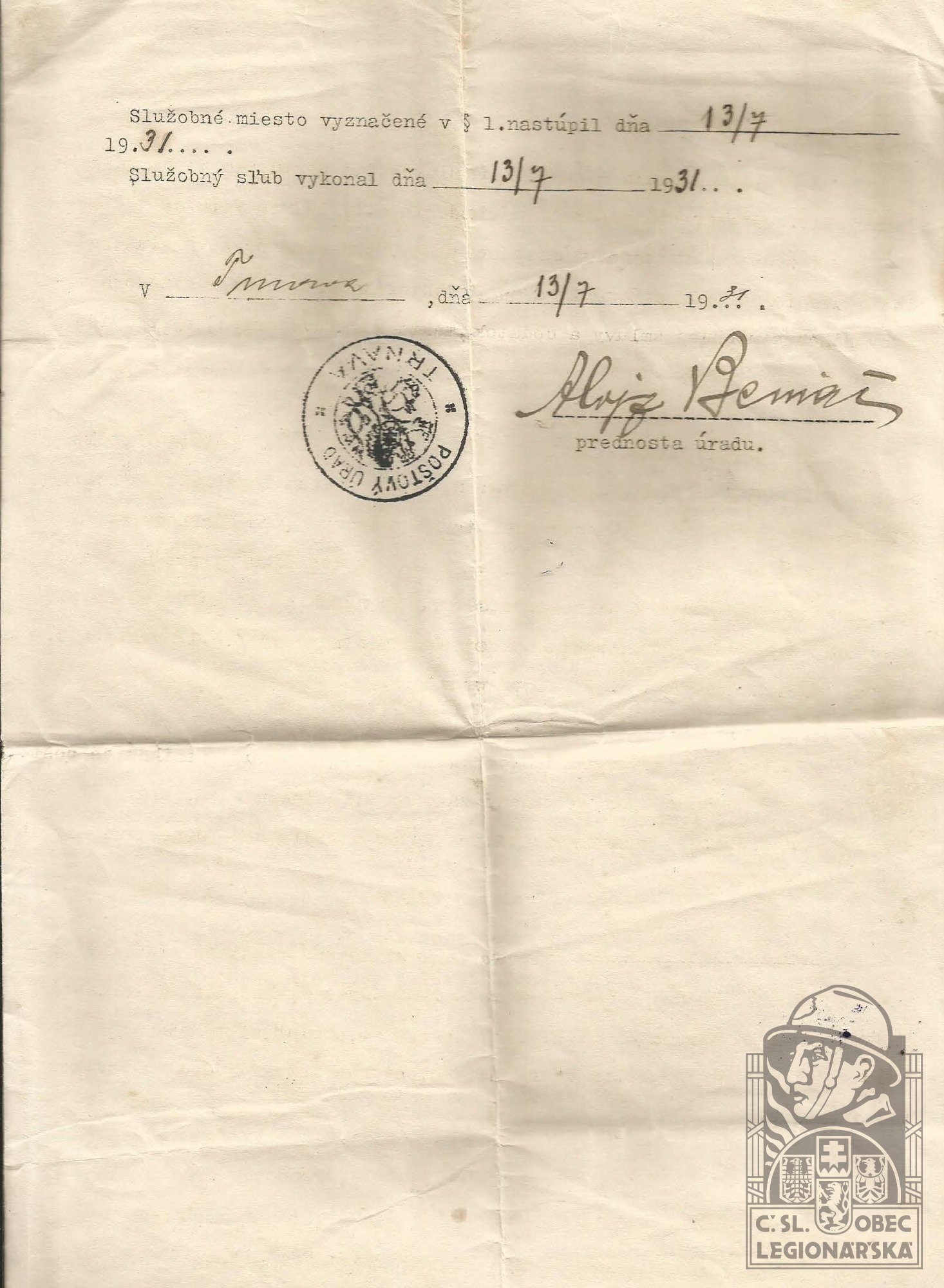 Povolání v letech 1918 - 1938:poštovní posel (po r. 1931)