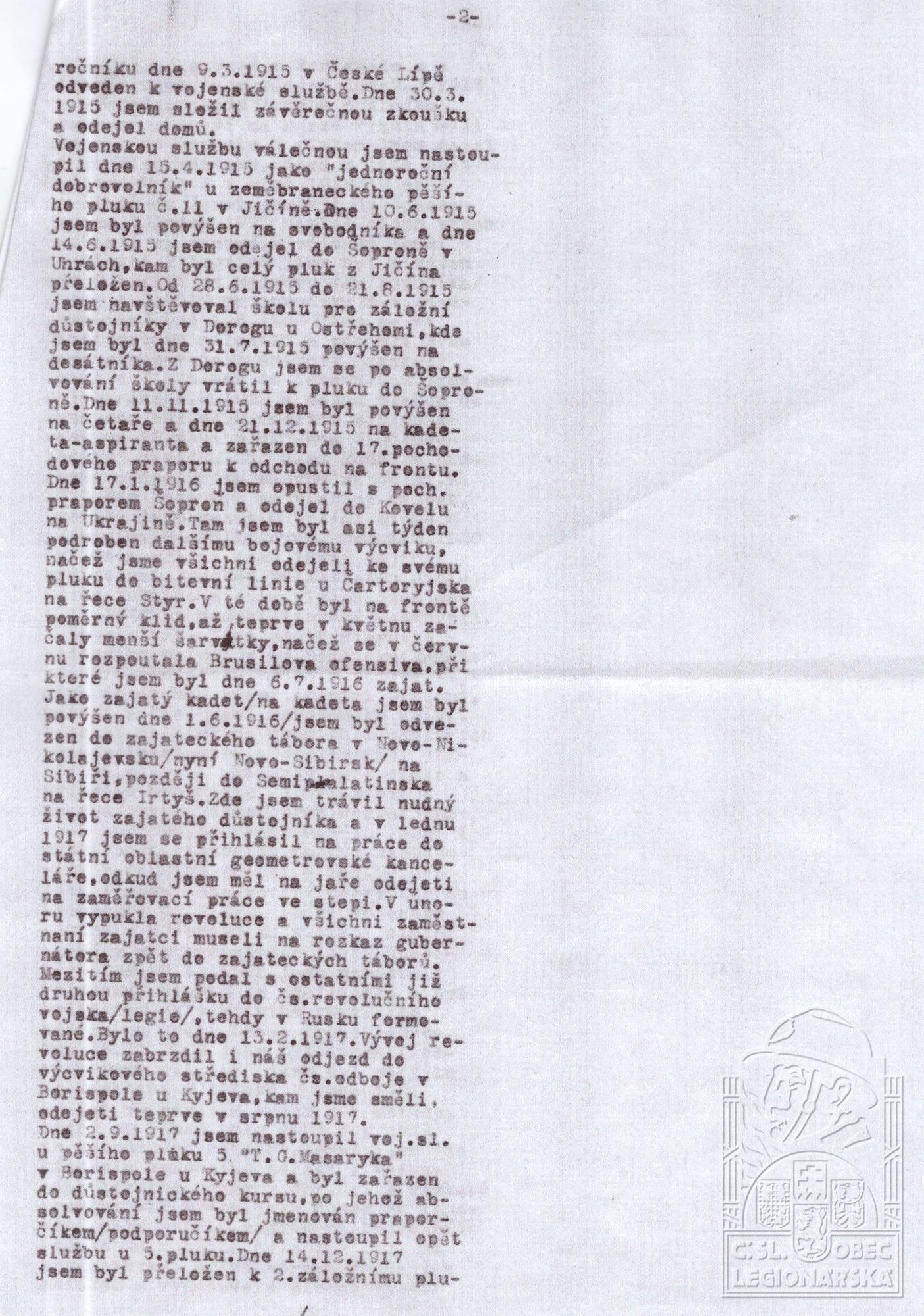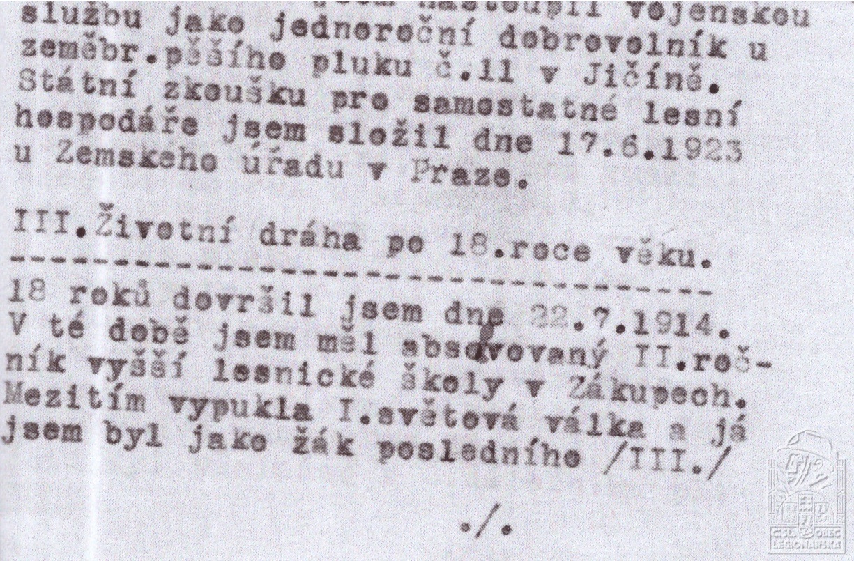 Datum podání přihlášky do legií:13.2.1917