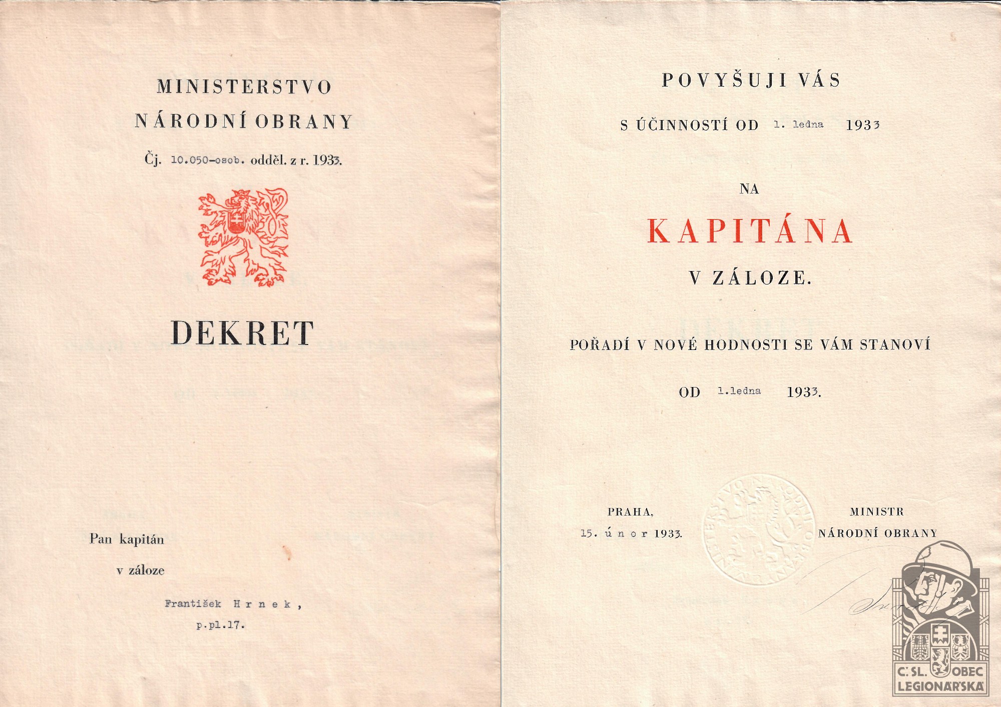 Poslední hodnost v legiích:šikovatel