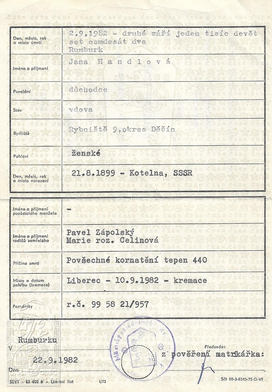 Místo úmrtí:Rybniště u Rumburku