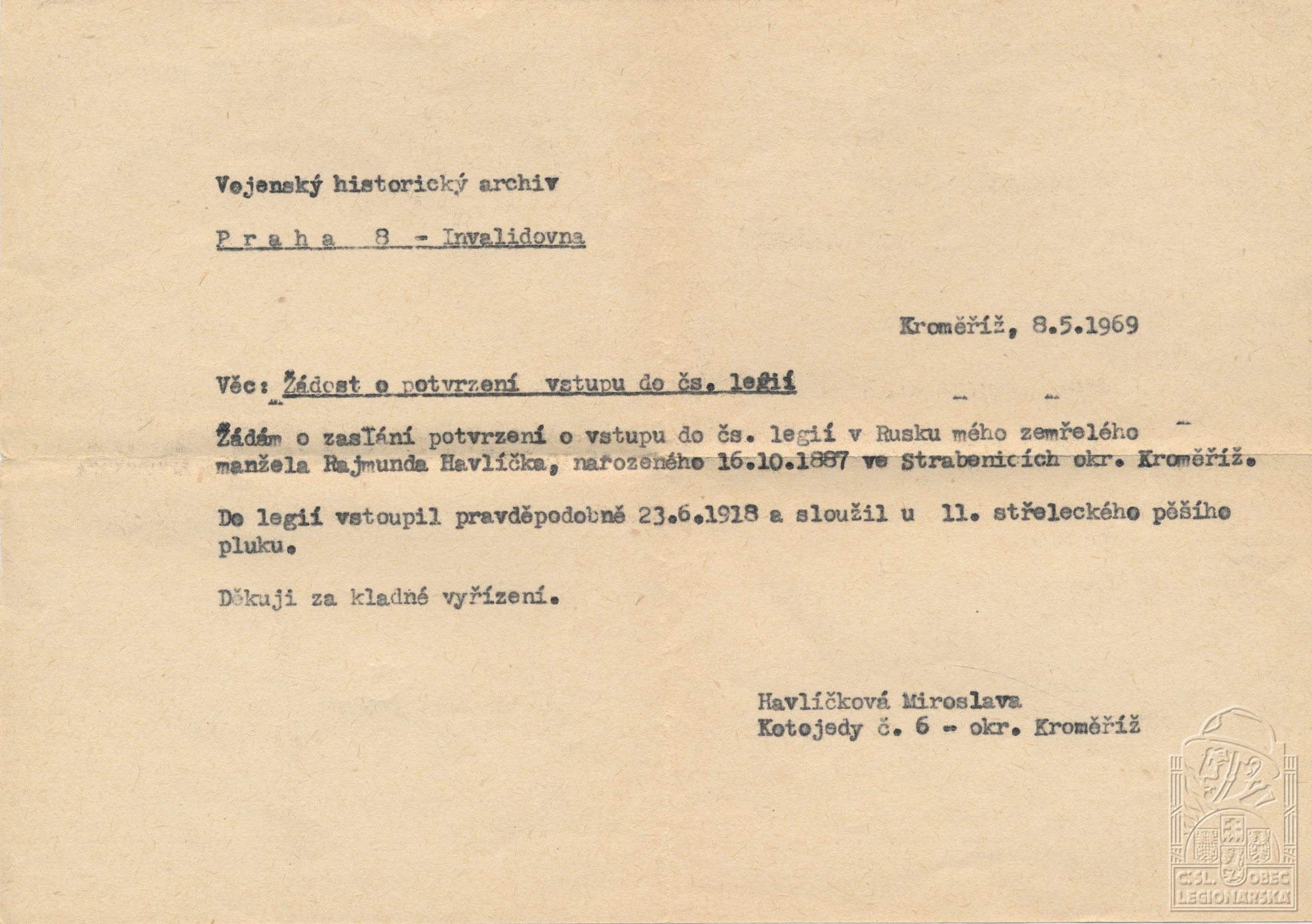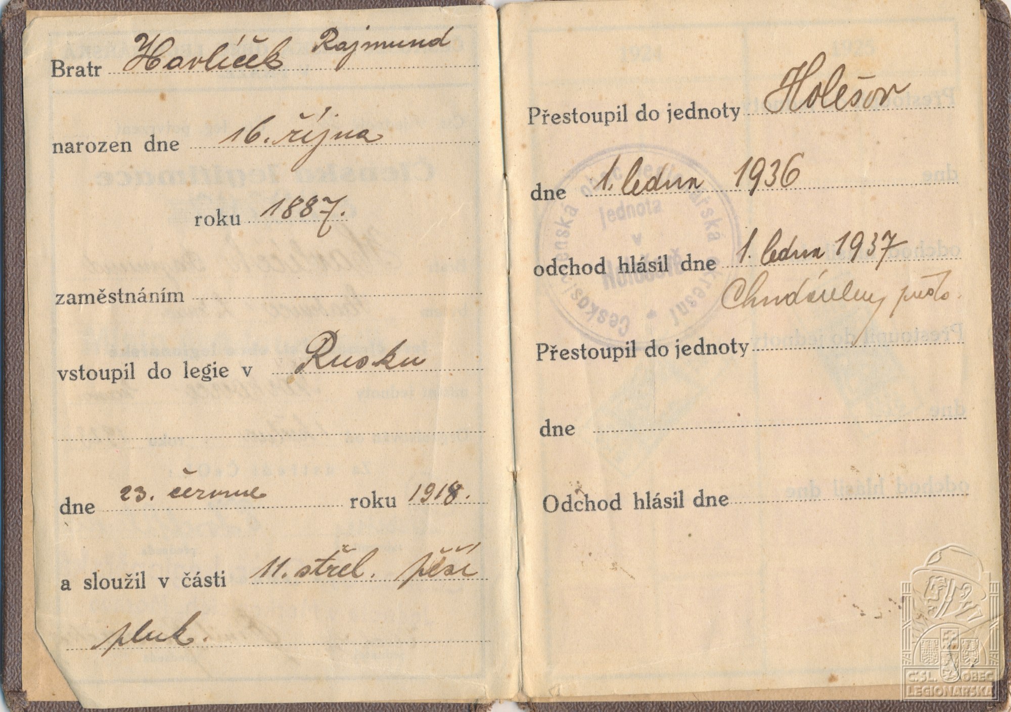 Zdroj informací: legionářský poslužný spis osobní karta legionáře
