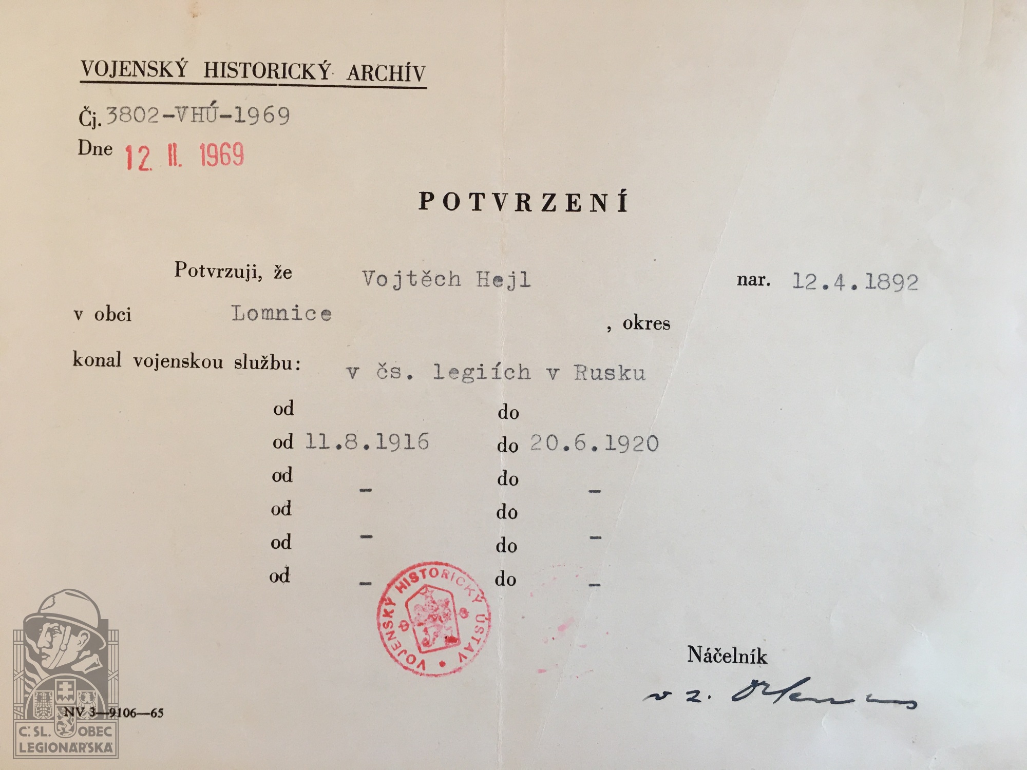 dokumenty spojené s osobou legionáře