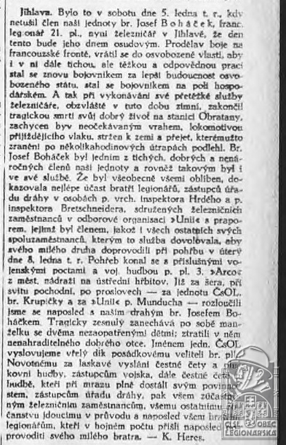 Povolání v letech 1918 - 1938:železničář v Jihlavě