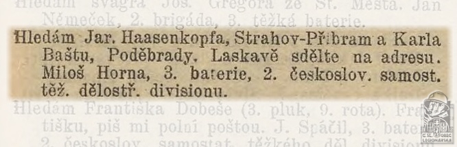Pomozte nám budovat databázi československých legionářů.