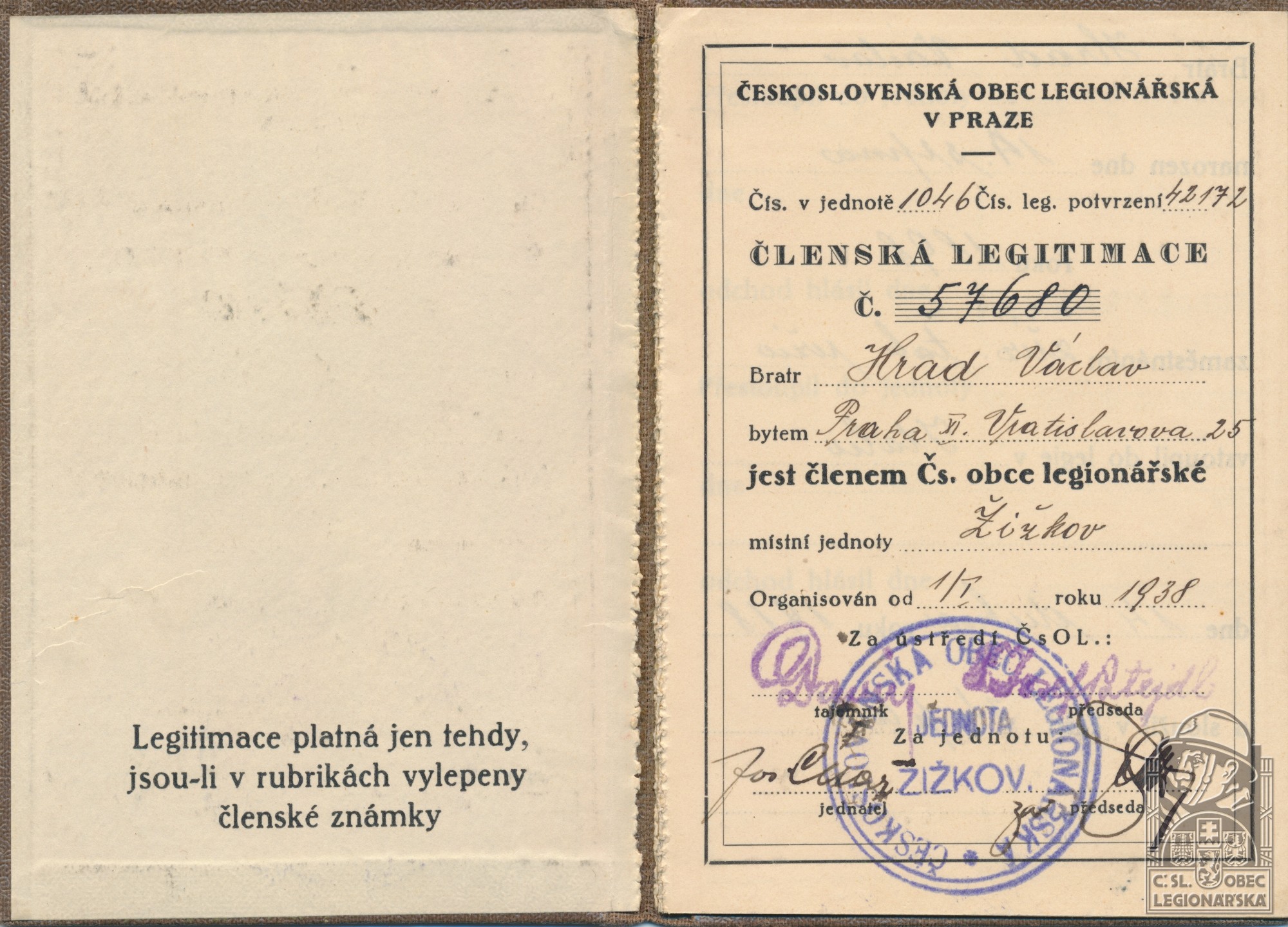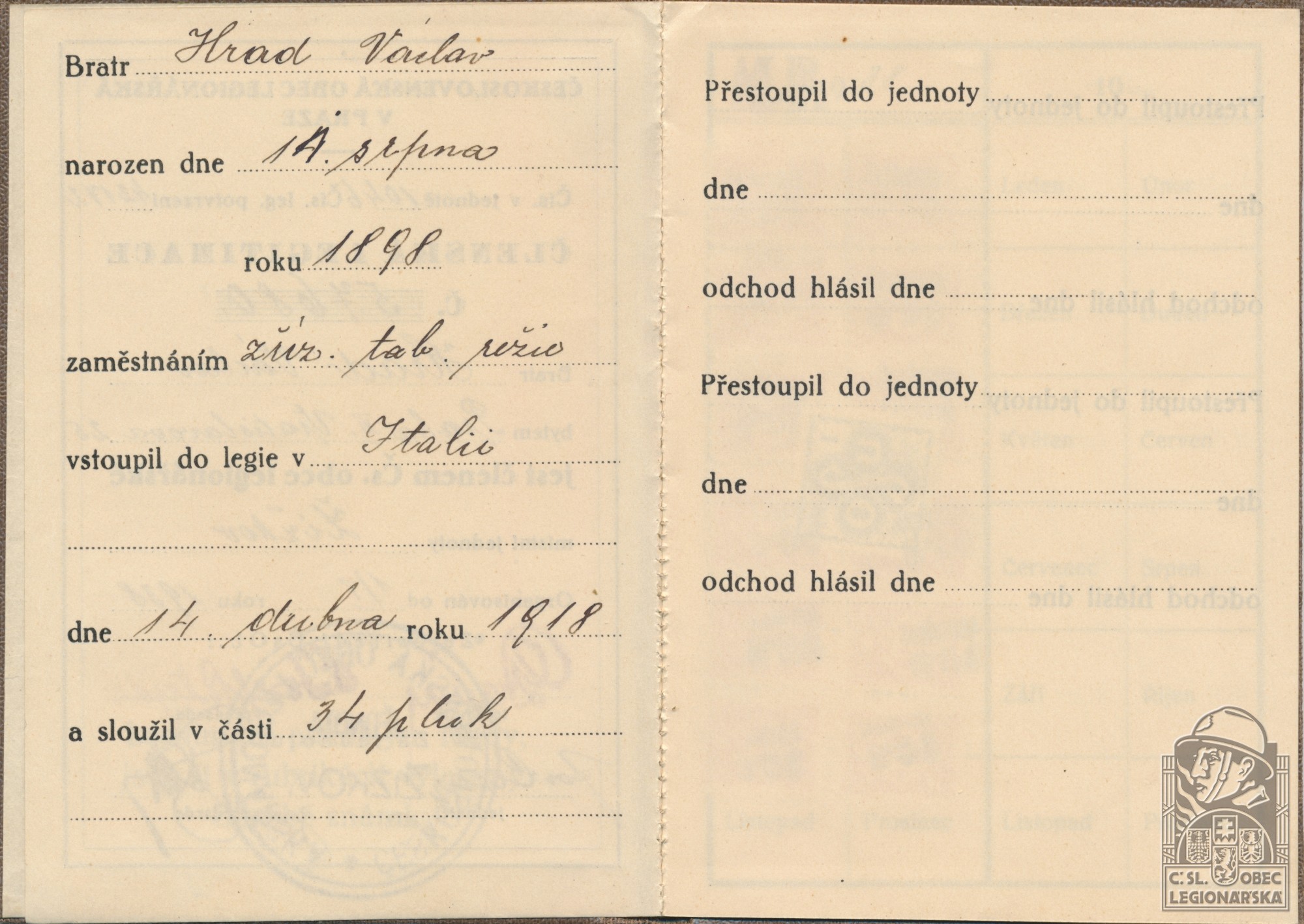Zdroj informací: legionářský poslužný spis osobní karta legionáře