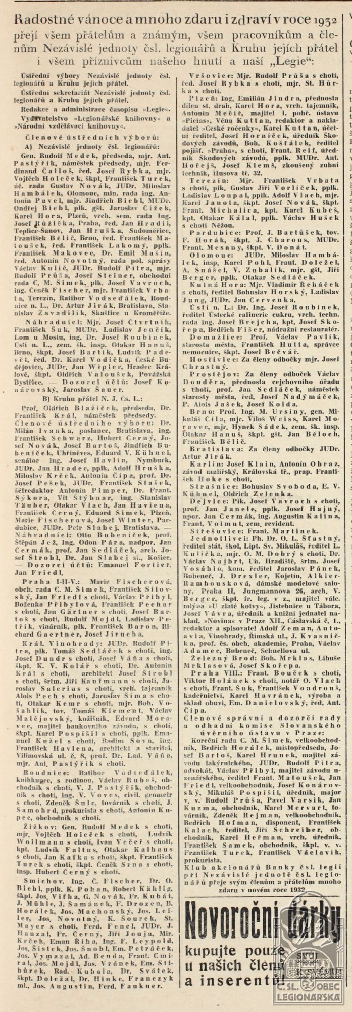 Zdroj informací: legionářský poslužný spis Legie, 16.1.1936