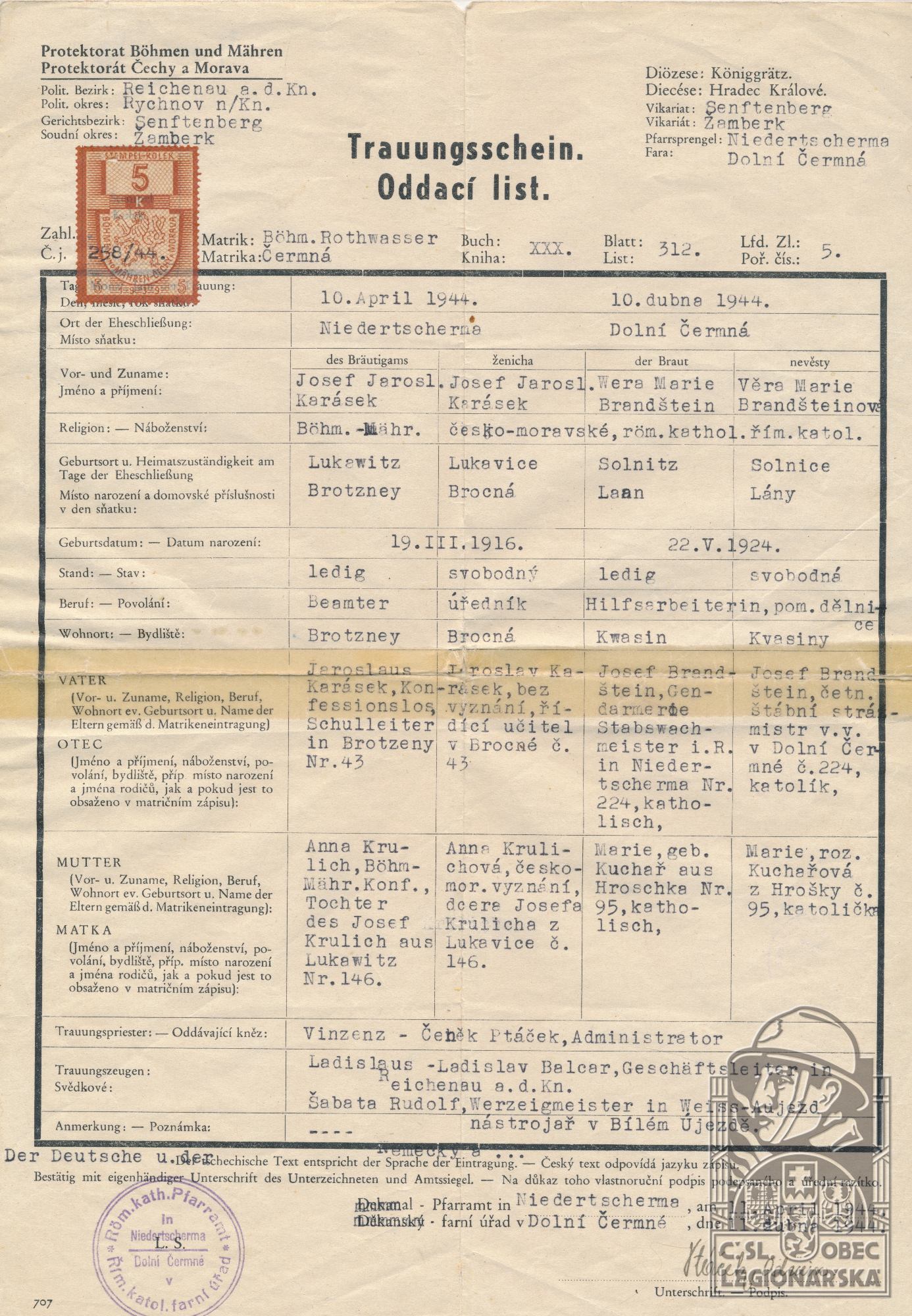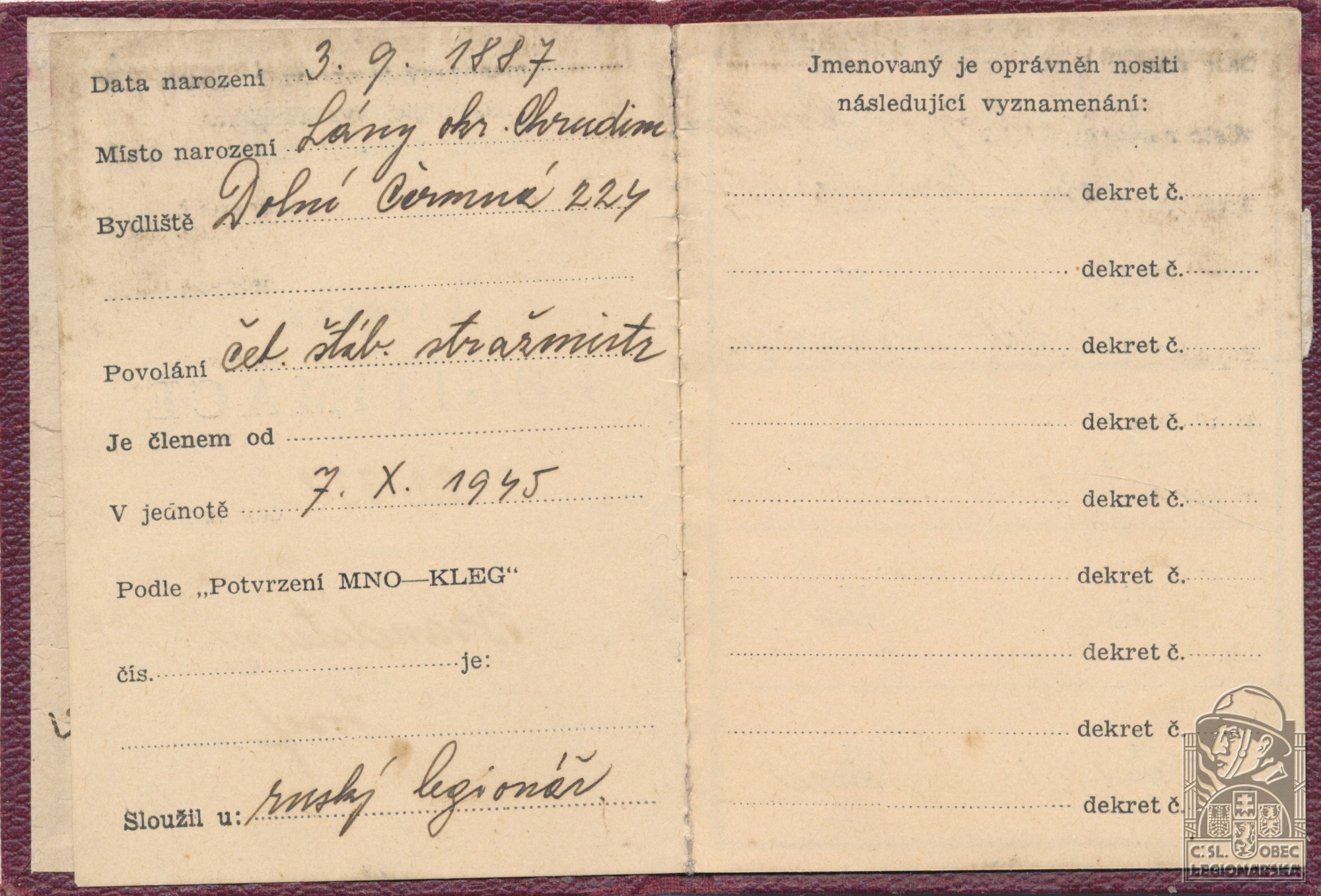 Zdroj informací: legionářský poslužný spis osobní karta legionáře